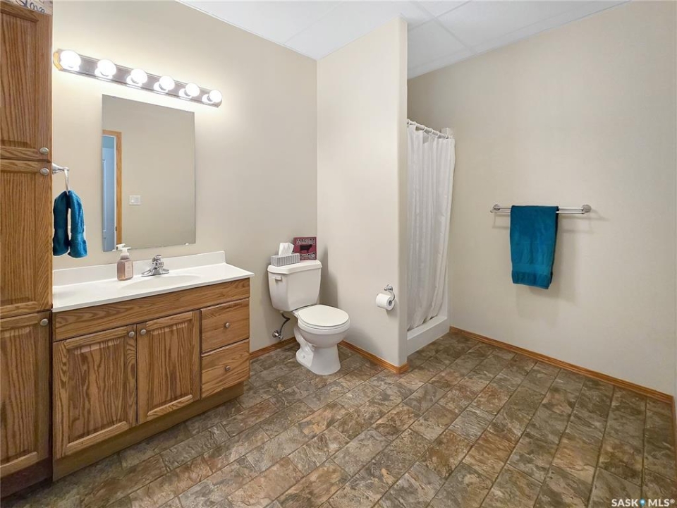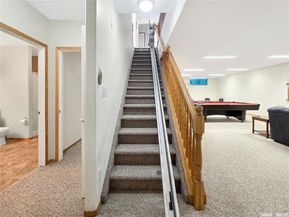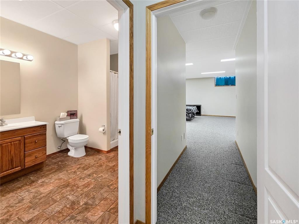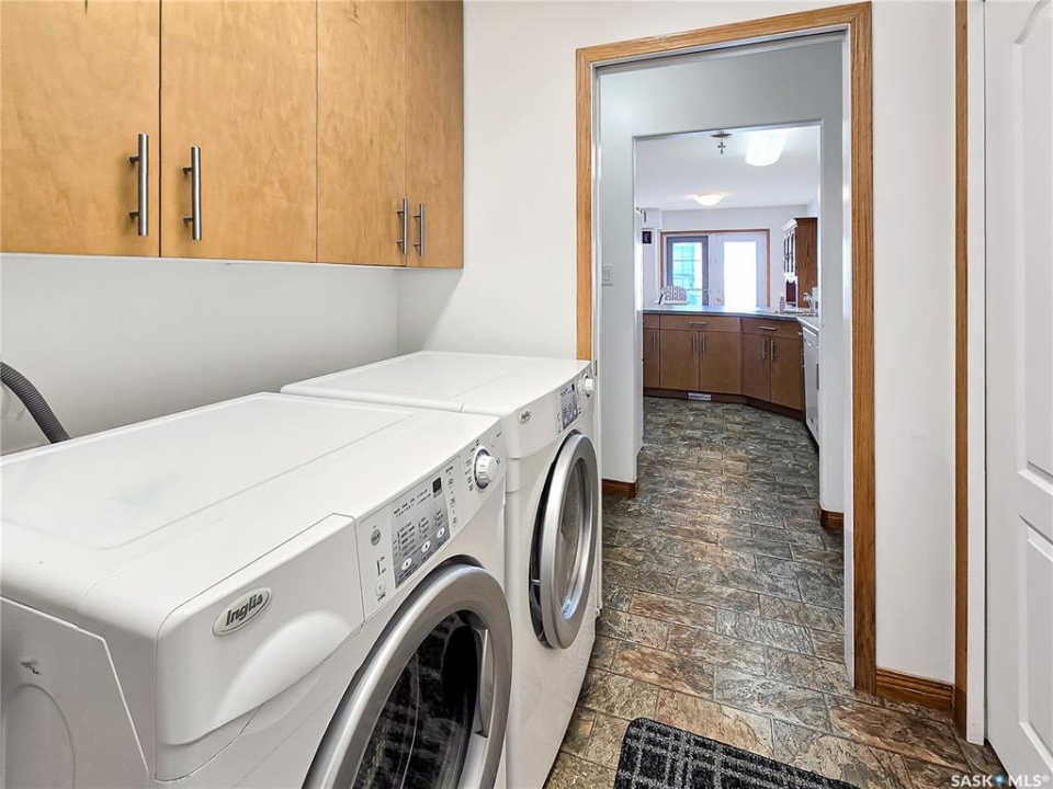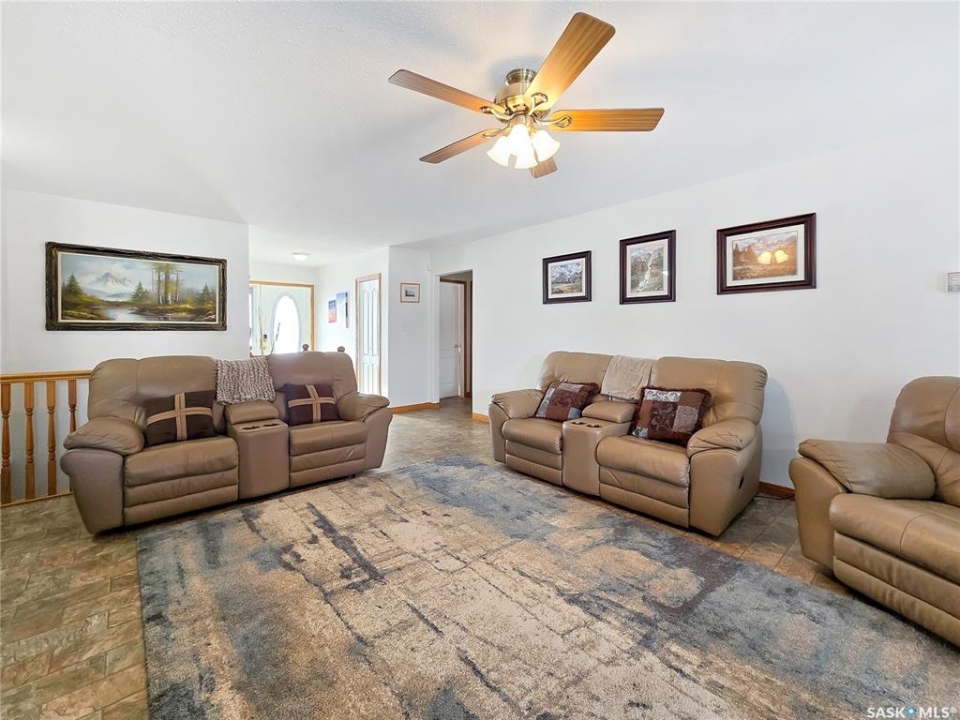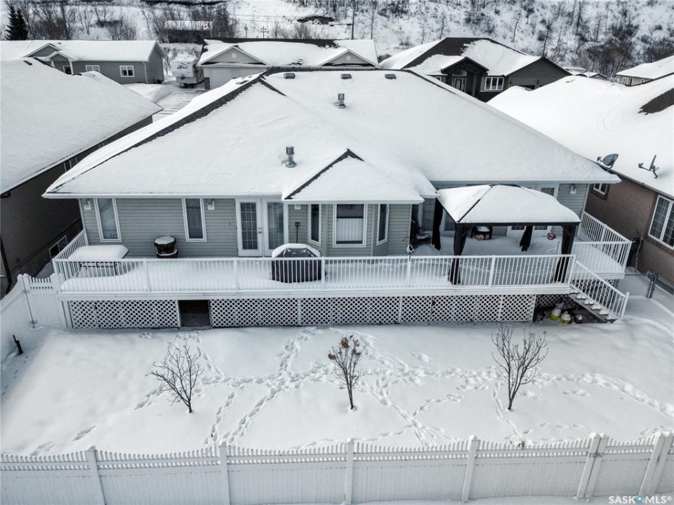 Built in 2008, this impressive, fully finished home offers over 2,000 sq. ft. of thoughtfully designed main floor living space. Nestled in a highly sought-after area of the beautiful Qu'Appelle Valley, this property perfectly blends comfort, functionality, and unique style. Step inside to find a spacious den just off the large main entrance, a versatile area ideal for a home office, cozy sitting room, reading nook, or flexible space tailored to your lifestyle. The main floor showcases a bright, open-concept kitchen and dining area that flows seamlessly into the living room. A cozy three-sided natural gas fireplace defines the space while adding warmth and ambiance throughout. Convenient main-floor laundry enhances the home's practical layout. The generous primary suite impressively measures at 20' x 12' (excluding the ensuite). The five-piece ensuite features a walk-in jetted tub, separate shower, and a spacious walk-in closet. Two additional well-sized bedrooms provide comfortable accommodations for family, guests, or the flexibility to create additional workspace. Downstairs, the fully developed basement offers an expansive open area perfect for entertaining or relaxing, complete with a pool table included, making it truly move-in ready for hosting family and friends. Outside, the home boasts excellent curb appeal with low-maintenance vinyl siding accented by attractive stone details. A double attached garage provides ample parking and storage space. If you're searching for space, versatility, and a stunning valley location, 33 Qu'Appelle Crescent is a must-see.