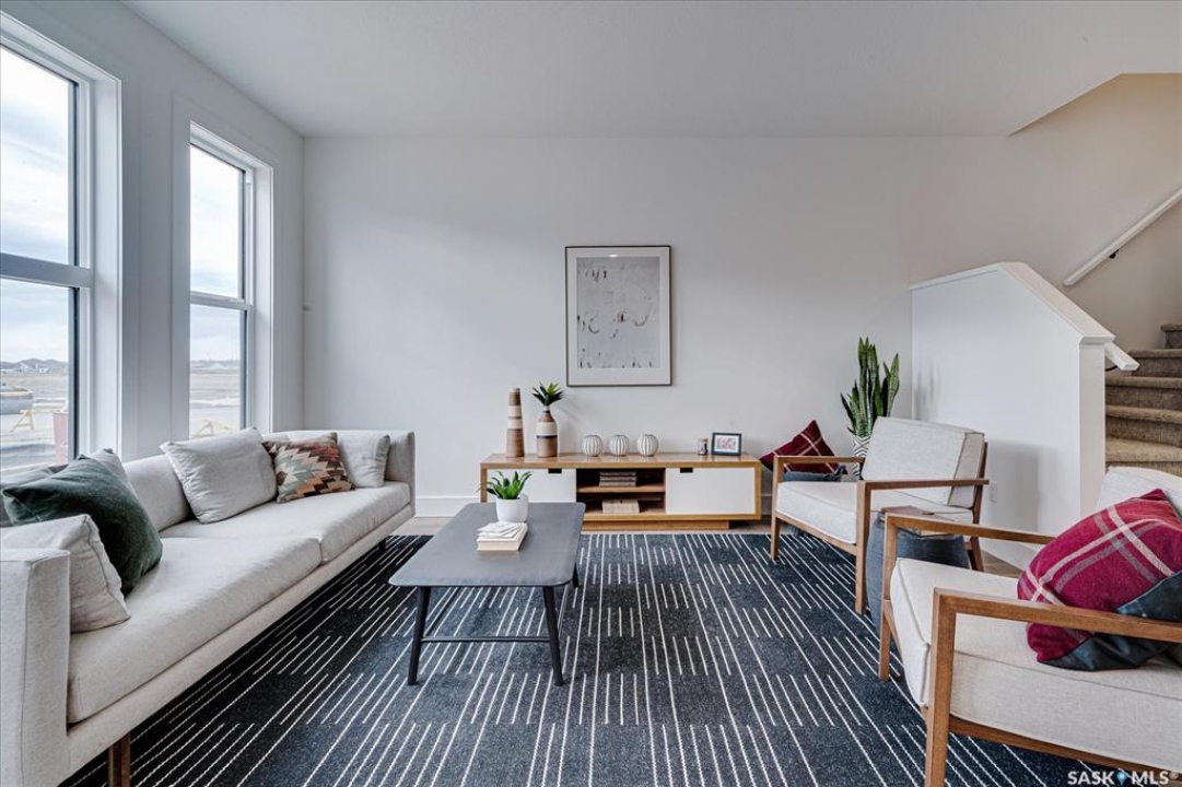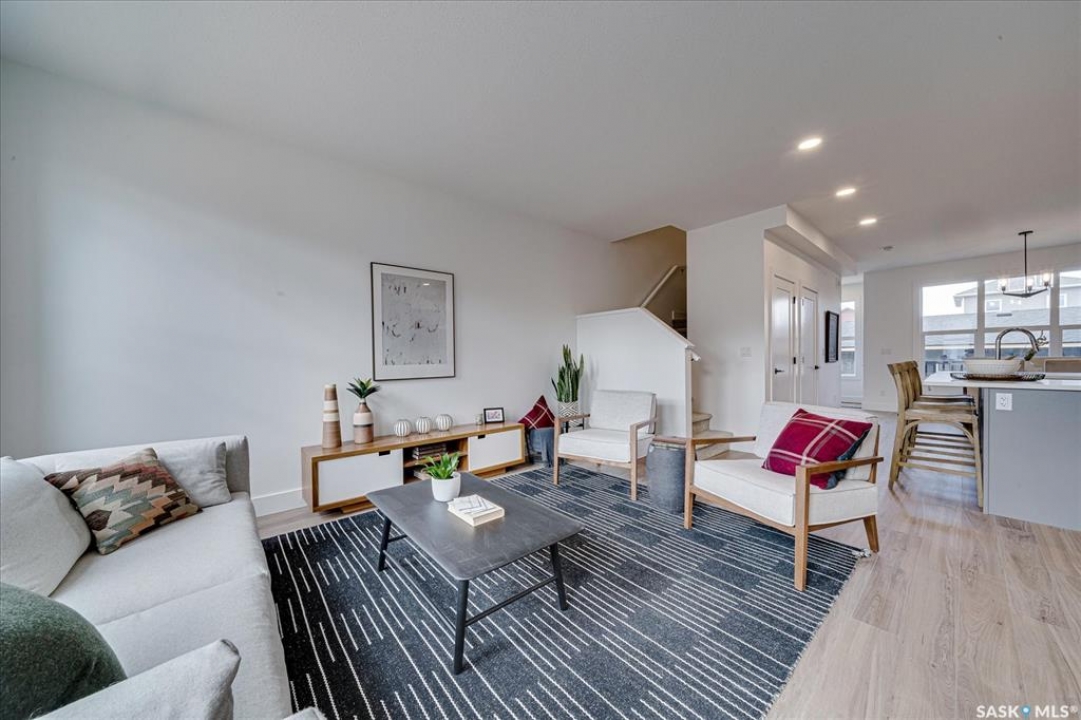 Welcome to Hudson Row 3, Saskatoon's newest townhome project located in The Meadows at Rosewood. This Scandinavian inspired streetscape will create an unmatched timeless curb appeal that is sure to catch people's eye. The 1461 SF open concept interior includes all the premium designer finishes people have come to expect with Arbutus Properties. The main floor includes an efficient layout with large front and back windows that flood the space with natural light and is covered by premium flooring. The centrally located chef's kitchen includes trendy flat panel cabinetry highlighted with matt black hardware, quartz counters, stylish backsplash and a full stainless appliance package. The upper floor includes 3 generously sized bedrooms, 4pc bathroom, a convenient flex space that was designed to cater to a variety of uses and an easy to access laundry closet. Also on the upper floor is the master bedroom that includes a walk-in closet and a private ensuite. The exterior of the home is covered in durable James Hardie composite siding and comes inclusive with private fenced landscaped yards, a rear deck & a double detached garage at the rear. Located near multiple parks, commercial amenities, Costco and within a block from 2 new community schools makes this a must see! "Disclaimer, all cabinets in these units will be flat white , floor tiles will be grey, backsplash is white, AI generated kitchen showing example with Island, but cabinets will be flat panel, picture in listing showing colour patterns! Contact Agent for more information. Garages can not be done until June when frost is all out. Pictures are from our last showhome.
