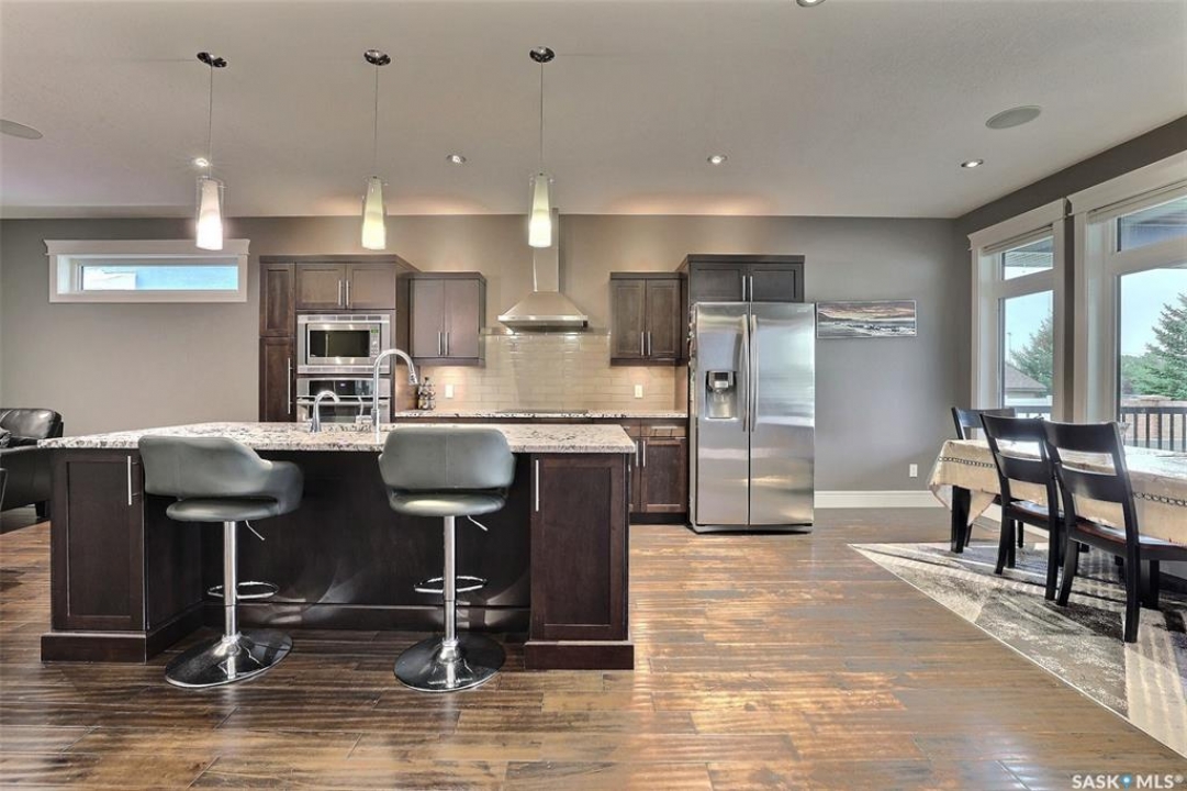 Are you searching for a refined bungalow living in the heart of Harbour Landing — one of Regina's most sought-after communities? This beautifully finished 1,600 sq ft home offers 5 spacious bedrooms and the perfect balance of modern style and functional family space. The bright, open-concept main floor seamlessly connects the living, dining, and kitchen areas — ideal for both everyday living and effortless entertaining. At the center, the kitchen impresses with solid-surface countertops, high-end appliances, and abundant cabinetry designed for both beauty and practicality. The primary suite provides a private retreat, complete with a spa-inspired ensuite that invites you to relax and recharge. Downstairs, the fully developed basement adds even more versatility with additional bedrooms and a large family room perfect for movie nights, game days, or a kids' hangout space. And enjoy unbeatable convenience — schools, parks, walking paths, shops, and restaurants are all just minutes away. Stylish, spacious, and superbly located — this is a home designed to grow with you. Book your private showing today.