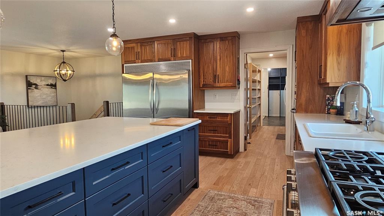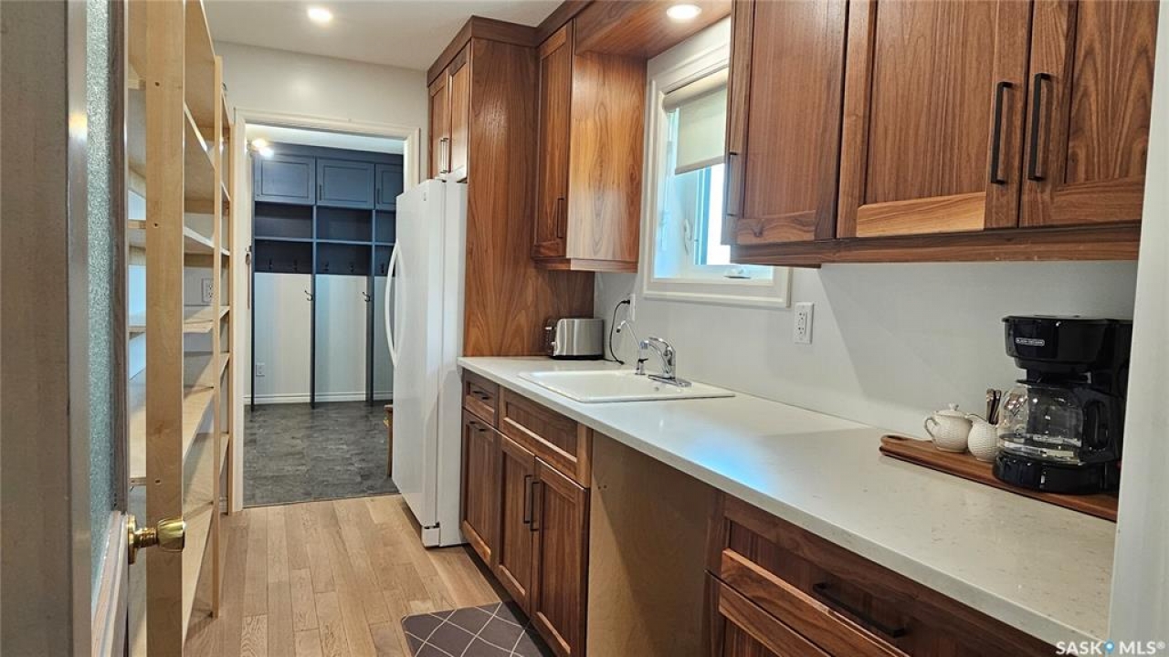Welcome to Top of The Hill Quarter, a rare 160 acre opportunity just east of Duval, SK. If you've been dreaming about space, privacy, and a home that truly has it all, this is it. This fully updated two storey offers 2,216 sq.ft. of beautifully designed living space with 5 large bedrooms and 4 modern bathrooms. The kitchen is absolutely the heart of this home; a chef's dream with a huge island made for entertaining and a stunning butler's pantry complete with a second sink, freezer, and space for another dishwasher. It's functional, stylish, and perfect for busy families or hosting. The cozy living room features a wood burning fireplace that makes the whole space feel warm and inviting. Upstairs, the primary suite is your own private retreat with a gorgeous ensuite and a spacious walk in closet. Comfort and practicality were clearly top of mind here, heated floors in the basement and in the impressive 40' x 80' heated shop make Saskatchewan winters no problem. There's also a 24' x 24' heated garage/storage building for even more flexibility. The property is well set up with a reliable well, separate septic systems for the home and shop, and a dugout water system that keeps the yard lush and green. Portions of the land are currently rented out for agriculture, providing income potential, and there are gravel deposits on site, adding even more long term value. Located just 8 minutes to Strasbourg, 15 minutes to Last Mountain Lake, 25 minutes to Rowan's Ravine Provincial Park, and under an hour to Regina-you truly get the best of peaceful rural living with convenience close by. This property needs to be seen in person to fully appreciate everything it offers. Whether you're looking for a family acreage, a working property, or a smart investment, Top of The Hill Quarter delivers space, comfort, and opportunity all in one incredible package.