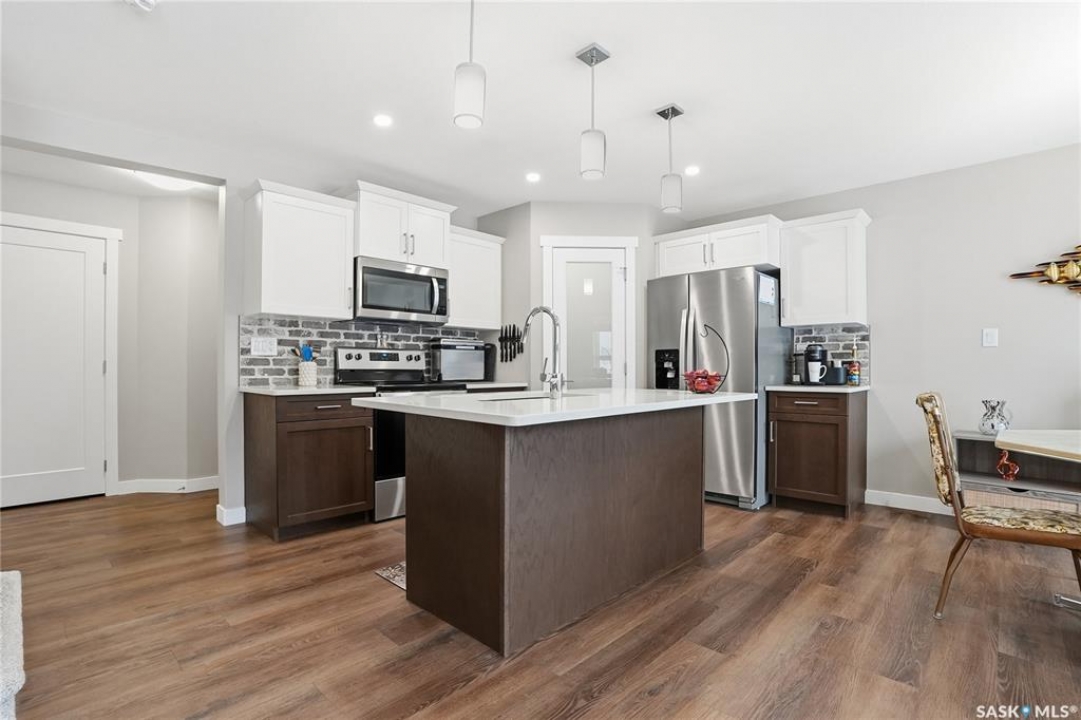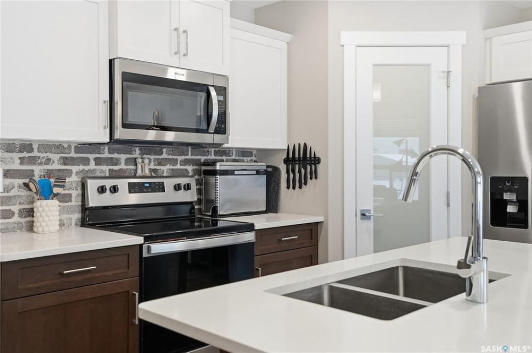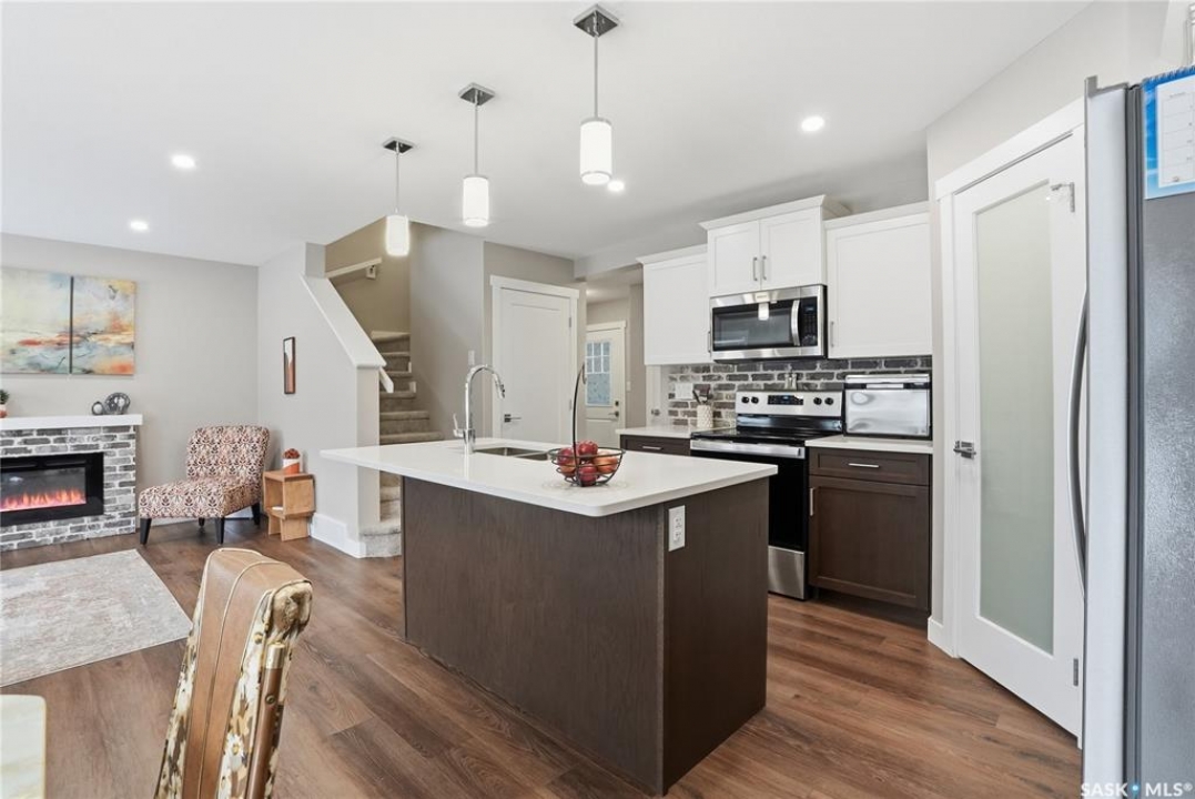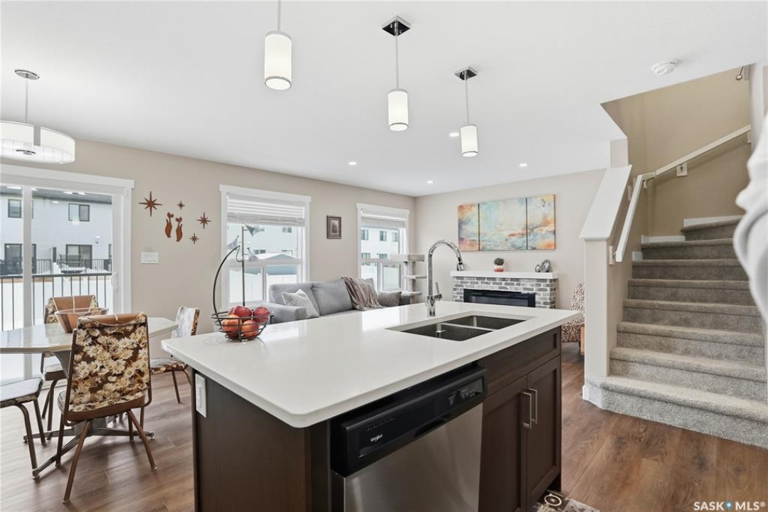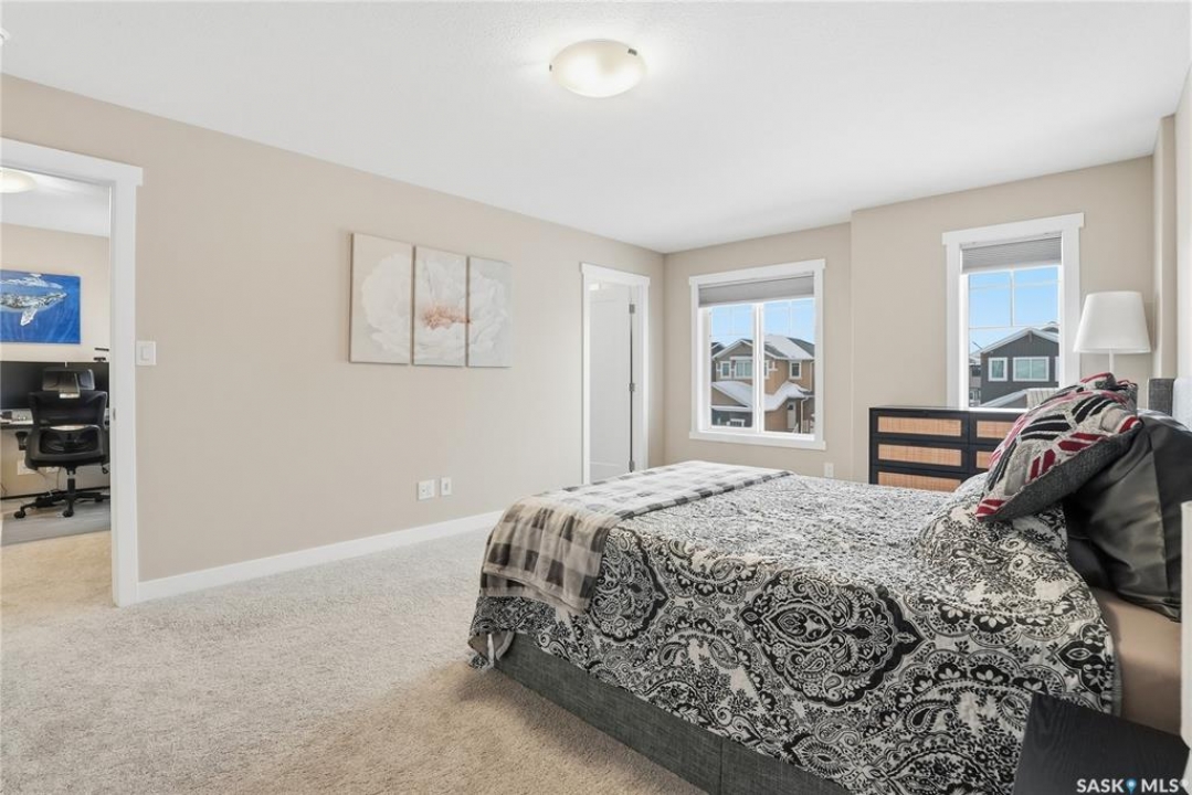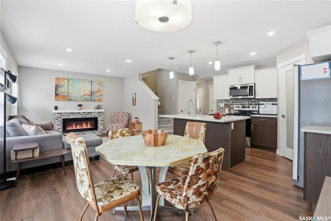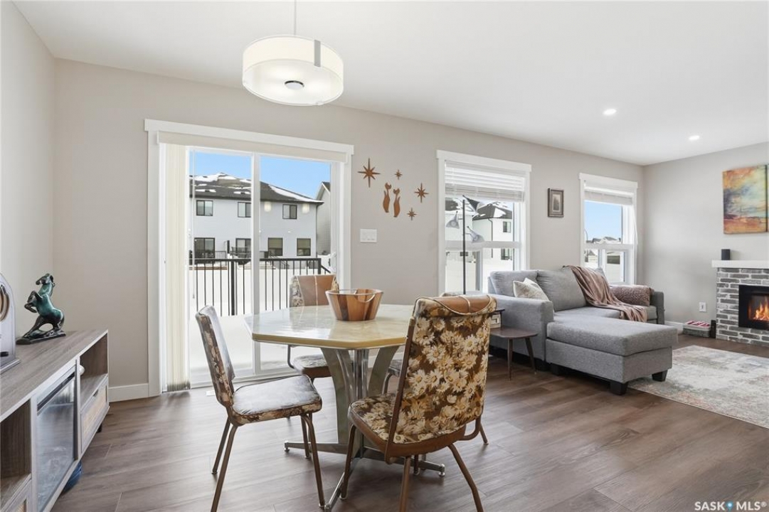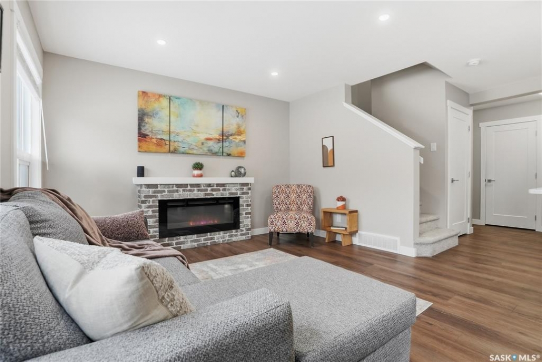 Welcome to this stunning, turn-key 1,489 sq. ft. semi-detached home offering luxury living in the heart of Brighton. Thoughtfully designed with both style and functionality in mind, the main floor features a sleek, practical kitchen complete with quartz countertops, walk-through pantry, and stainless steel appliances. The open-concept living room is perfect for entertaining, highlighted by a beautiful fireplace, along with a convenient 2-piece powder room. Upstairs, you'll find three spacious bedrooms, including a primary suite with a walk-in closet, two full bathrooms, a second-floor laundry room with additional storage, and a versatile bonus/flex room. Oversized windows throughout the home flood the space with an abundance of natural light. Additional features include central air conditioning, washer and dryer, and a front double attached garage, partially insulated. The property is fully landscaped with a fenced backyard, rear deck, and a double concrete driveway. Best of all—no condo fees! This gorgeous home truly has it all: quality craftsmanship, modern style, and a flawless layout. Located in Brighton—Saskatoon's fastest-growing neighbourhood—you'll enjoy close proximity to fantastic amenities including restaurants, convenience stores, Landmark Cinemas, Wilson's Greenhouse, Stoked Kitchen & Bar, Motion Fitness, Save-On-Foods, Shoppers Drug Mart, and more.
