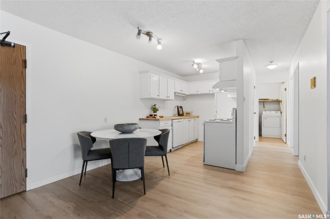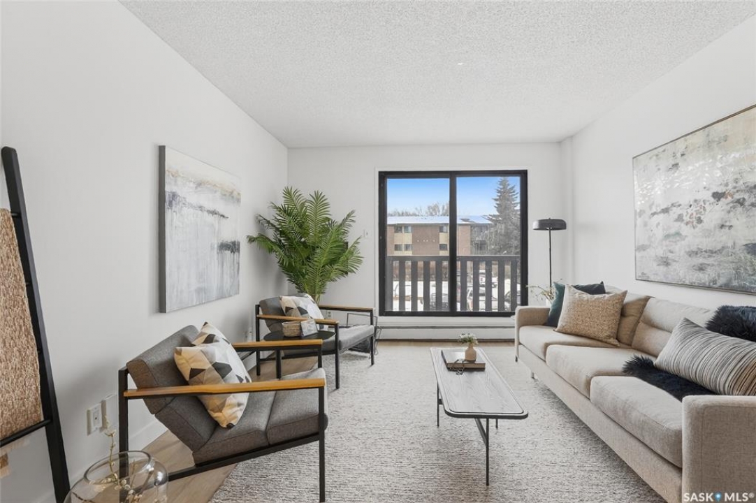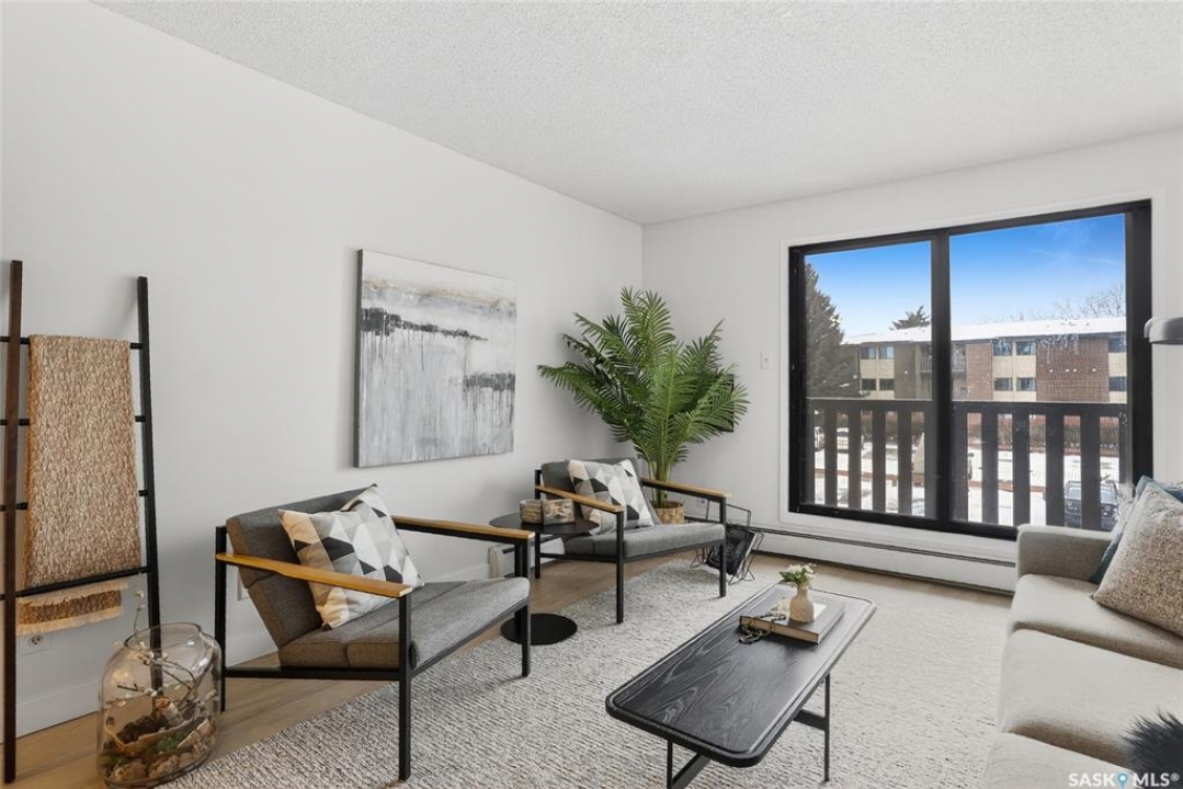 Your search ends here. This beautifully updated 2-bedroom condo offers modern style, smart design, and an affordable price point—perfect for students, first-time buyers, or savvy investors. Recently refreshed from top to bottom, the space features fresh paint in contemporary tones and durable new flooring that flows seamlessly throughout, creating a bright, open feel. The kitchen blends warmth and function with crisp white cabinetry, butcher block countertops, and a full appliance package—ready for everyday living or entertaining. With 831 sq ft of thoughtfully designed space, you'll find two generously sized bedrooms, a full 4-piece bathroom, and a dedicated laundry area that also provides valuable extra storage. Step outside onto your private balcony, where you'll appreciate convenient access to your exclusive parking stall—especially on those chilly winter mornings. Bonus: additional outdoor storage makes condo living even easier. Move-in ready and ideally located with quick access to public transit, 8th Street amenities, Centre Mall, and more. If you enjoy staying active, you'll love being steps from Wildwood Golf Course—perfect for a round of golf or peaceful daily walks. Why rent when you can own a stylish, updated home at an attainable price? This is the opportunity you've been waiting for.