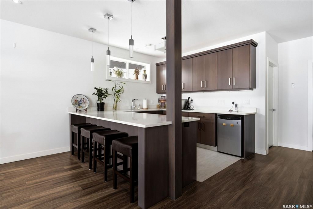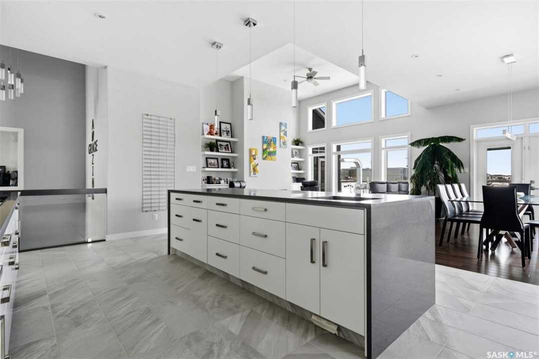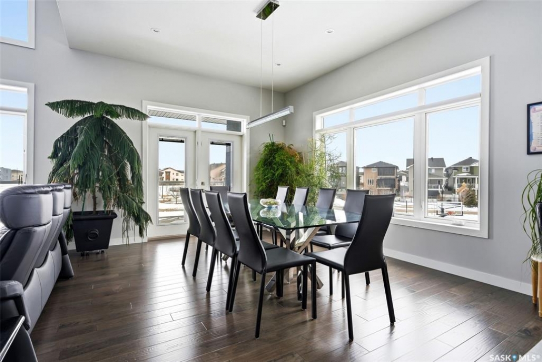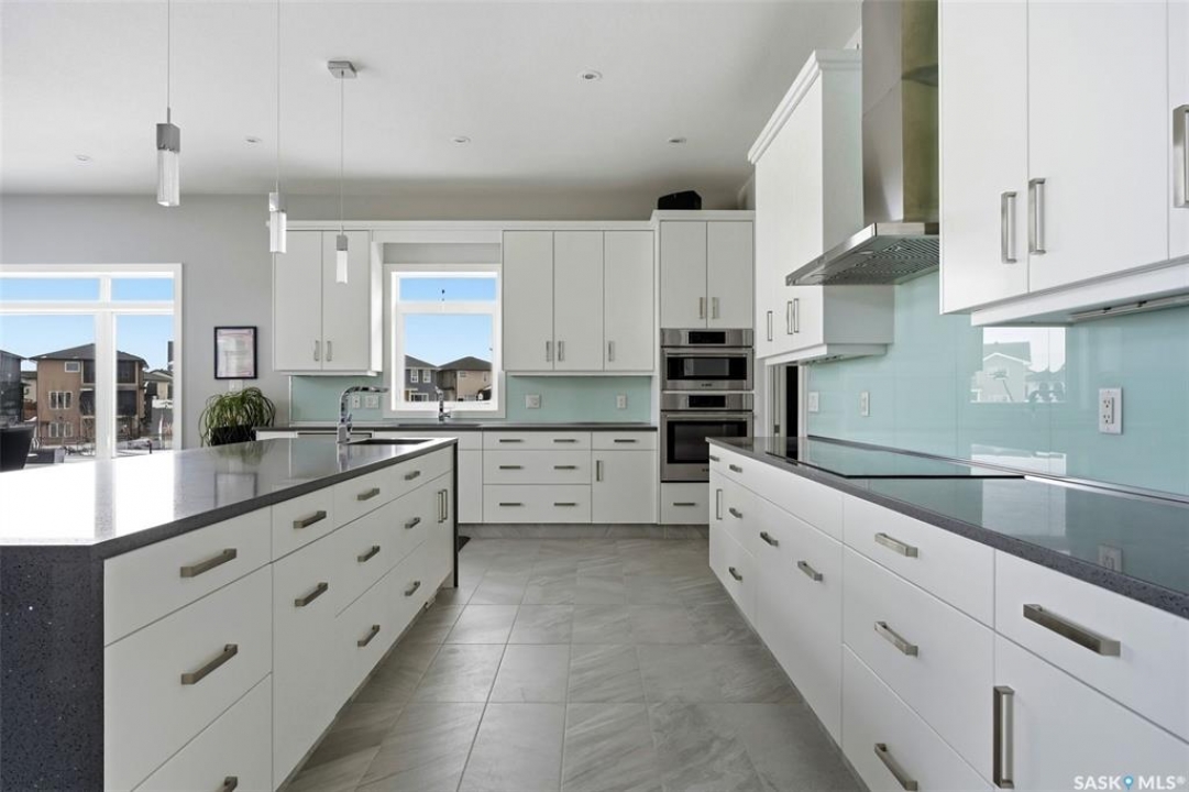 Welcome to your dream home in Regina's desirable east end! This premium custom-built bungalow blends luxury, comfort, and smart design in one of the area's most convenient and family-friendly spots. The open main floor features soaring 10' ceilings with maple railing with glass inserts for that sophisticated touch. The gourmet kitchen is a highlight, with quality-stained maple cabinets, gleaming granite countertops, built-in microwave oven combo and an induction cooktop. One and a half bathrooms that pamper you with granite vanities and backsplashes. Your main floor is complete with two bedrooms. The finished walk-out basement offers a cozy retreat with radiant in-floor heating and direct backyard access. In the recreation room you'll find gorgeous maple bar with granite perfect for entertaining. In the basement you will find three additional bedrooms and a 4-piece bath. Nestled in Regina's thriving east end—steps from Acre 21 shopping centre (with groceries, restaurants, coffee shops, medical offices, and more), close to excellent schools (backs school grounds for added privacy and open views) and beautiful parks like nearby Green Meadow Park, and quick Ring Road access—this quiet, family-oriented neighbourhood combines everyday convenience with easy urban perks in one of the city's fastest-growing areas. Move-in ready and full of pride-of-ownership appeal