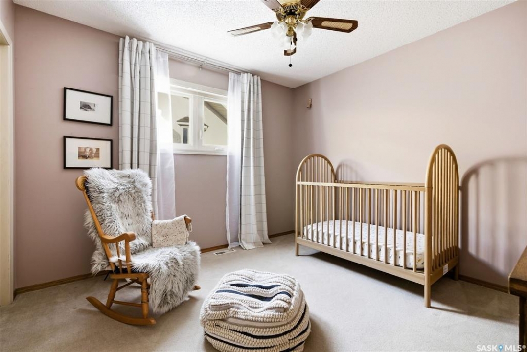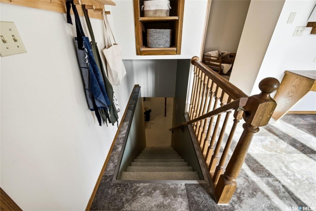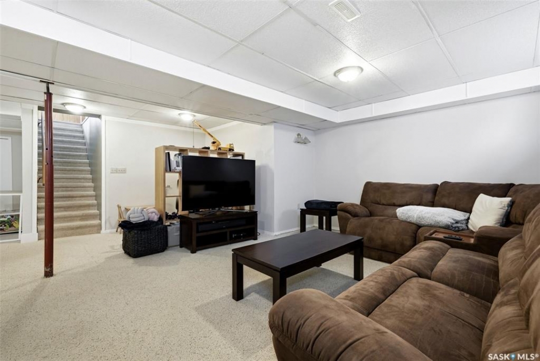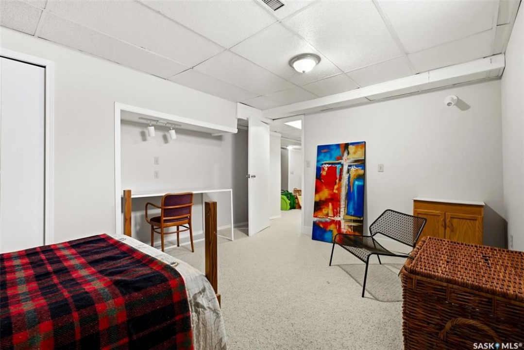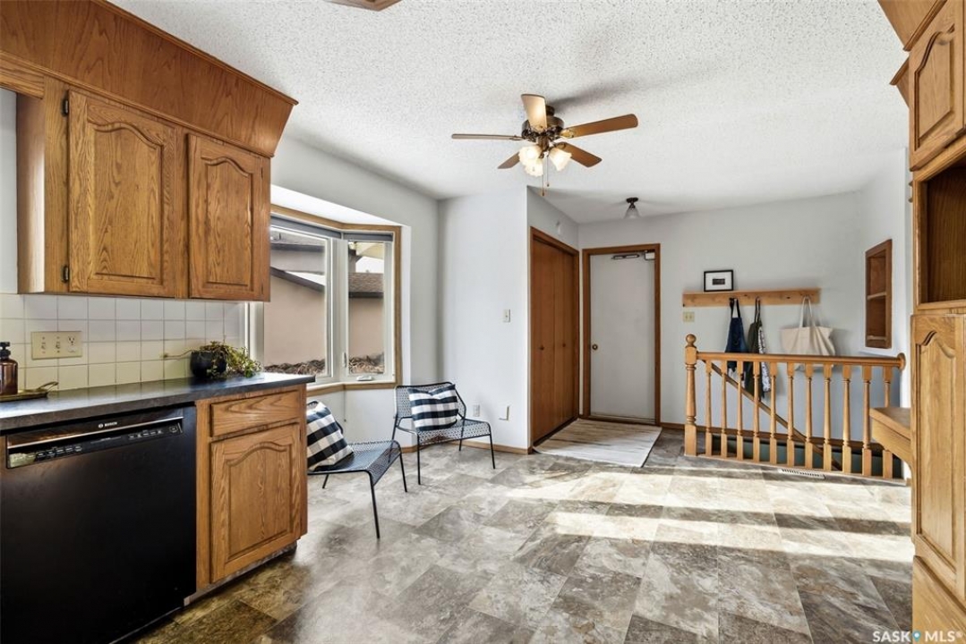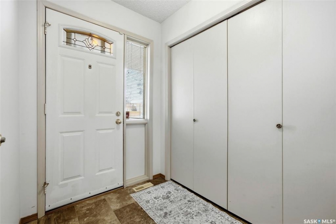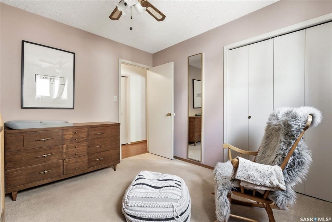 Welcome to 2643 Lacombe Crescent, ideally located in Regina's desirable east end, just steps from green space, walking paths, and within close proximity to W.F. Ready and St. Marguerite Elementary Schools. This spacious, well maintained Gilroy built bungalow offers 5 bedrooms and 3 bathrooms, providing exceptional space for a growing family. The front entry features a large closet, direct access to the double attached insulated and heated garage, and a glass door that allows the foyer to be privately sectioned off. Thoughtfully designed, the main floor separates the bedroom wing from the entertaining areas, creating a functional and family friendly layout. The sunken living room showcases updated laminate flooring and a cozy wood burning fireplace, while the bright formal dining room offers direct access to the backyard deck. The kitchen provides ample cabinetry and counter space along with a comfortable informal eating area. Convenient main floor laundry is located in the rear hallway next to a second entrance to the garage. On the opposite end of the home, the primary suite features a walk in closet, 3 piece ensuite, and private access to the deck. Two additional well sized bedrooms and a full main bathroom complete the main level. The fully developed basement is exceptionally spacious, offering a large family room, two additional bedrooms, a 3 piece bathroom, utility room, and abundant storage space. Step outside to enjoy the partially covered deck with two gas BBQ hookups, overlooking a beautifully landscaped, park like yard filled with mature trees, shrubs, perennials, a garden area, and gazebo that all back directly onto green space for added privacy and tranquility. Built on piles, numerous updates including larger ticket items such as windows (2010), 35-year shingles (2014), flooring (2010), high-efficiency furnace (2025), and central air conditioning. Situated in a quiet neighbourhood, this meticulously cared for bungalow is truly a pleasure to show.