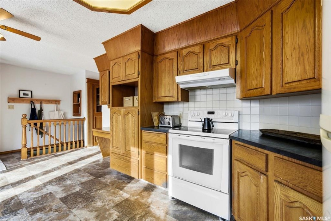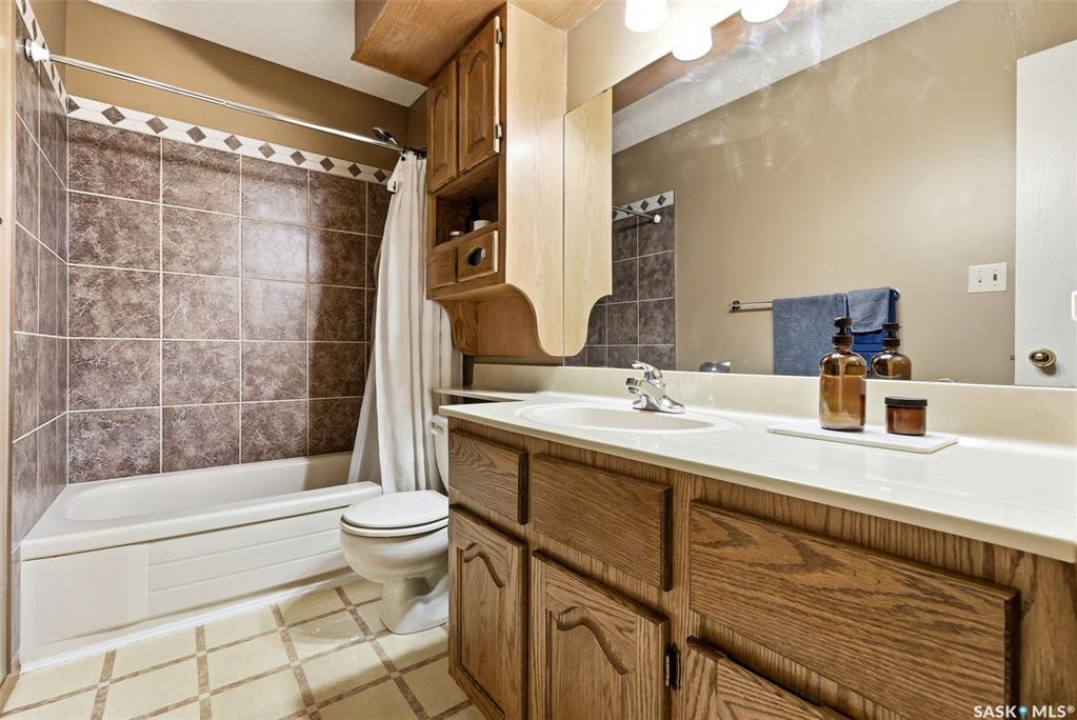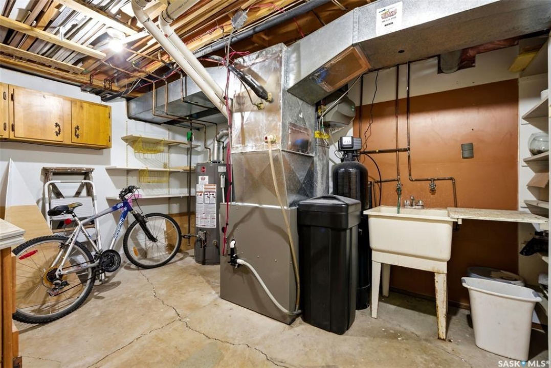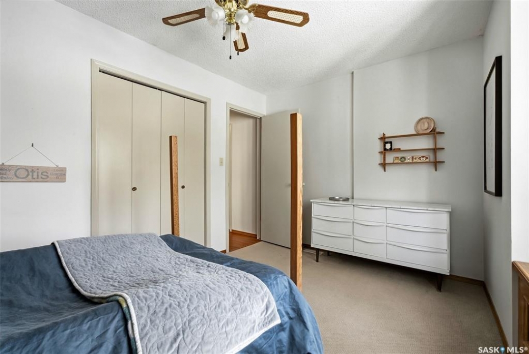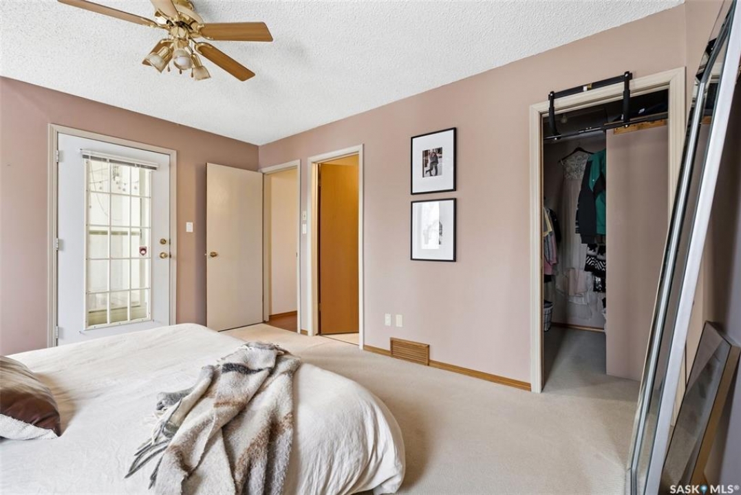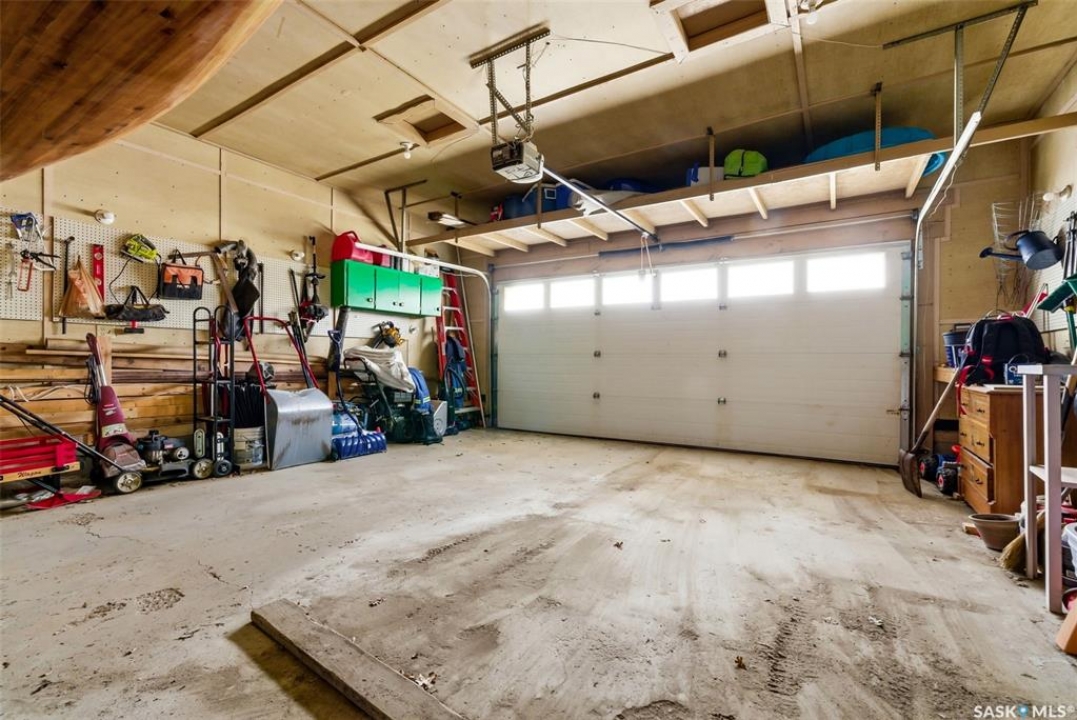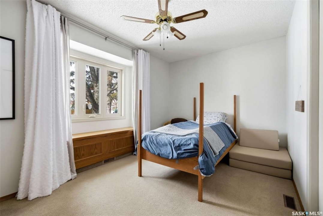 Welcome to 2643 Lacombe Crescent, ideally located in Regina's desirable east end, just steps from green space, walking paths, and within close proximity to W.F. Ready and St. Marguerite Elementary Schools. This spacious, well maintained Gilroy built bungalow offers 5 bedrooms and 3 bathrooms, providing exceptional space for a growing family. The front entry features a large closet, direct access to the double attached insulated and heated garage, and a glass door that allows the foyer to be privately sectioned off. Thoughtfully designed, the main floor separates the bedroom wing from the entertaining areas, creating a functional and family friendly layout. The sunken living room showcases updated laminate flooring and a cozy wood burning fireplace, while the bright formal dining room offers direct access to the backyard deck. The kitchen provides ample cabinetry and counter space along with a comfortable informal eating area. Convenient main floor laundry is located in the rear hallway next to a second entrance to the garage. On the opposite end of the home, the primary suite features a walk in closet, 3 piece ensuite, and private access to the deck. Two additional well sized bedrooms and a full main bathroom complete the main level. The fully developed basement is exceptionally spacious, offering a large family room, two additional bedrooms, a 3 piece bathroom, utility room, and abundant storage space. Step outside to enjoy the partially covered deck with two gas BBQ hookups, overlooking a beautifully landscaped, park like yard filled with mature trees, shrubs, perennials, a garden area, and gazebo that all back directly onto green space for added privacy and tranquility. Built on piles, numerous updates including larger ticket items such as windows (2010), 35-year shingles (2014), flooring (2010), high-efficiency furnace (2025), and central air conditioning. Situated in a quiet neighbourhood, this meticulously cared for bungalow is truly a pleasure to show.