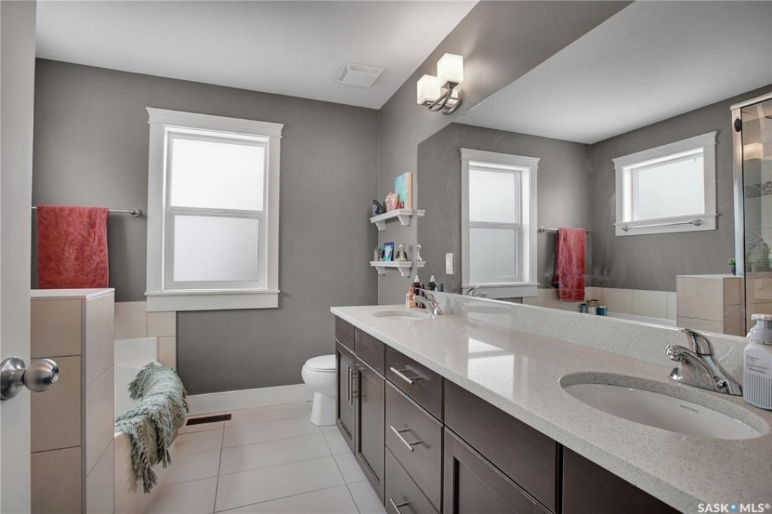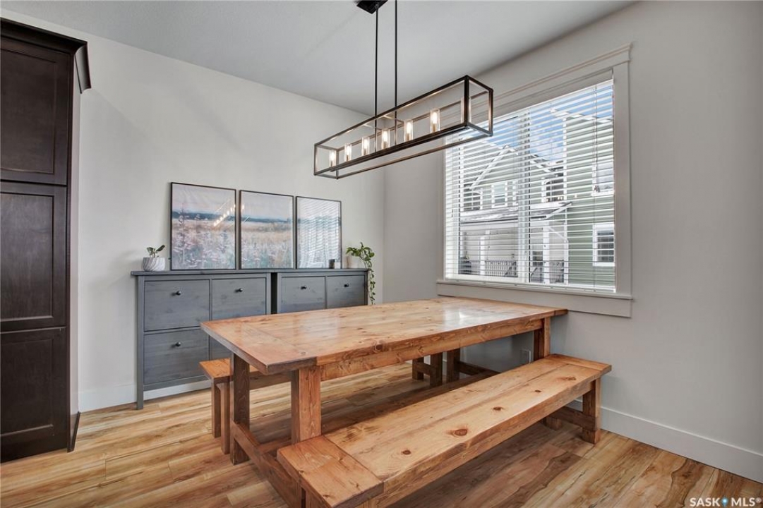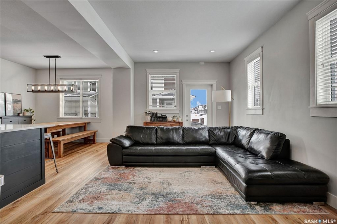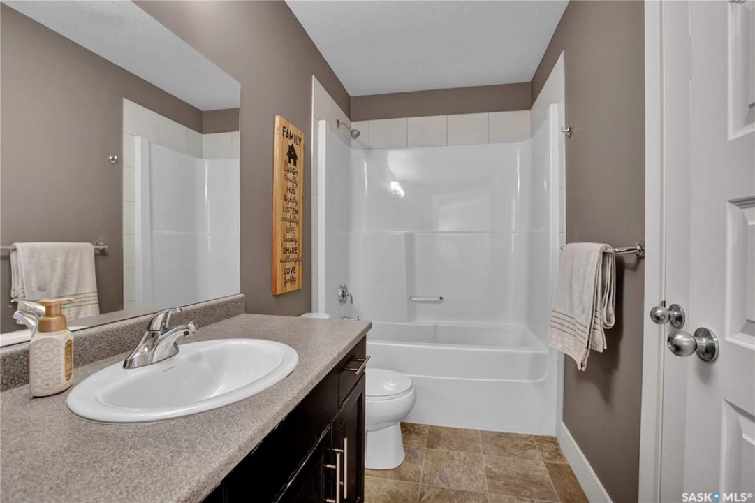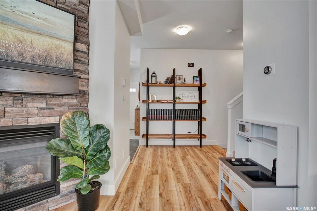 Walk into incredible value in this fully customized 1,643 sq. ft. unit , thoughtfully upgraded and perfectly suited for a growing family. From the moment you step inside, you'll notice how functional this home is. The oversized entry offers generous storage with built-in hooks and space to keep everyday life organized (because backpacks, hockey bags, and Costco runs need a home too). The main floor has been updated with stylish, durable vinyl plank flooring that flows seamlessly through the living areas. The kitchen is designed for connection — featuring a spacious island with ample seating, ideal for homework sessions, casual breakfasts, or hosting friends. The cozy gas fireplace in the living room creates a warm focal point, a great place to unwind at the end of the day. The majority of the high traffic areas have smart bulbs that can be controlled by WIFI. Throughout the home, the owners have added beautiful custom touches ;feature walls, built-in shelving, and clever storage solutions that truly maximize every square foot. It feels intentional, polished, and move-in ready. Upstairs, you'll find generously sized bedrooms, convenient second-floor laundry, and a spacious primary retreat complete with a five-piece ensuite , your own quiet escape. The basement is also fully finished, offering an additional family room and a bedroom with a walk-in closet. Bonus: the walk-in closet has a bathroom rough-in, giving you the option to easily add another bathroom if desired. Outside, the backyard is south-facing and designed for low maintenance enjoyment. A partially covered deck and dedicated seating area make it easy to soak up those Saskatchewan summer evenings. What truly sets this property apart is its location , centrally situated near schools, parks, and walking paths. It's a neighbourhood where families settle in, kids and play outside. If you've been waiting for a turnkey home with space, style, and smart upgrades, this might just be it.