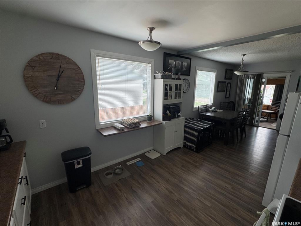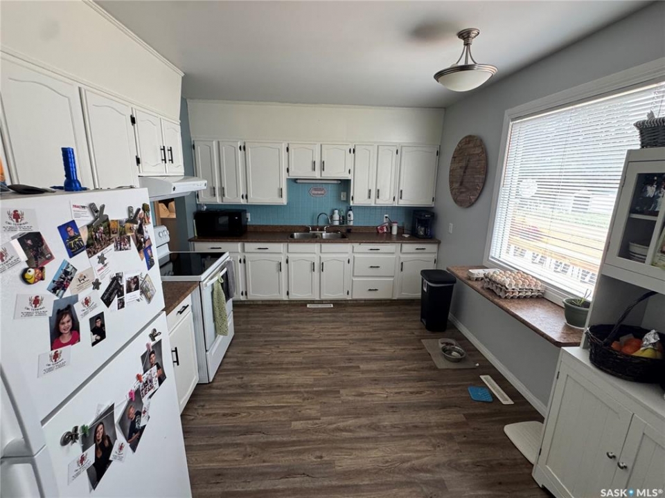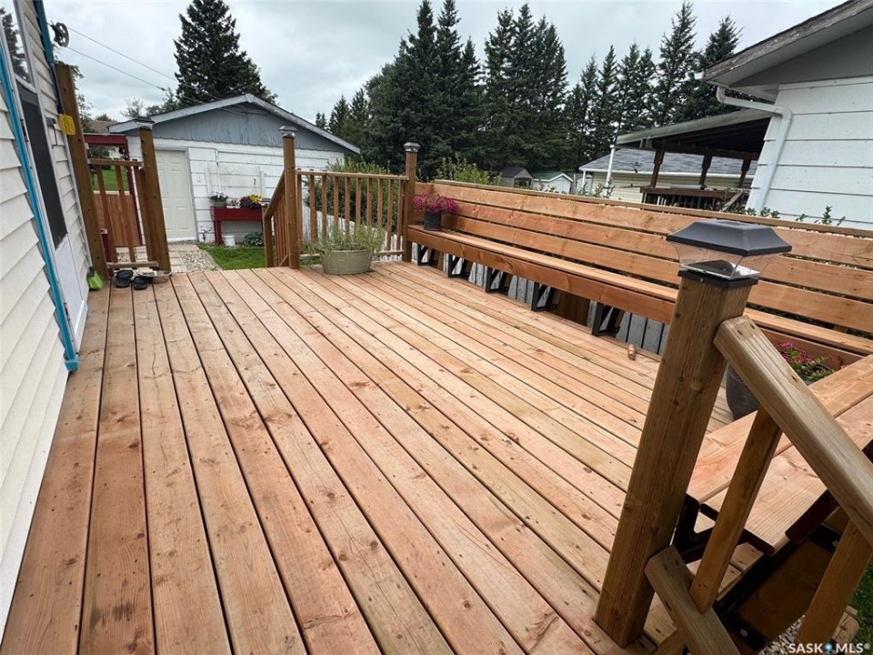 Take some time to slow down and relax in this beautifully maintained home located at 202 2nd Ave in the peaceful town of Spalding, SK, close to many employment opportunities in the area, including Shulte Industries, BHP Potash Mine, Doepker Industries, and more. If you are searching for a move-in ready property with plenty of space for a growing family, this charming bungalow may be exactly what you have been looking for. Built in 1950, this 947 square foot home sits on an oversized, fully fenced lot with a large backyard and large side deck that is perfect for entertaining when friends and family come to visit. The property offers exceptional storage options, including a 10 x 15 shed, a 16 x 24 detached garage, and an additional carport that provides ample covered parking and storage space. Upon entering through the back, you are welcomed by a spacious porch that offers plenty of storage and features convenient main floor laundry along with a generous four-piece bathroom. From there, you step into the inviting open-concept kitchen, dining, and living area, highlighted by new vinyl plank flooring that runs throughout the main level. At the front of the home, a spacious three-season sunroom provides a delightful extension of your living space and the perfect spot to relax on warm summer evenings. The main floor is completed by two comfortable bedrooms, both well-sized for a growing family. The basement is also in excellent condition and adds even more functional living space, offering two large bedrooms, a spacious family room, and a three-piece ensuite bathroom. Solidly built and thoughtfully maintained, this home presents a wonderful opportunity at an affordable price. Some recent upgrades include: Furnace 2024, water softener 2025, deck 2024, new fence, insulated sunroom floor, new skirting on sunroom and new walls on carport. Schedule your viewing today.