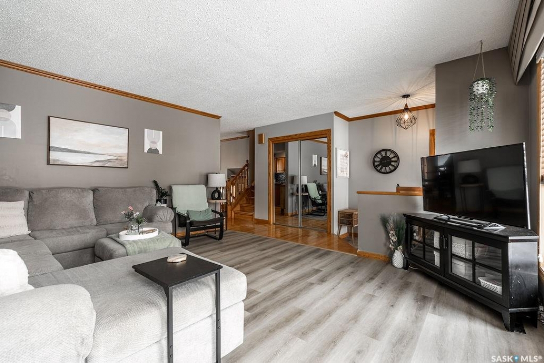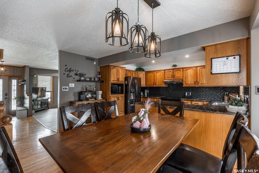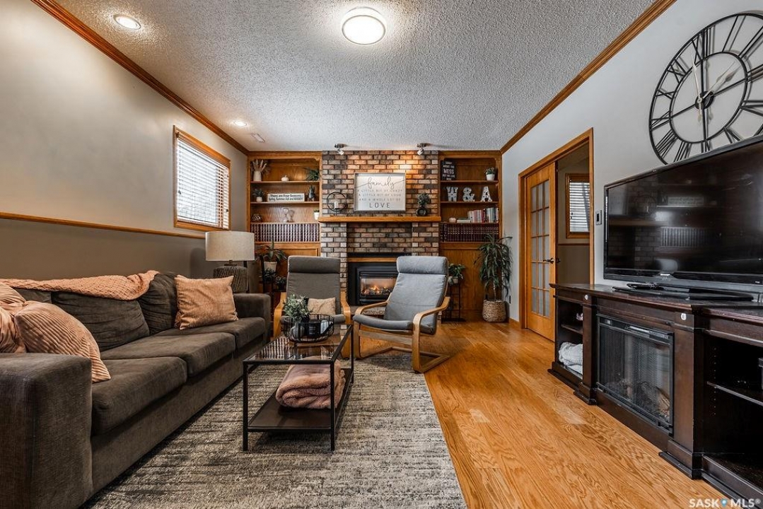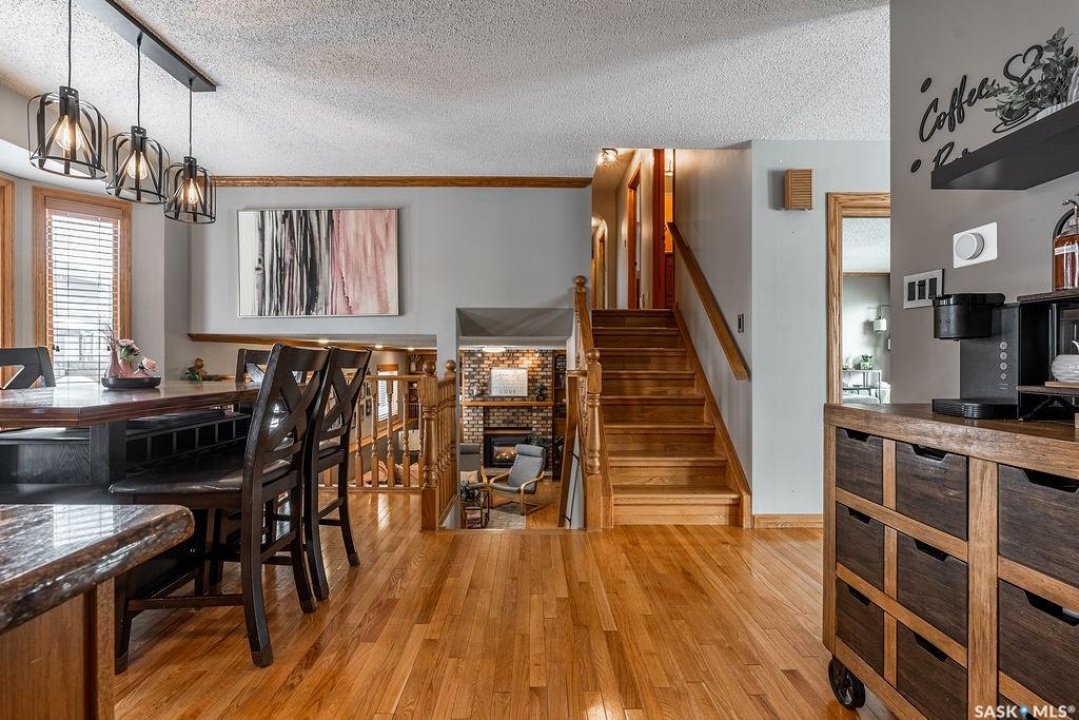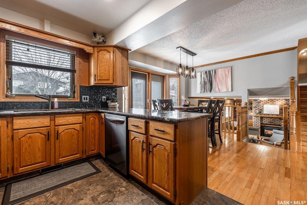 Welcome to 326 Bornstein Crescent in sought-after Erindale, a bright, spacious and beautifully maintained 4-level split offering five bedrooms, three bathrooms and 1,184 sq. ft. above grade, plus an attached double garage.The main floor welcomes you with a large, sun-filled living room and an inviting layout perfect for everyday living and entertaining. The spacious kitchen features an abundance of warm oak cabinetry, granite countertops, tile backsplash and newer appliances. A roomy dining area overlooks the backyard and offers direct access through patio doors - ideal for summer BBQs and seamless indoor-outdoor living. Newer windows throughout the home add efficiency and comfort. Upstairs you'll find a generous primary bedroom complete with an updated three-piece ensuite, along with two additional well-sized bedrooms and an updated four-piece main bathroom - perfect for a growing family. The third level is a standout with large windows that flood the space with natural light. The expansive family room features a cozy gas fireplace with brick hearth, beautiful built-in bookshelves and cabinetry, creating the perfect spot to relax or host movie nights. This level also includes a fourth bedroom and a cleverly designed three-piece bathroom combined with laundry for added convenience. The basement is currently used as one large bedroom but offers flexibility to function as a games room, home office, gym or additional family space. Step outside to a fully developed backyard with a newer deck, mature perennials, newer fencing, fire pit area, gazebo trellis, tons of beautiful perennials, and garden shed. Fully equipped with solar panels that will considerably offset your power bill, air conditioning, underground sprinklers and a natural gas bbq hook up. Located close to parks and within walking distance to excellent elementary schools, this home offers space, function and an unbeatable family-friendly location.