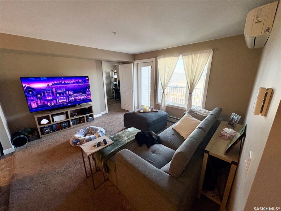 Welcome to this stylish 657 sq ft condo in the modern Fifth & 5th building. This thoughtfully designed one-bedroom plus office suite offers an open-concept layout that maximizes space and functionality. The kitchen seamlessly connects to the dining and living areas, creating an inviting space for everyday living or entertaining. The contemporary kitchen features updated white appliances, ample cabinet and counter space, and a functional island that adds both prep space and seating. The spacious primary bedroom is bright and comfortable, while the dedicated office provides the perfect work-from-home space or compact second bedroom to suit your needs. A well-appointed 4-piece bathroom, convenient in-suite laundry, and a private north-facing balcony add to the comfort and practicality of this home. This unit also includes one reserved outdoor parking stall. This is an excellent opportunity for first-time buyers, professionals, or investors. Book your private viewing today.