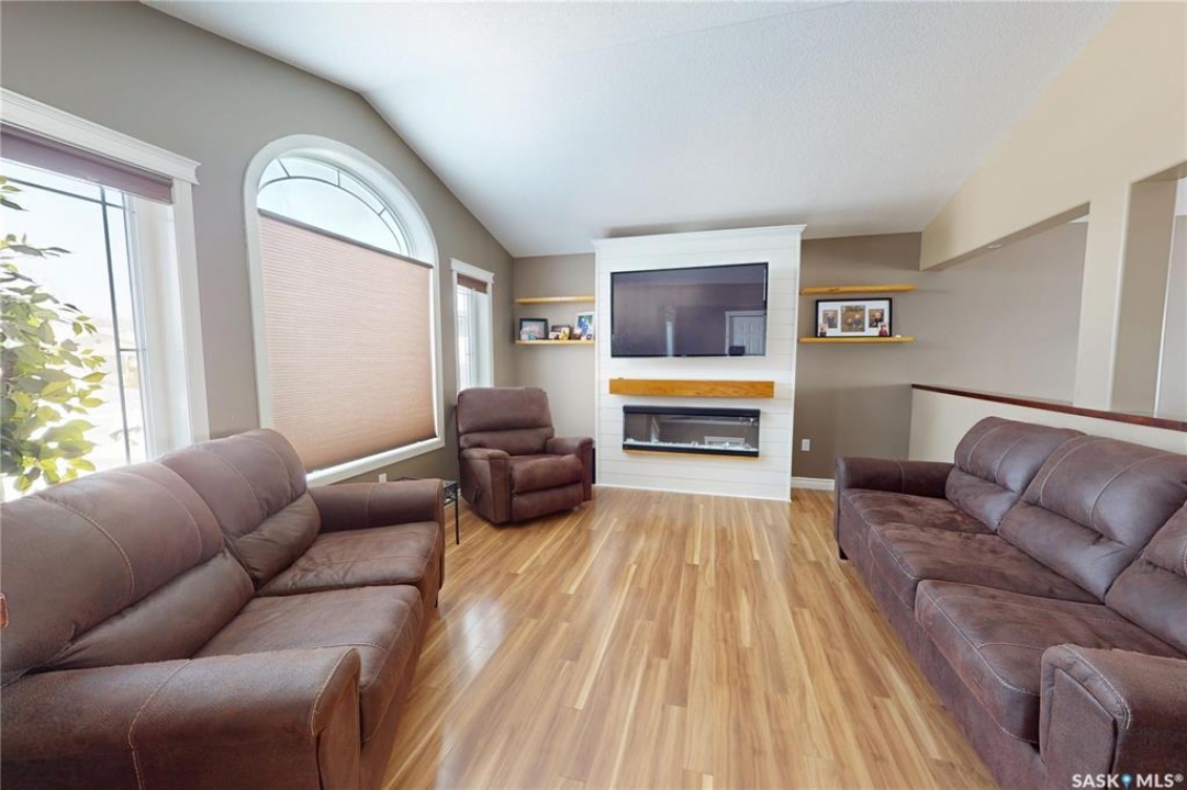 a BEAUTIFUL move-in ready home built in 2008! This lovely home has SO much to offer — 1620 SQFT, large primary bedroom, fenced backyard, vaulted ceiling, double attached garage, A QUIET STREET…just so many great features! Not 3, not 4, but FIVE bedrooms total (one is currently being used as an office), 3 full bathrooms (all with tiled walls/shower/tubs), and a fully finished basement! The main floor offers a good sized living room with plenty of natural light and an electric fireplace, kitchen with dark cabinetry & walk-in pantry, dining space with access to the backyard, a 4pc bath down the hall plus a laundry/mudroom, 2 bedrooms and a primary bedroom with a 5pc ensuite (2 showers!) + walk-in closet. A gorgeous bannister and a striking spiral staircase leads to the basement where you'll be pleased to find a HUGE 2nd living room/rec room [plenty of space for the kiddos to run], TWO more bedrooms, a 4pc bath, and the utility room. DOUBLE CAR GARAGE & PAVED DRIVEWAY. In a desirable, tight-knit neighbourhood just a few blocks from the schools! PRICED AT $575,000! Don't miss out on this move-in ready home in a GREAT LOCATION! Click the virtual tour link to have an online look inside the home.