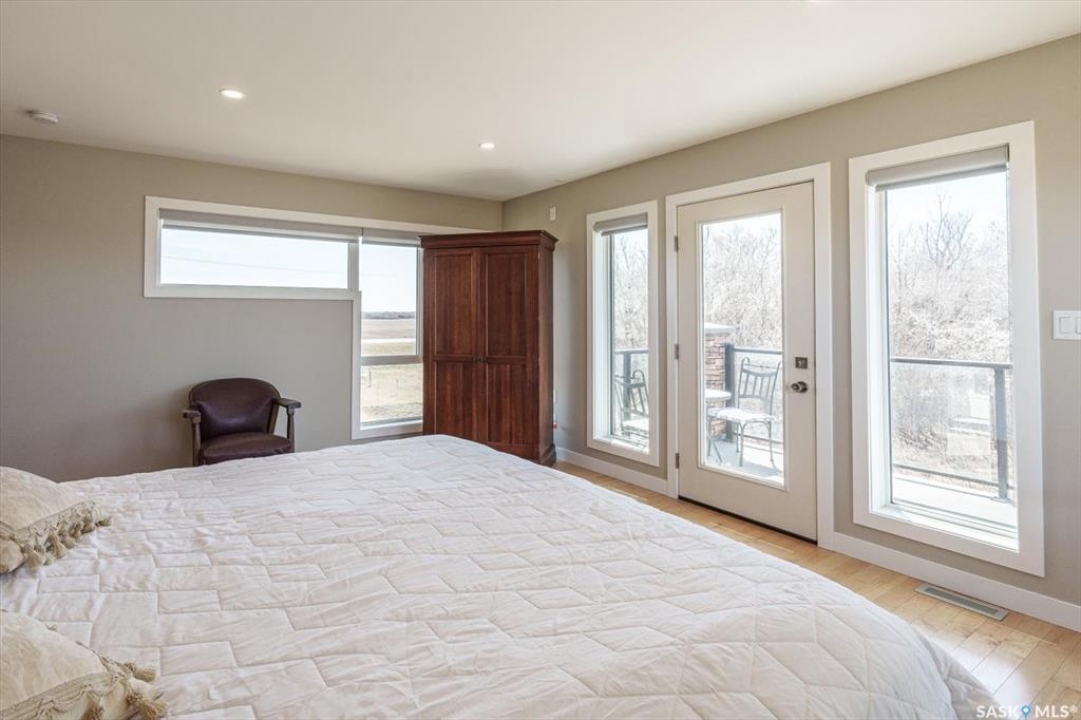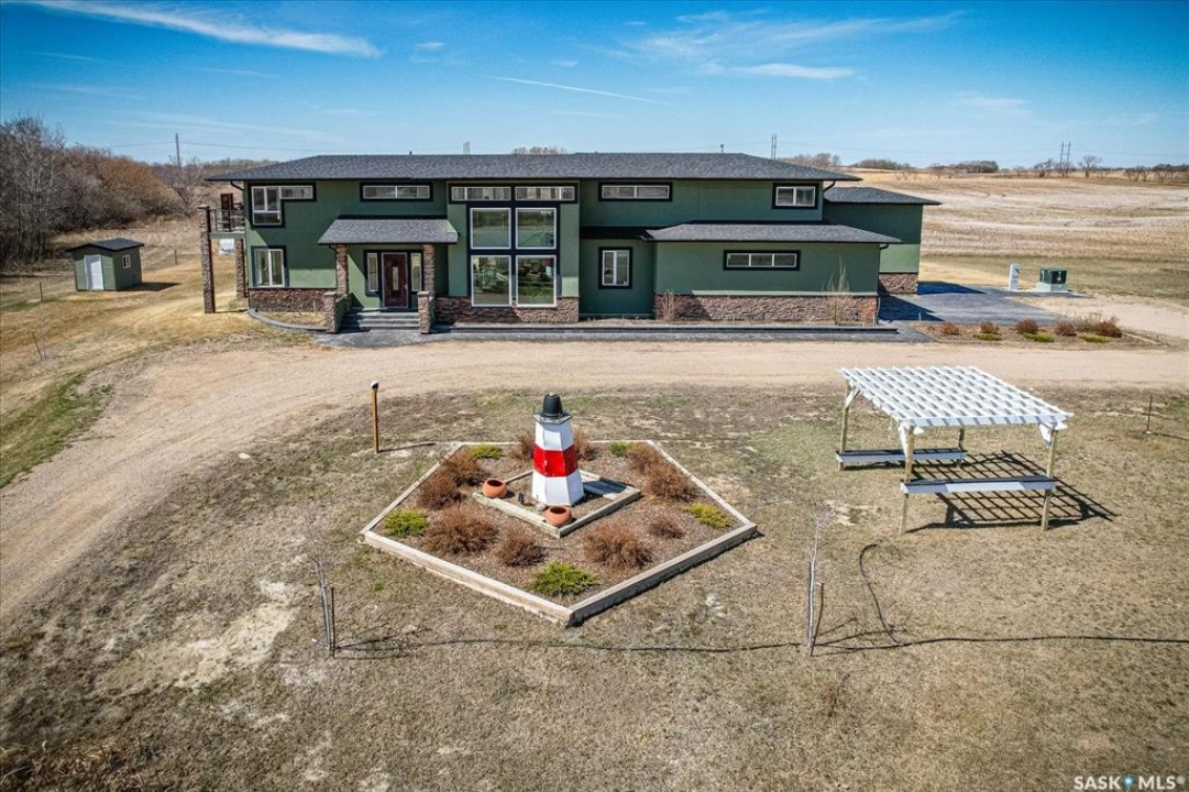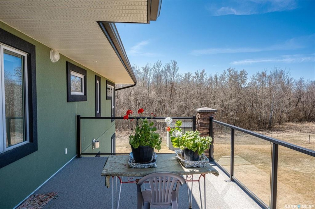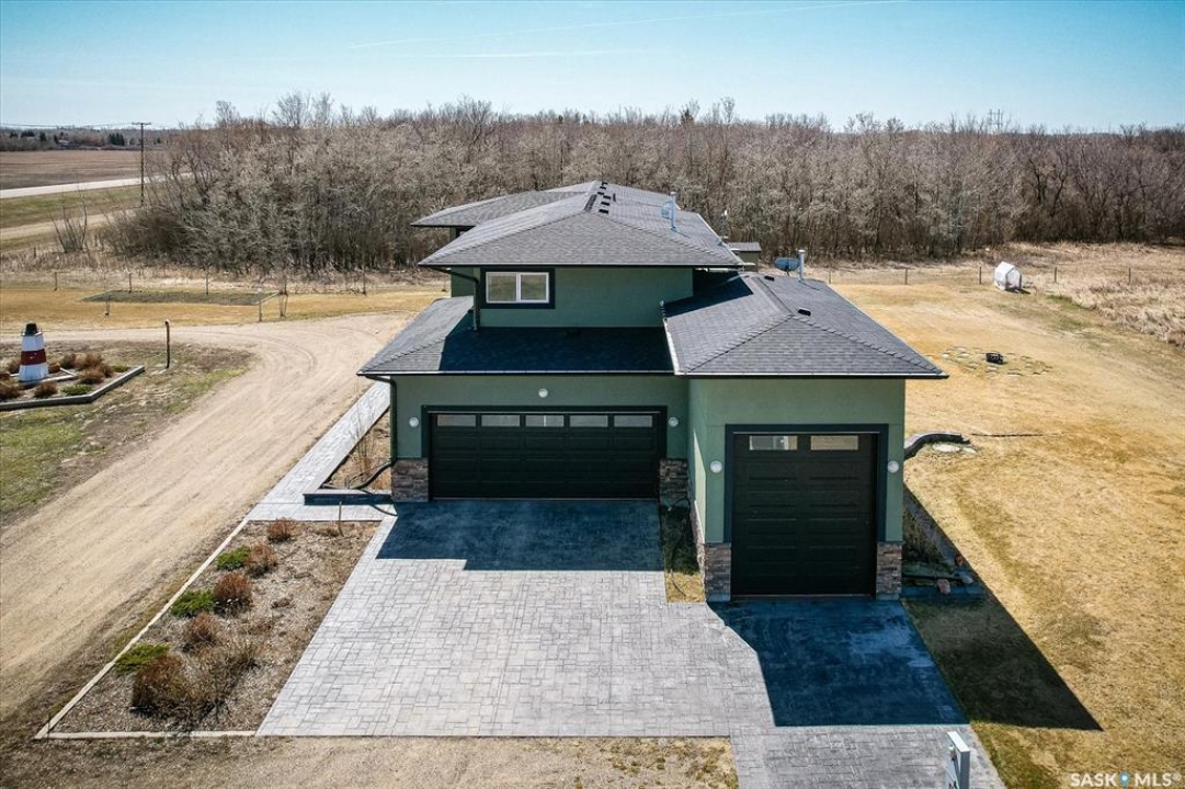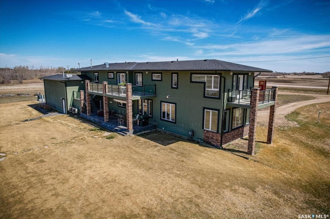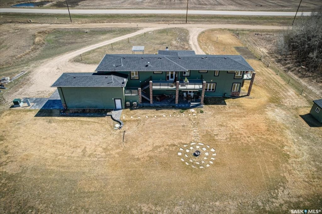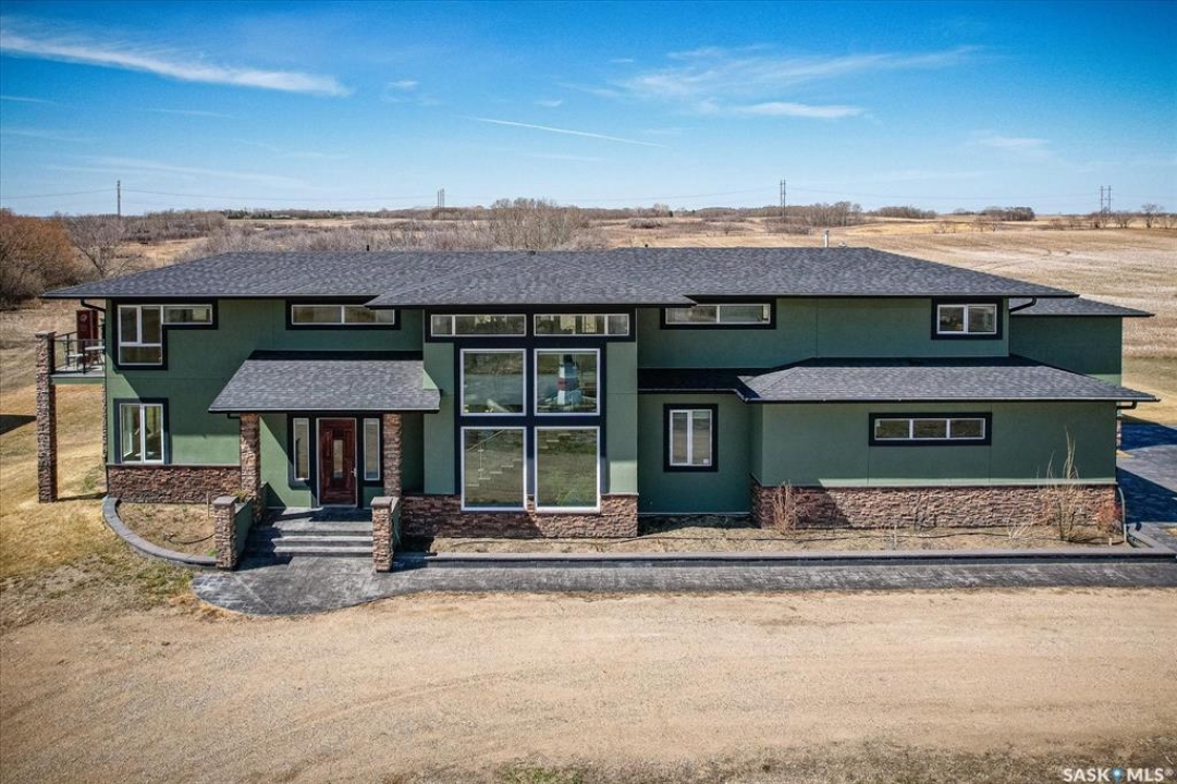 Modern acreage living just minutes from Saskatoon! Located on the edge of the city, this 68.9-acre property offers space, privacy, and future potential. Built in 2017, the 3,000 sq. ft. home features 3 bedrooms and 3 bathrooms. The main floor includes a gas fireplace, spacious kitchen with stainless steel appliances, and dining area opening to a stamped concrete patio with natural gas BBQ hookup and radiant heat. The second level offers a family room with wet bar and deck access, plus a primary suite with walk-in closet, ensuite, and private balcony. Additional features include two furnaces, two central A/C units, and heated crawl space. Heated double attached garage and heated RV/motorhome bay. Yard includes trees, garden area, and underground sprinklers. City water line, well, and holding tank. Located � mile off Hwy 219, under 10 minutes to Saskatoon amenities. Interior photos from a previous listing; property is tenant occupied.