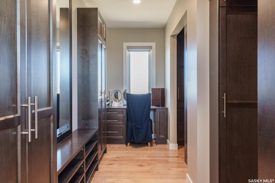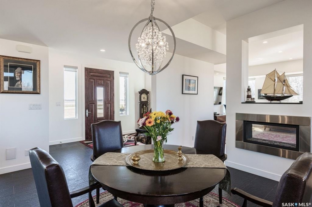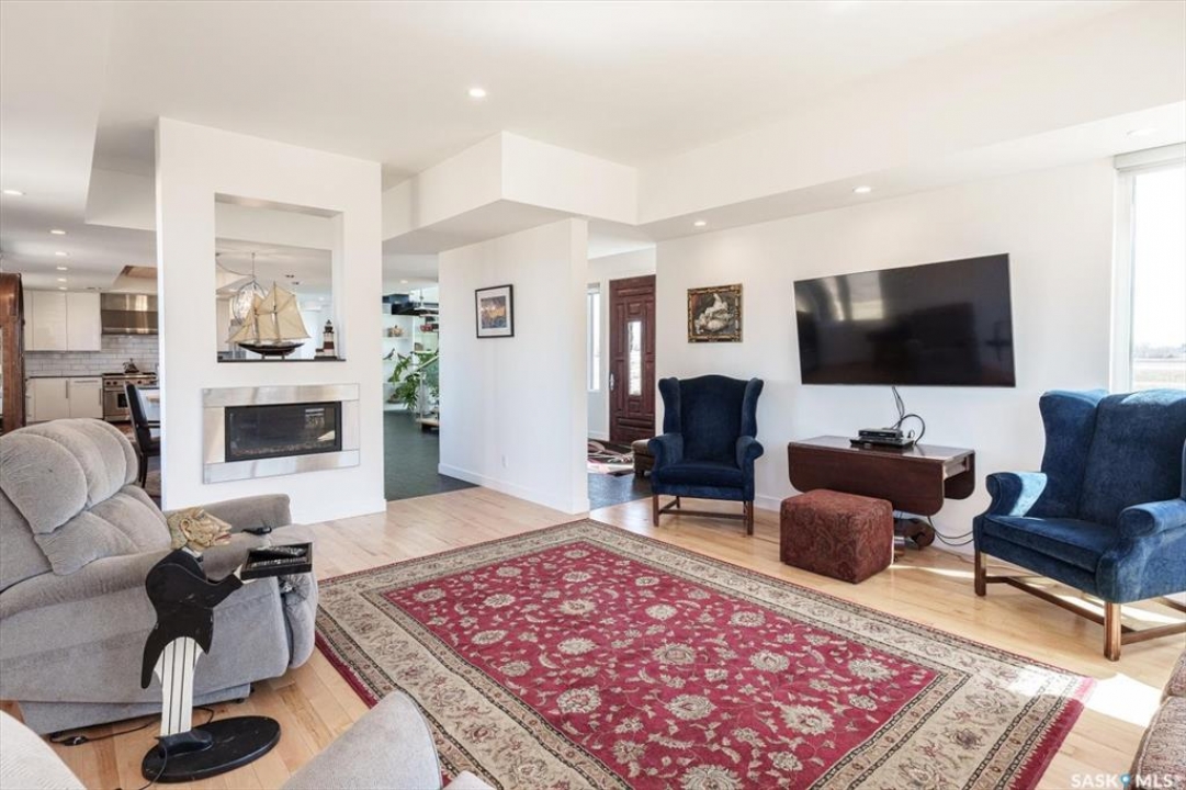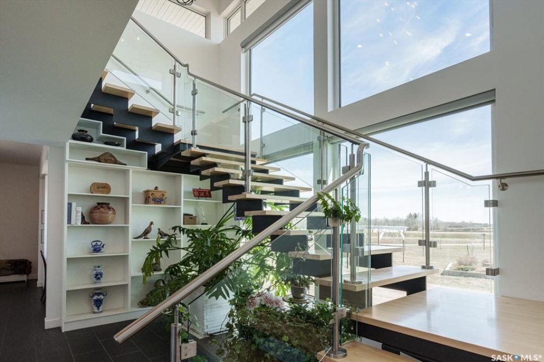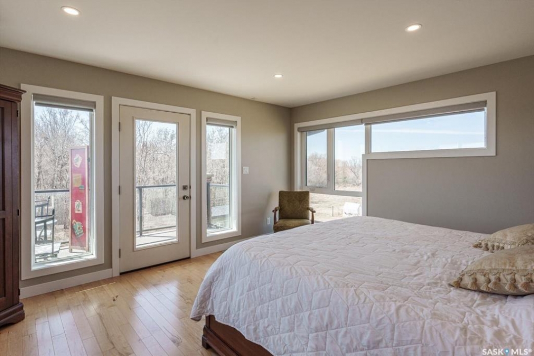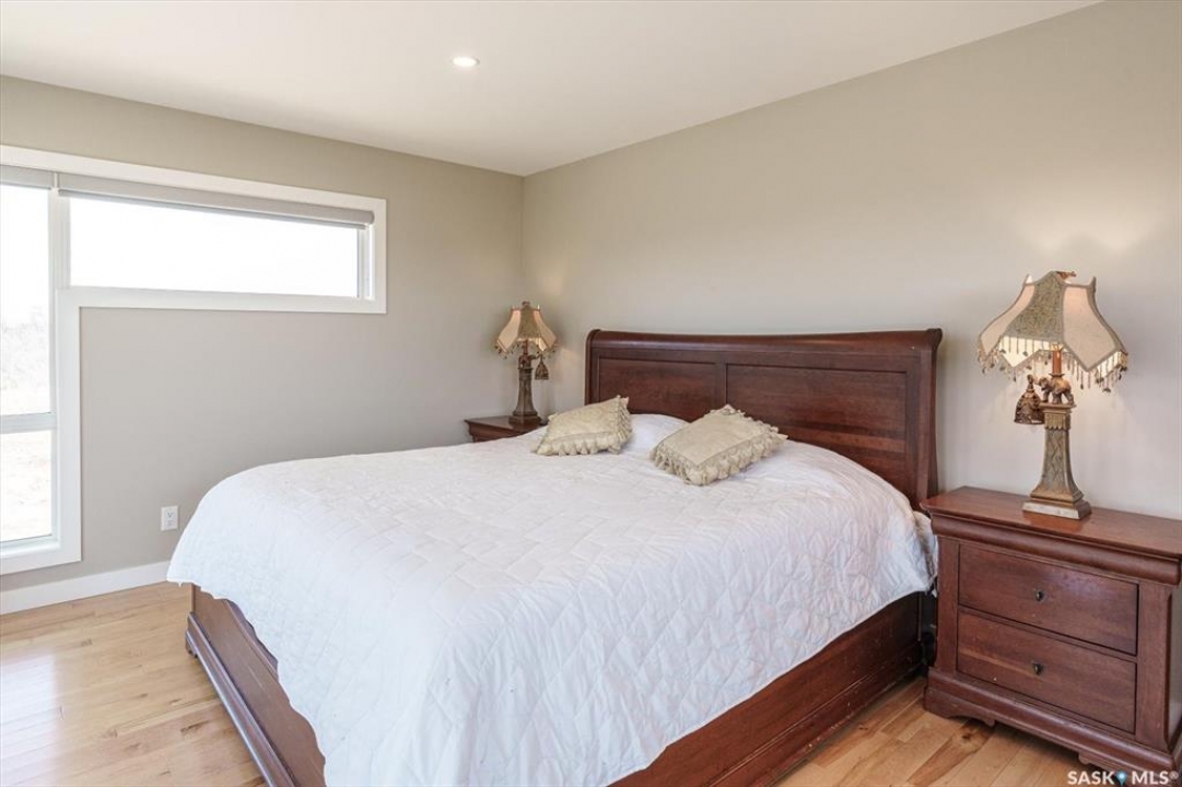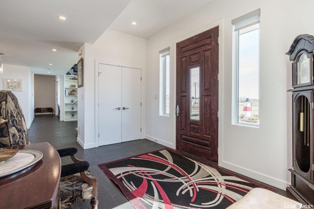 Modern acreage living just minutes from Saskatoon! Located on the edge of the city, this 68.9-acre property offers space, privacy, and future potential. Built in 2017, the 3,000 sq. ft. home features 3 bedrooms and 3 bathrooms. The main floor includes a gas fireplace, spacious kitchen with stainless steel appliances, and dining area opening to a stamped concrete patio with natural gas BBQ hookup and radiant heat. The second level offers a family room with wet bar and deck access, plus a primary suite with walk-in closet, ensuite, and private balcony. Additional features include two furnaces, two central A/C units, and heated crawl space. Heated double attached garage and heated RV/motorhome bay. Yard includes trees, garden area, and underground sprinklers. City water line, well, and holding tank. Located � mile off Hwy 219, under 10 minutes to Saskatoon amenities. Interior photos from a previous listing; property is tenant occupied.