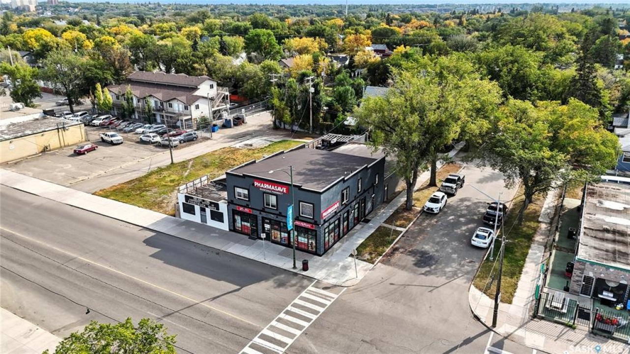 Rare, renovated commercial building for sale at 839 20th St, Saskatoon! Welcome to this fully leased and occupied profitable building with mixed commercial and residential use. This turn key building has gone through extensive recent renovations including but not limited to entire roof, exterior, fixtures, commercial exterior glass and windows, doors, heating, plumbing and mechanical systems. Mixed use offers: front main floor anchor pharmacy tenant with long standing lease in place, back establishment locked in long term lease and two 2nd floor suites rented as residential (with leases) Suites are charming and have 3 and 2 bedrooms, and individual in suite laundry. Don't miss out on this investment, currently providing a strong positive return!
