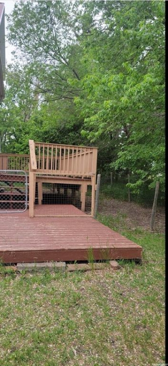 Outdoor: Deck, Firepit, Garden Area, Lawn Back, Lawn Front, Partially Fenced, Trees/shrubs