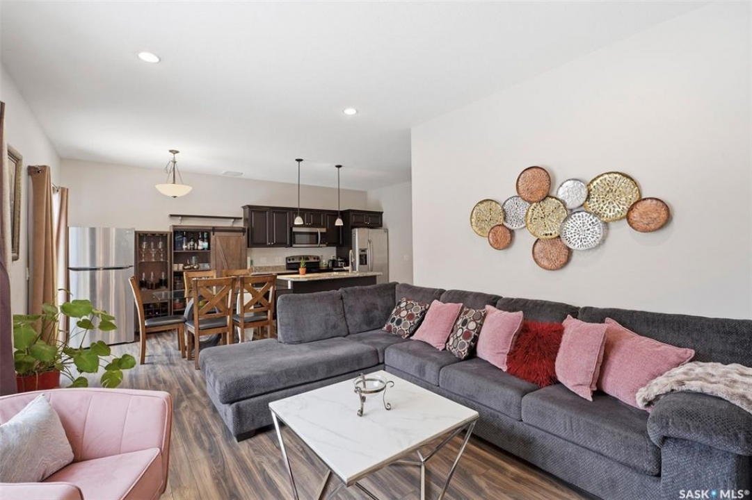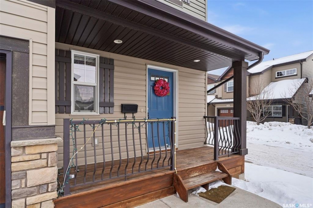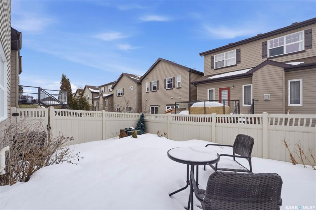 Experience relaxed community living in Little Tuscany, where the atmosphere feels more like a lakeside retreat than a typical city neighbourhood. A charming covered front porch welcomes you in an inviting space. Step inside to a bright foyer with convenient access to the insulated attached garage and private driveway, a practical feature during Saskatchewan winters. The main floor is designed for both comfort and entertaining, featuring an open-concept layout that seamlessly connects the kitchen, dining, and living areas. The kitchen stands out with espresso cabinetry, stylish countertop, a functional island while large windows in the living room bring in abundant natural light. From the dining area, garden doors open onto a sun-filled deck overlooking a private backyard complete with vinyl fence, patio space, garden beds - all with the tranquility of parkland behind. Upstairs, the primary suite offers a relaxing retreat with a walk-in closet, a spacious 4 piece ensuite & calming views. 2 additional bedrooms, a second full bathroom, and the convenience of upper-floor laundry make everyday living easier. The finished basement expands your living space with a stylish family room, a Den or Office Space & a Full Bath. Additional features include central AC & underground sprinklers. The Unit also grants you access to some wonderful Extra Amenities/Perks such as - GYM, Basketball Court & and a lounge with a Beautiful stone fireplace. With nearby shopping, scenic walking trails, and easy access to the lake, this home delivers comfort, privacy, and an exceptional lifestyle in one of Saskatoon's most unique communities. Call TODAY to Arrange a Viewing.