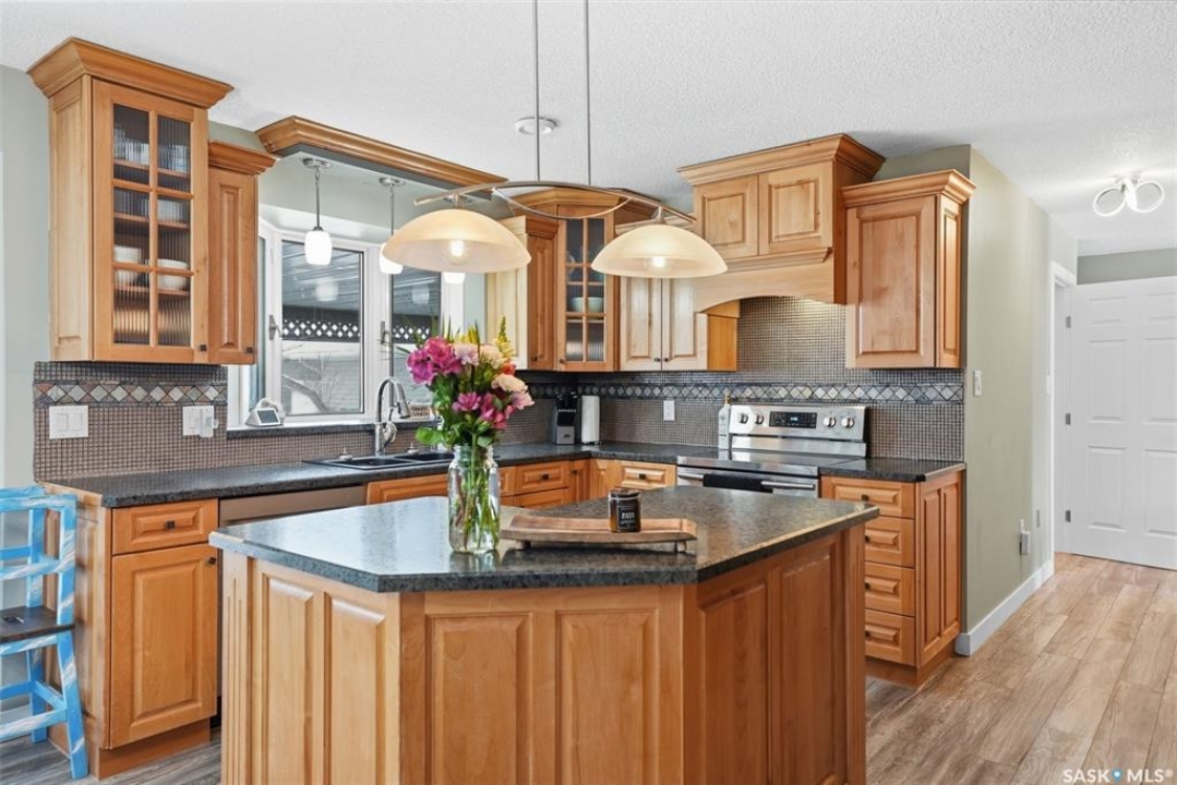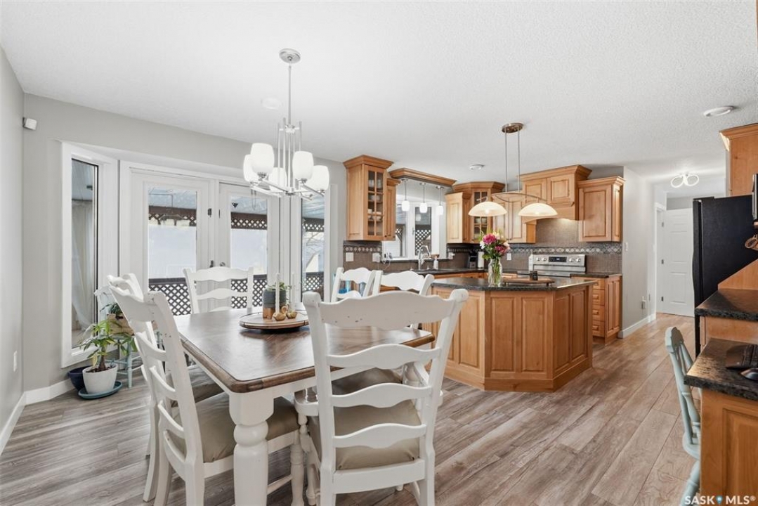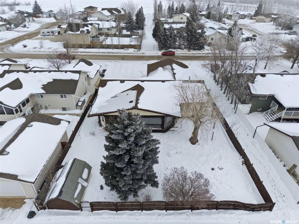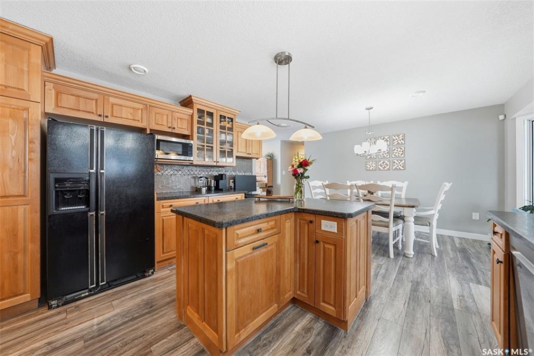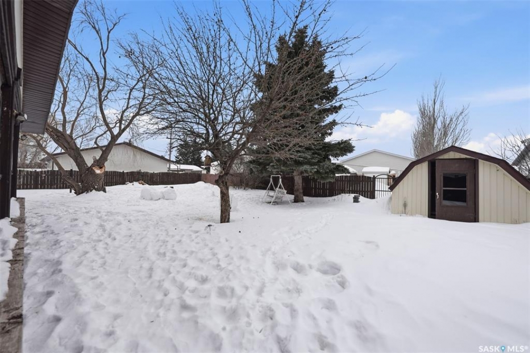 This sprawling bungalow ideally located in the busy town of Watrous has tons of updates! As you step in the front door, you'll notice the huge living room to the right, or the dining area with garden doors to the covered deck straight ahead. Huge north facing living room window offers tons of natural light with street view. Dining area flows into the kitchen, overlooking the back yard. Custom maple cabinetry offers tons of work space and storage, ideal for everyday family meals or entertaining. Down the hall you'll find the updated main bathroom with tile floor, the primary suite with 3 pc bath, walk in closet and bonus closet, and 2 more bedrooms. Vinyl plank flooring throughout the main floor along with updated doors, trims, and lighting make this a clean, bright space. Completing the main floor is the laundry/mud room. Basement is completely finished with family room area, games area, wet bar, hot tub (not in use), 3 pc bath, another bedroom and utility/storage. Front entry also accesses the full double garage with storage area and in floor heat. The covered/screened deck overlooks the fenced back yard, and is perfect for outdoor enjoyment - rain or shine! Mature yard has a firepit, garden area, fruit trees and a shed. Pathway access to 12th Ave (and sportsgrounds/swimming pool beyond) is adjacent to the house.Watrous is just a few minutes from the resort villag eof Manitou Beach, 1 hour to Saskatoon, and under 2 hours to Regina. It is also within 30 minutes of 3 potash mines, and 45 min to BHP Jansen. This town has full services, including a schools, rec facilities, health care, shopping, churches, restaurants/bars, and more. Call today to book your private viewing!
