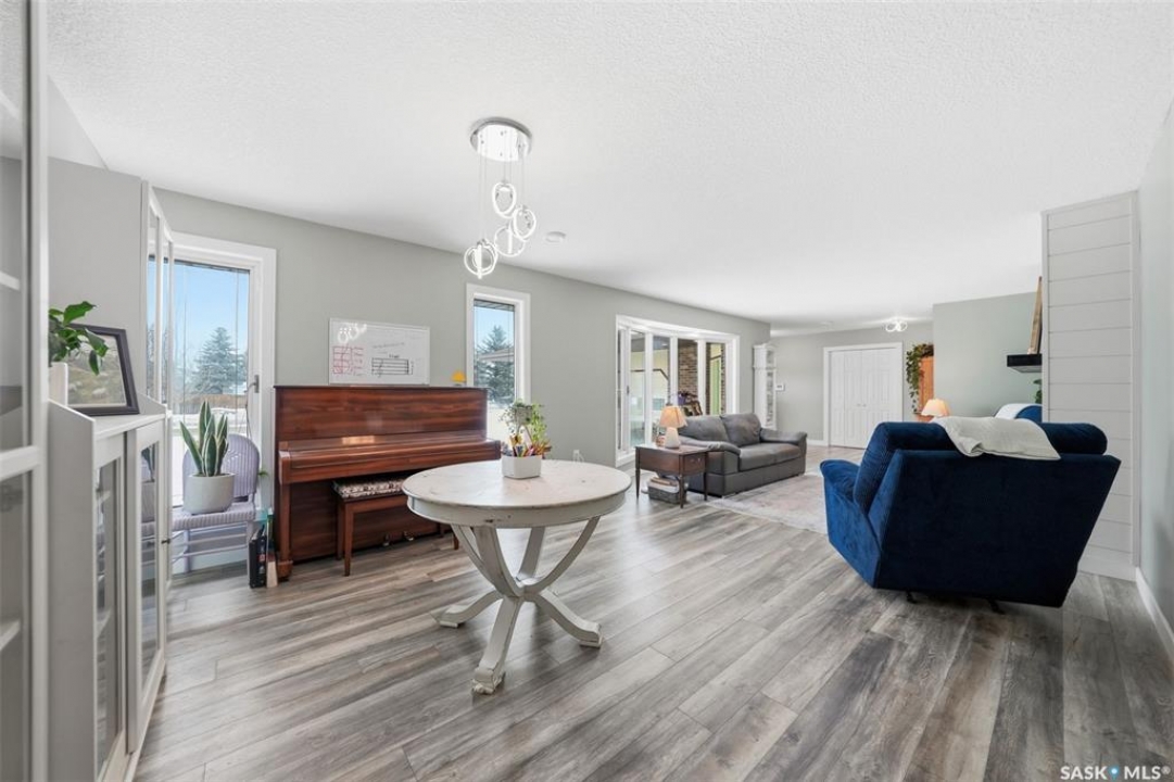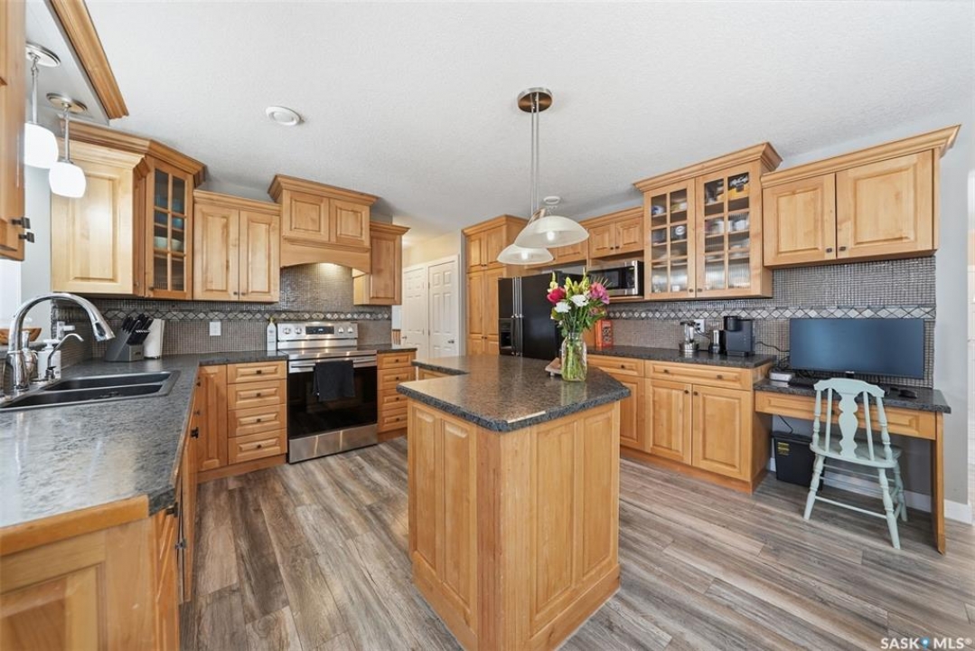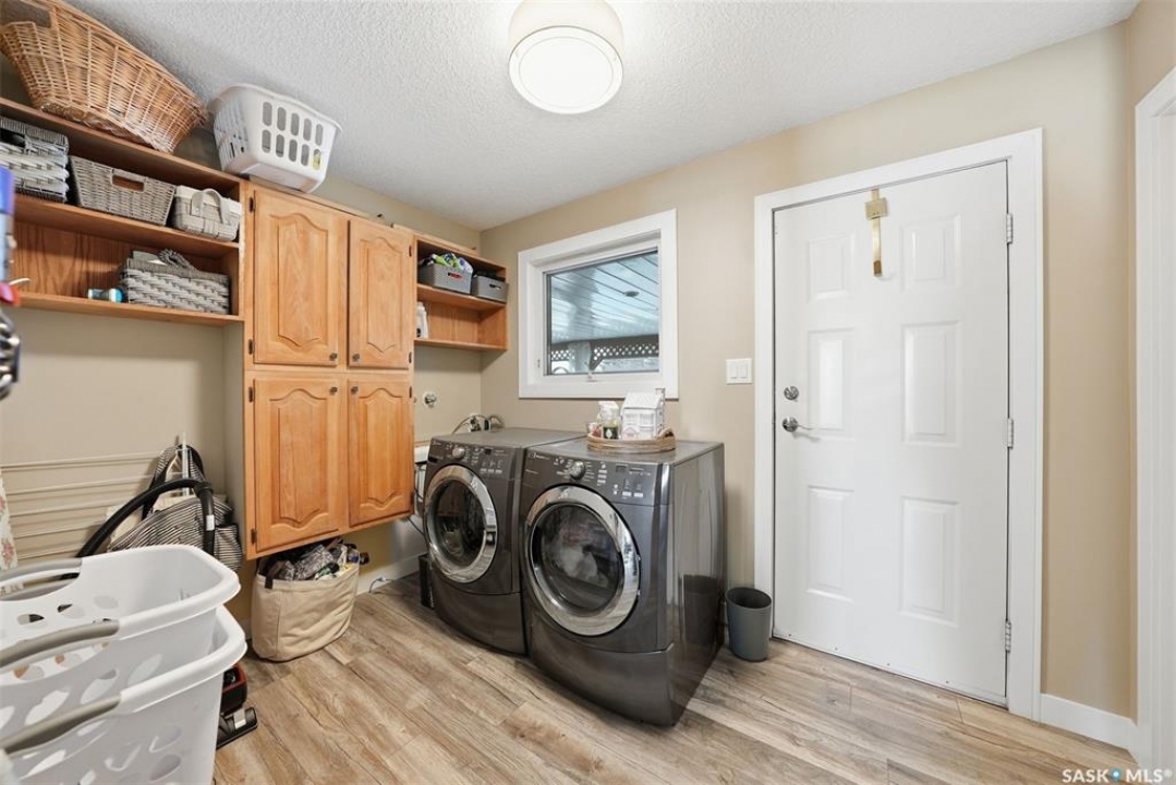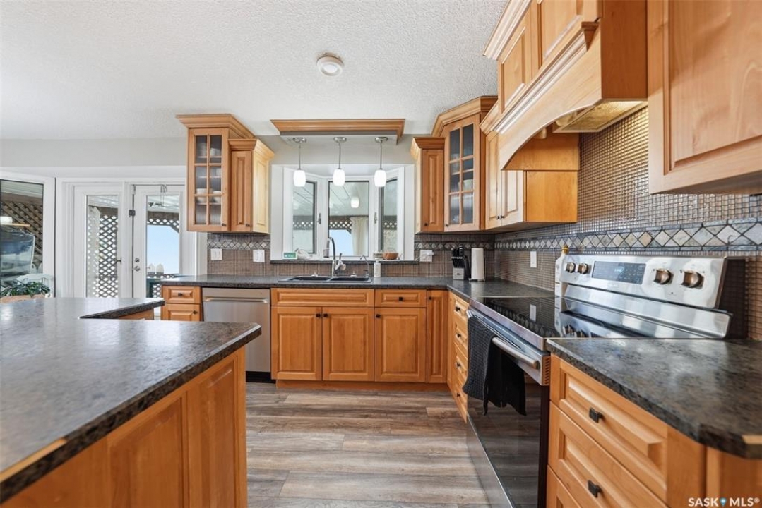 This sprawling bungalow ideally located in the busy town of Watrous has tons of updates! As you step in the front door, you'll notice the huge living room to the right, or the dining area with garden doors to the covered deck straight ahead. Huge north facing living room window offers tons of natural light with street view. Dining area flows into the kitchen, overlooking the back yard. Custom maple cabinetry offers tons of work space and storage, ideal for everyday family meals or entertaining. Down the hall you'll find the updated main bathroom with tile floor, the primary suite with 3 pc bath, walk in closet and bonus closet, and 2 more bedrooms. Vinyl plank flooring throughout the main floor along with updated doors, trims, and lighting make this a clean, bright space. Completing the main floor is the laundry/mud room. Basement is completely finished with family room area, games area, wet bar, hot tub (not in use), 3 pc bath, another bedroom and utility/storage. Front entry also accesses the full double garage with storage area and in floor heat. The covered/screened deck overlooks the fenced back yard, and is perfect for outdoor enjoyment - rain or shine! Mature yard has a firepit, garden area, fruit trees and a shed. Pathway access to 12th Ave (and sportsgrounds/swimming pool beyond) is adjacent to the house.Watrous is just a few minutes from the resort villag eof Manitou Beach, 1 hour to Saskatoon, and under 2 hours to Regina. It is also within 30 minutes of 3 potash mines, and 45 min to BHP Jansen. This town has full services, including a schools, rec facilities, health care, shopping, churches, restaurants/bars, and more. Call today to book your private viewing!