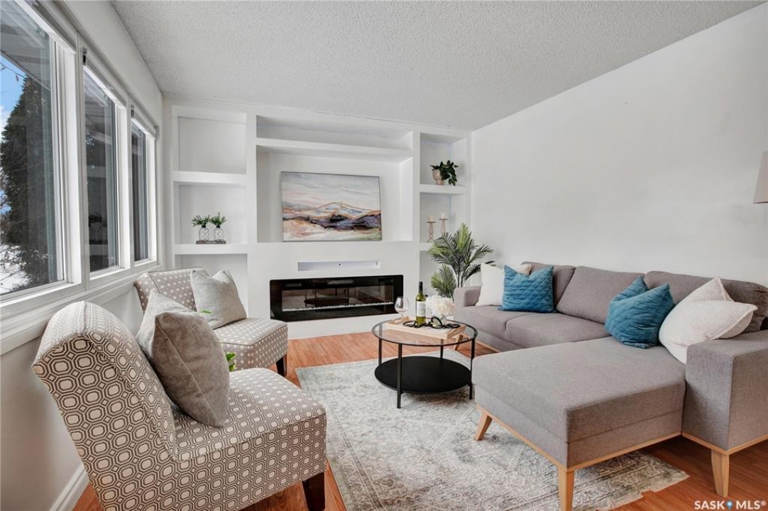 Welcome to this charming 864 sq ft bungalow featuring 3 bedrooms and 2 bathrooms, perfect for families or first-time buyers. The home offers convenient direct access to a spacious deck and nicely landscaped yard, ideal for relaxing or entertaining during the summer months. Enjoy modern comfort with a high-efficiency furnace and water heater, central air conditioning, and a cozy electric fireplace. The property also includes a single concrete driveway for easy parking. Step outside to a fully fenced, well-developed yard with a large deck—perfect for kids, pets, and outdoor gatherings. Located in a family-friendly area, the home offers beautiful park views from the front windows, and you can watch the kids walk to school right across the park. This move-in ready home combines comfort, convenience, and a great location. Don't miss out—this one won't last long!