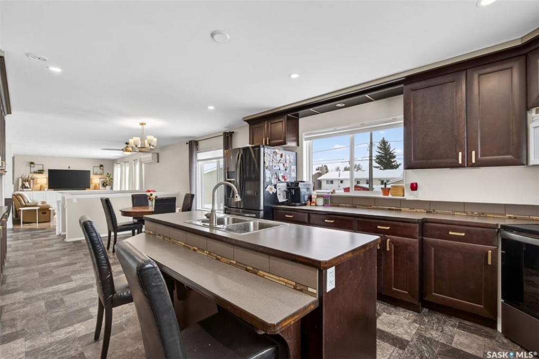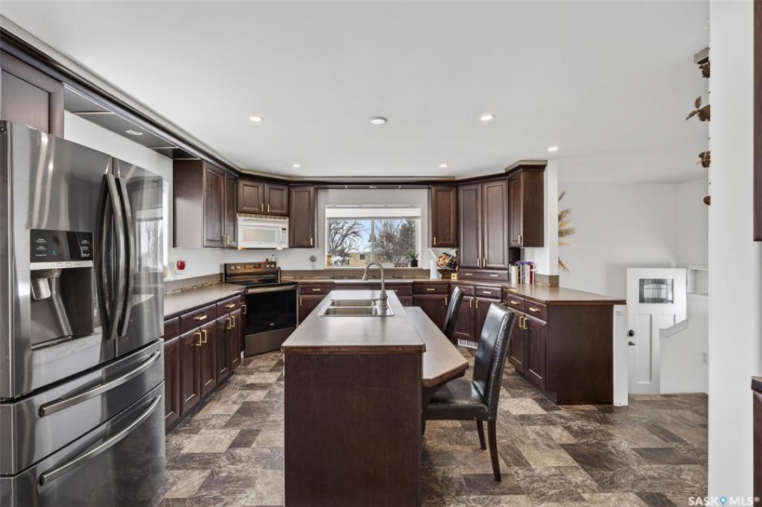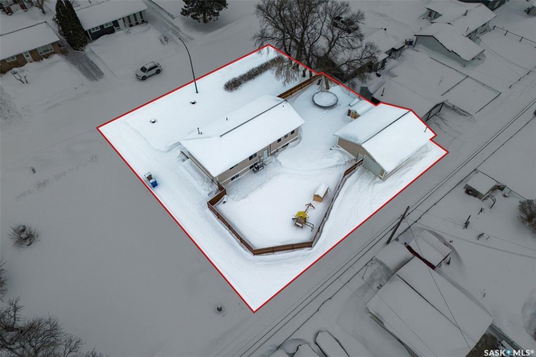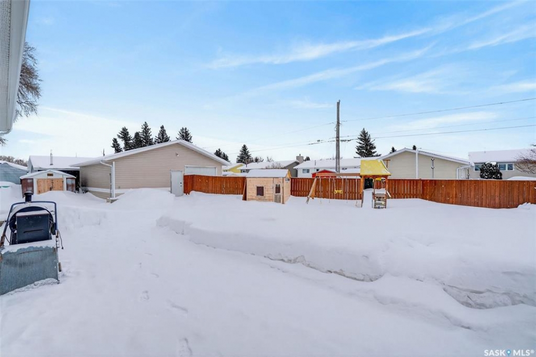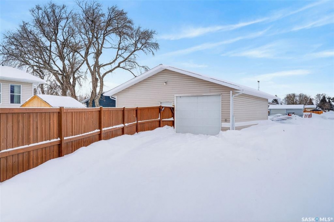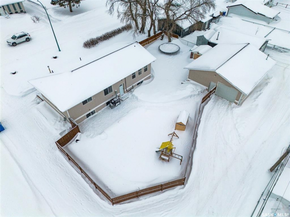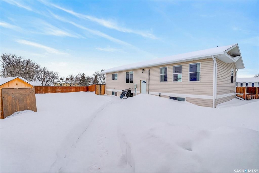 Can you have it all and live in town? Let me list the ways, this home sits on a HUGE lot 120'x110' with a 1200 sq.ft. bilevel that is move in ready with a one of a kind kitchen AND a 28' x 32' heated garage. Did I mention it's located near the edge of Melfort? I bet that checked many of your wants and needs! This property has a massive drive through driveway to the back alley. This bilevel home was moved on to a 2003 foundation, and was renovated at that time. The home features a kitchen that offers an oversized island, full set of appliances (including upright freezer) and a lot of cabinet storage throughout. The main floor offers two family rooms, with the dining room featuring built in cabinets to match the kitchen. The basement boasts a natural gas fireplace in the family room to enjoy with ample storage. There are three bedrooms, a den & three FULL bathrooms throughout the home! This home is jam packed with extras such as a wall mounted air conditioner (2020), fenced in backyard, air exchanger (2023), includes washer/dryer. The ambiance this home provides is comforting and welcoming with an open design on the main living area. The garage was built in 2010 and is set up to utilize through the year with storage and easy rear access. This property gives a great impression inside & out!