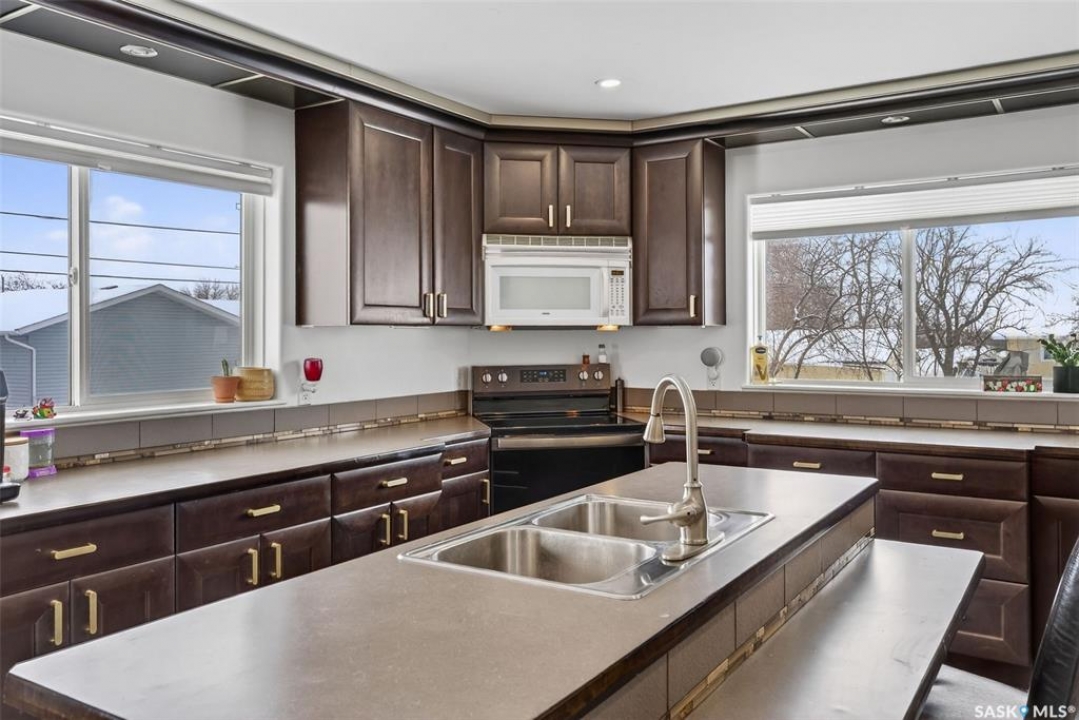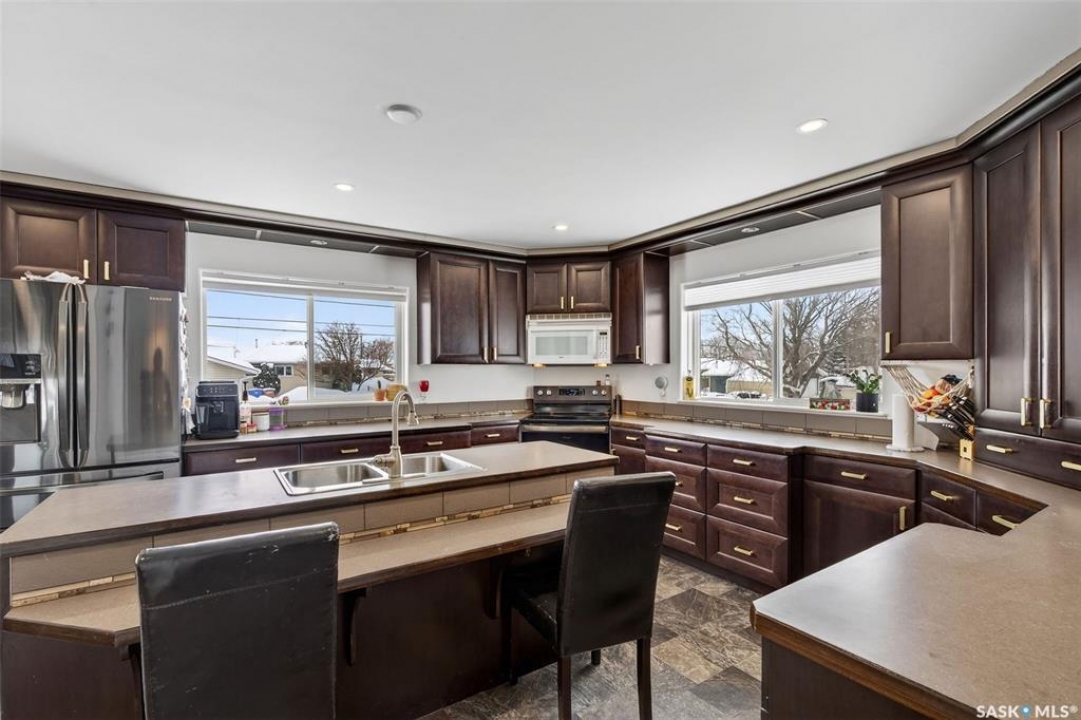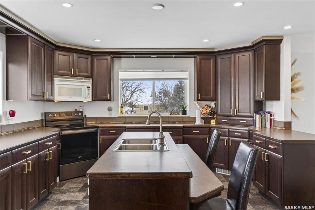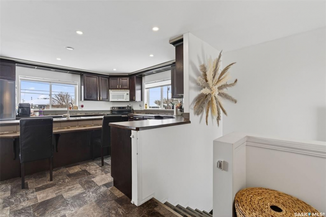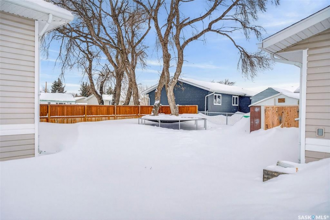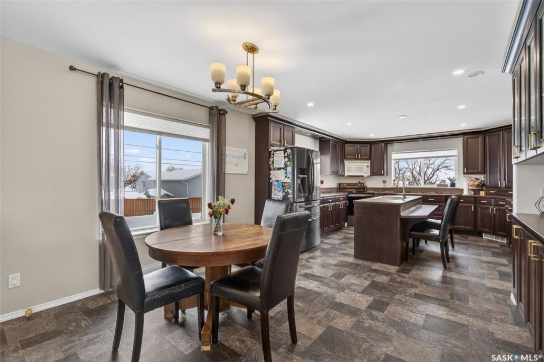 Can you have it all and live in town? Let me list the ways, this home sits on a HUGE lot 120'x110' with a 1200 sq.ft. bilevel that is move in ready with a one of a kind kitchen AND a 28' x 32' heated garage. Did I mention it's located near the edge of Melfort? I bet that checked many of your wants and needs! This property has a massive drive through driveway to the back alley. This bilevel home was moved on to a 2003 foundation, and was renovated at that time. The home features a kitchen that offers an oversized island, full set of appliances (including upright freezer) and a lot of cabinet storage throughout. The main floor offers two family rooms, with the dining room featuring built in cabinets to match the kitchen. The basement boasts a natural gas fireplace in the family room to enjoy with ample storage. There are three bedrooms, a den & three FULL bathrooms throughout the home! This home is jam packed with extras such as a wall mounted air conditioner (2020), fenced in backyard, air exchanger (2023), includes washer/dryer. The ambiance this home provides is comforting and welcoming with an open design on the main living area. The garage was built in 2010 and is set up to utilize through the year with storage and easy rear access. This property gives a great impression inside & out!