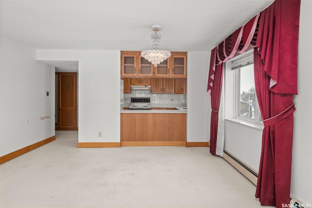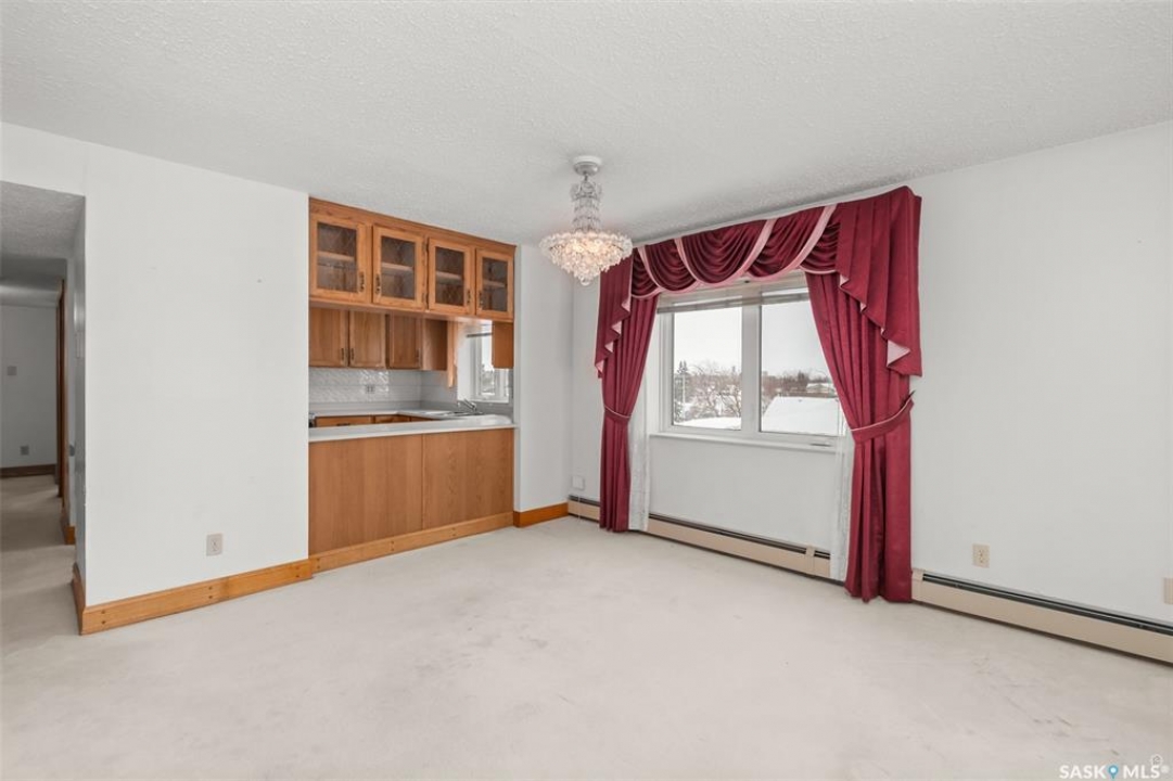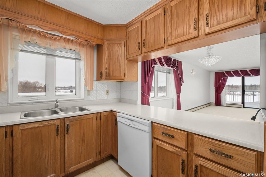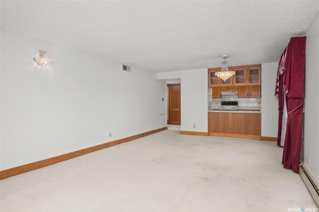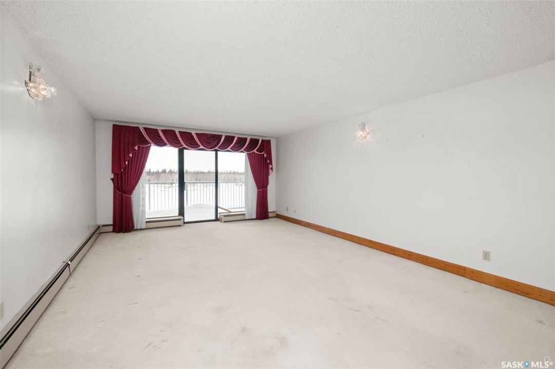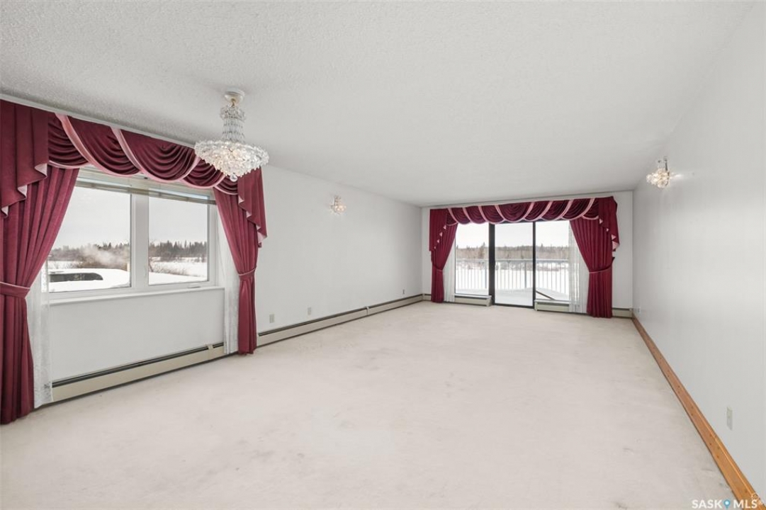 Spacious river front condo located in the Riviera condominium complex. This fourth floor, northwest corner unit provides an open concept floor plan with an abundance of natural light and a panoramic view of the North Saskatchewan River. The 1216 square foot unit offers a bright living room and dining area with Swarovski crystal chandelier and sconces, U-shaped oak kitchen, two bedrooms, 1 � bathrooms, and a storage/laundry room. There are two adjacent garage parking stalls included which are located just steps away from the front entrance. This unit does require updating/repairs and is being sold in “as is” condition. The unit has been unoccupied for approximately 5 years so the Seller is unsure of the condition of any of the appliances and/or fixtures. Don't miss out on this excellent opportunity to make this condo your own!