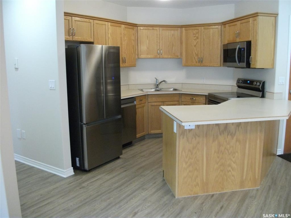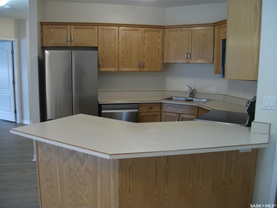 Very well maintained 1033 sq. ft. condo on the 11th floor. Newly painted. New vinyl plank flooring throughout. Kitchen Oak cabinets have been refreshed. New kitchen appliances fridge, stove, dishwasher and microwave. New kitchen sink. Great floor plan with 2 spacious bedrooms and two 4 piece bathrooms. In suite laundry and storage. Very quite due to concrete construction with no noise transfer between units. Move-in ready. Underground parking is available at a monthly fee. Please confirm availability.