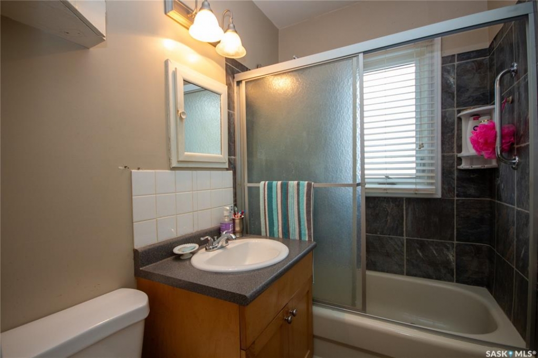 Opportunity knocks with this well cared for home in North Battleford! Perfect for 1st time home buyers, couples wanting to down-size or investors. With a total of 5 bedrooms, 2 full baths and 2 kitchens this 972sq ft home has enough space for comfortable living! The main floor is bright and welcoming with some south facing windows in the living room and dining room. The kitchen is spacious enough for all your culinary needs. There is a 4pc bath and all 3 bedrooms are a good size with 2 of the being treated to updated windows. Downstairs there is an open utility room with the washer/dryer, furnace and storage area. There are 2 power meters, one for upstairs and one for the basement. The non-regulation suite has large windows so it doesn't feel like a basement. A lovely oak kitchen comes with a fridge & stove. A large separate dining room has lots of room for entertaining & a living room perfect to relax in after a long day. The 2 bedrooms are both a generous size and to complete the basement there is a 4pc bathroom. Most of the basement windows have been updated, the shingles were new approx. 7yrs ago and the water heater was new last year. The yard is fully fenced and has some garden areas for your green thumb. There's a cherry tree and small red current bush too. The garage is 20x22 with an electric overhead door and space for a work area in the front. There is off street parking on the concrete driveway as well. Sounds perfect for you? Call today to book your showing!