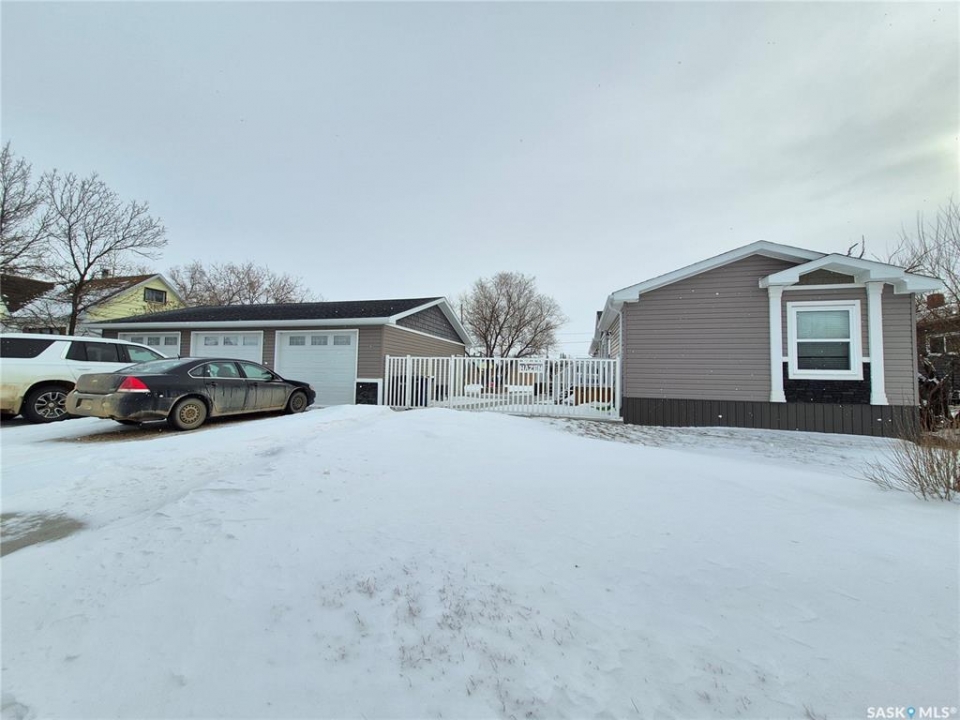 Welcome to this well appointed 3 bedroom, 2 full bathroom home located on a quiet street in Bengough, offering spacious living areas and a fantastic yard for the whole family to enjoy. Step inside to bright, open living spaces designed for comfort and everyday living. The home features a dedicated dining room and a well laid out kitchen with plenty of cabinet and counter space, a large sit-up island, corner pantry, and a stainless steel appliance package—perfect for cooking, entertaining, and family gatherings. The primary bedroom is generously sized, complete with a large walk in closet and a private 4 piece ensuite featuring a corner soaker tub and stand alone shower, creating a relaxing retreat at the end of the day. Outside, you'll find a massive 28' x 40' triple car garage that is fully insulated with 9' walls and oversized 8' x 10' garage doors. Power has been run to the garage and is ready for installation. The large, fully fenced yard offers plenty of space for kids and pets to run and play, and includes a big deck and patio area—perfect for summer BBQs and outdoor entertaining. Additional features include central air installed in 2022, and natural gas access conveniently available from the back alley. This property offers space, functionality, and small-town living at its best, and a great opportunity to enjoy life in the welcoming community of Bengough. Call for your tour today!