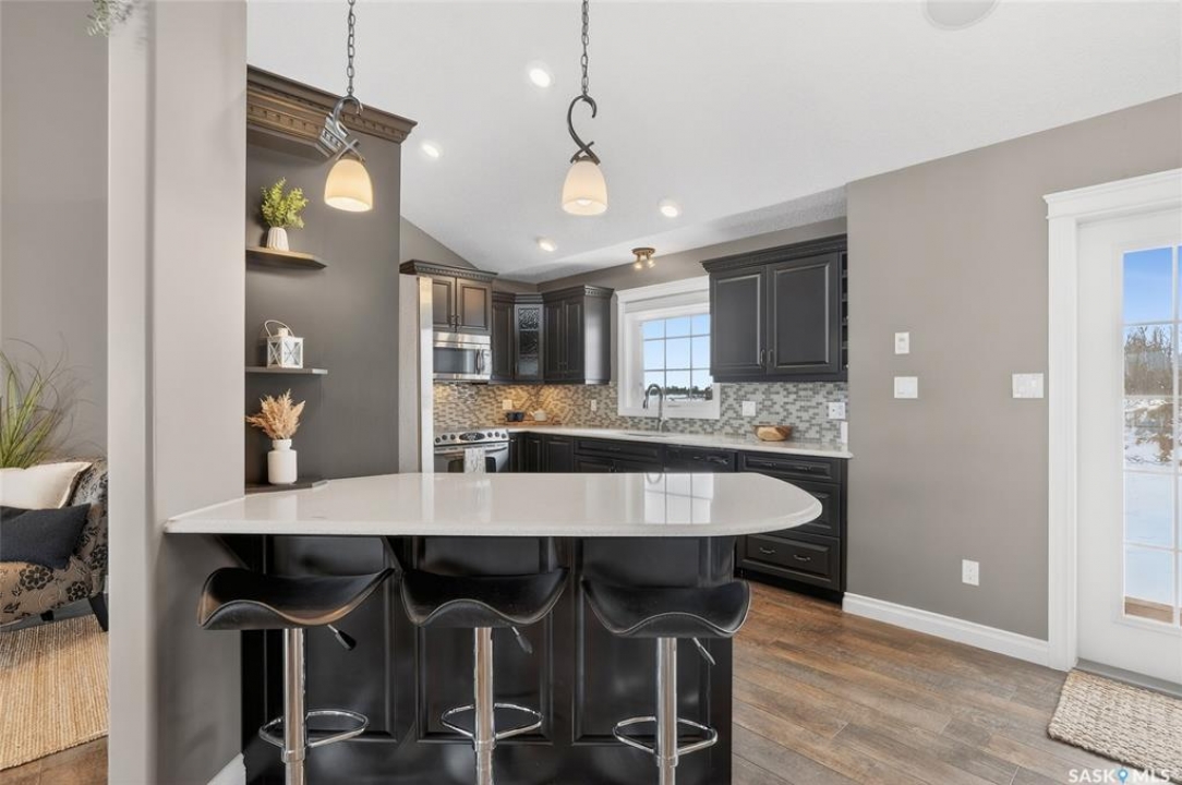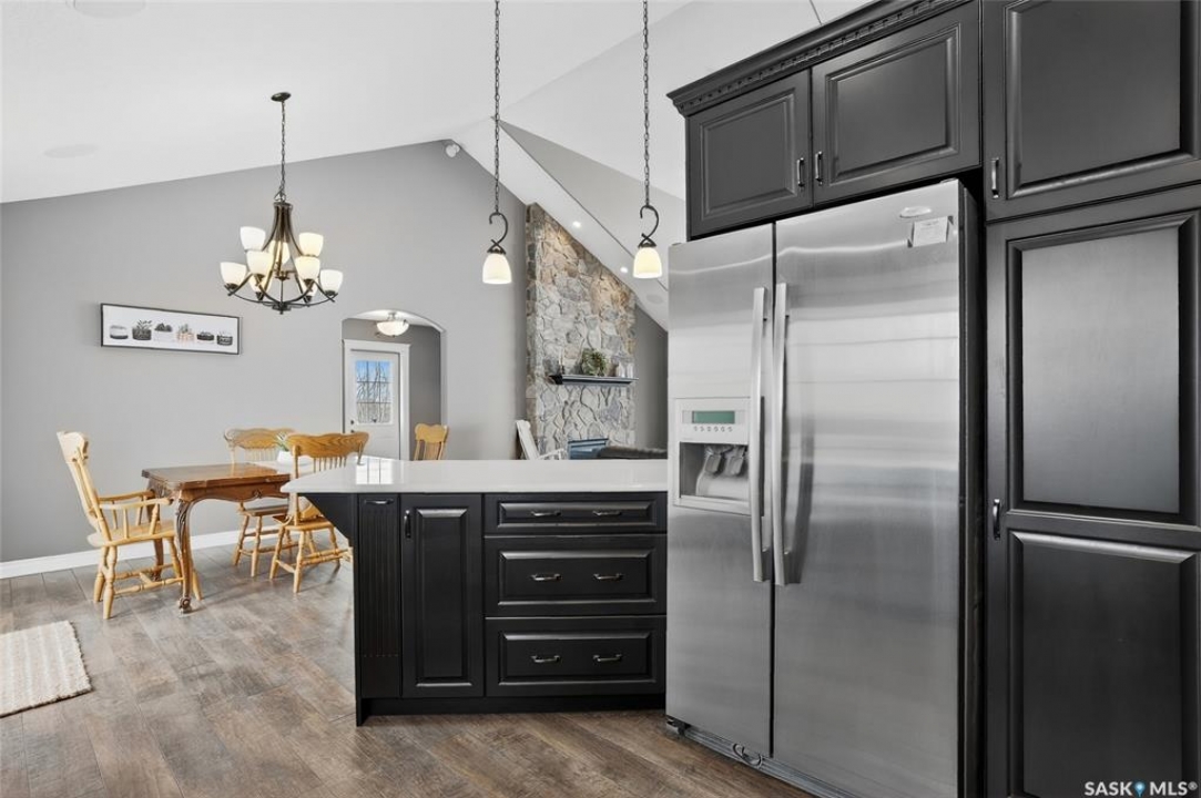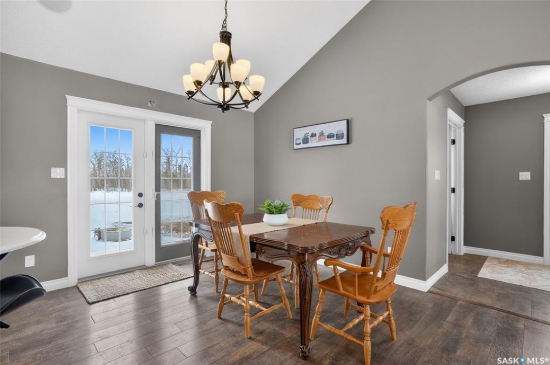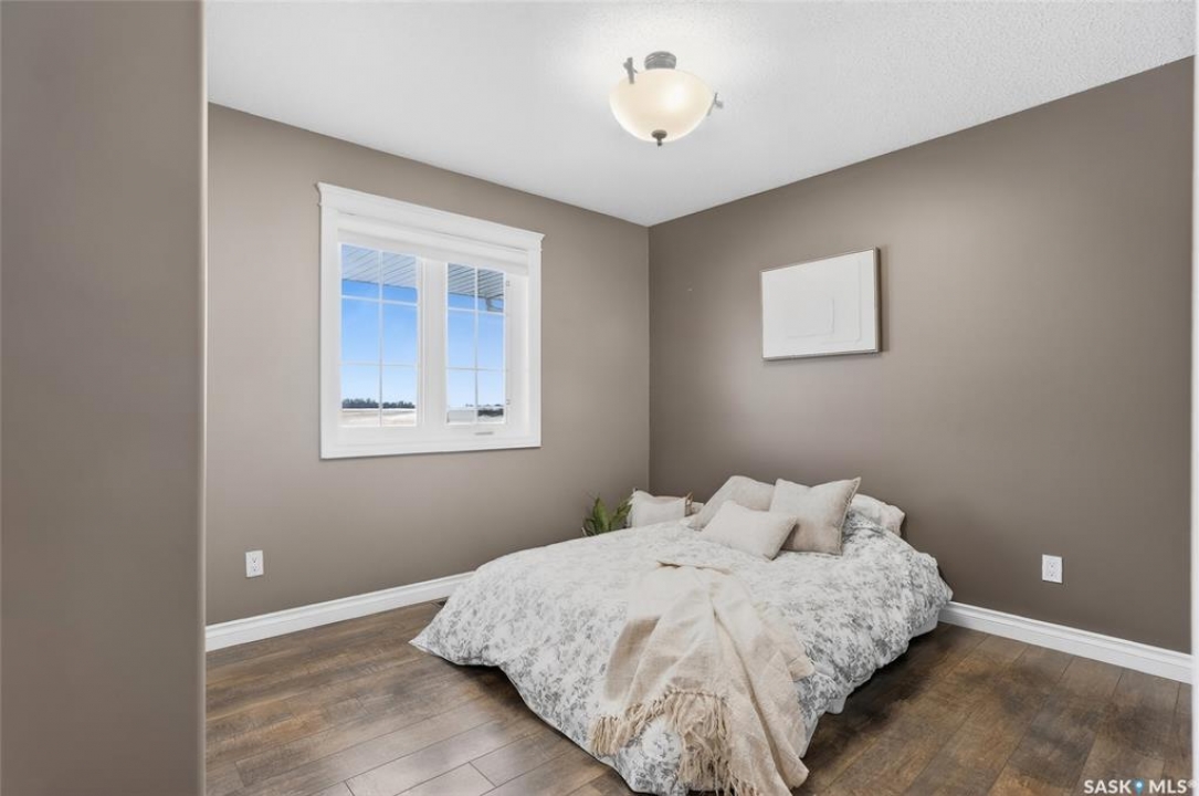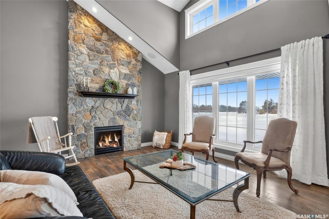 Welcome to this beautiful 2014 Cape Cod style bungalow situated on 10 scenic acres just minutes from Saskatoon, Dalmeny, and Martensville, offering the perfect balance of peaceful acreage living and convenient access to the city with nearly all pavement via Highway 16. This former Pinnacle Homes show home features 1,618 sq ft of thoughtfully designed living space with soaring vaulted ceilings, large dormer windows, and a stunning floor to ceiling stone fireplace that anchors the bright, open living area. The spacious kitchen is ideal for entertaining with a peninsula island, quartz countertops, tile backsplash, stainless steel appliances, and a corner pantry with excellent storage, while durable laminate and tile flooring run throughout the home with no carpet anywhere. The layout includes three bedrooms and a large mudroom that could easily be reconfigured by relocating laundry to the adjacent 3-piece bathroom. A 4-foot crawl space basement provides abundant usable storage, and outside you'll find a wraparound deck overlooking the property, with railing included should the new owner wish to install it, though the deck sits less than two feet from the ground. The 10-acre parcel offers a great mix of mature trees and open pasture with subdivision currently in process, a well with outdoor hydrant and tap, and the home currently supplied by a large cistern with the option to switch to the well if desired. The home is heated by propane with very low annual heating costs, and buyers also have the option to incorporate a dream garage into their mortgage through a purchase-plus-improvements program, making this a rare opportunity to own a flexible, beautifully designed acreage property with endless possibilities just minutes from the city! Welcome to your dream prairie acreage!