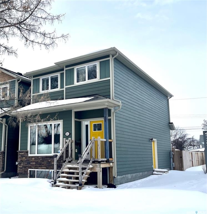 Welcome to 1411 2nd Ave N in the Kelsey/Woodlawn area where birds chirp even in the winter time! Bright & inviting 2 story semi-detached home with 3 spacious bedrooms and an open-concert main floor! It all starts with the gorgeous yellow doors - sure to make you smile and feel welcomed! Perfect for everyday living and entertaining. Enjoy a fully fenced back yard and nice sized deck with room for a BBQ and lounger - perfect for kids, pets & summer entertaining, powered parking spaces and just the right amount of lawn! All of this located in a quiet, family-friendly neighborhood. Basement has been roughed in and ready for your personal touch.