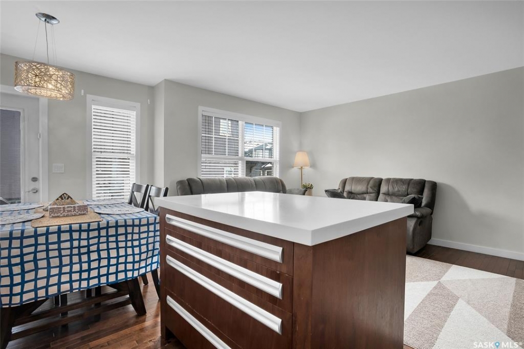 Welcome to 1303 Paton Crescent #313, located in the highly desirable Willowgrove neighborhood. This beautifully maintained 1,245 sq. ft. townhouse offers 3 bedrooms, 3 bathrooms, and the convenience of an attached garage. This gorgeous east-facing unit is located at the quiet back end of the complex, overlooking beautiful green space and open fields, offering peaceful views and added privacy. The open-concept main floor features maple hardwood flooring throughout the living area and large windows that fill the space with natural light. The modern kitchen is equipped with stainless steel appliances, quartz countertops, walnut doors and trim, and a convenient eat-up island, making it perfect for entertaining. The dining area opens through patio doors to your private concrete patio, ideal for relaxing or enjoying summer evenings. Upstairs, you'll find three spacious bedrooms, including a large primary bedroom with a walk-in closet. A full family bathroom serves all three bedrooms. The fully finished basement adds even more living space with a generous family room, full bathroom, and a dedicated laundry area. Additional recent upgrades include a humidifier and water softener, providing extra comfort and convenience for everyday living. Property is minutes away from Willowgrove School, Holy Family Catholic School, and the convenient shopping and services at University Heights Square, with easy access to parks, amenities, and everyday essentials. Don't miss this opportunity to own a fantastic townhouse in a thriving community!