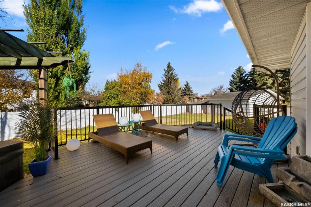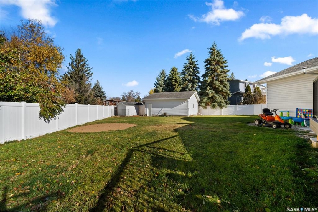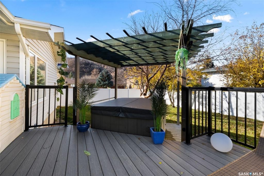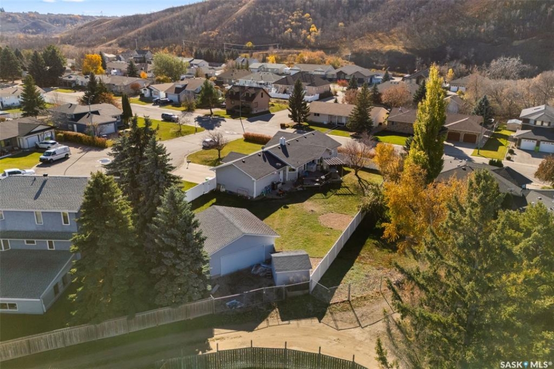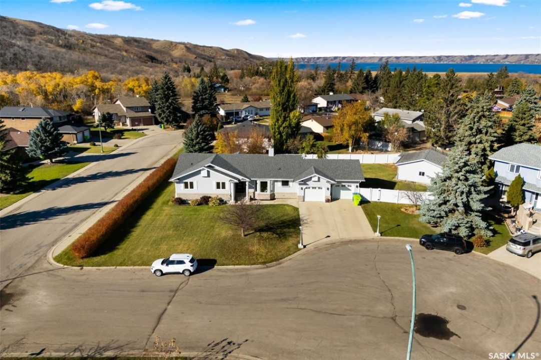 Rare quiet bay location with beautiful valley hill views! Nestled on a huge fully fenced lot, this extensively updated bungalow offers over 1,700 sq. ft. on the main level plus a fully developed basement, delivering exceptional space, comfort, and modern style in one of the valley's most desirable settings. The bright open-concept main floor features a stunning renovated kitchen with custom white cabinetry, dark quartz countertops, a large island, and new stainless-steel appliances. The inviting living room is centered around a cozy gas fireplace and flows seamlessly to a large composite deck with hot tub, the perfect place to relax or entertain while taking in the peaceful valley surroundings. A spacious family room provides even more room to gather and unwind. The main floor offers a large primary bedroom with walk-in closet, two additional bedrooms, and both a four-piece and three-piece bathroom. Downstairs, the fully finished basement expands your living space with two more bedrooms, a large family room, office area, bathroom, laundry, and abundant storage, making it ideal for families, guests, or work-from-home flexibility. A roomy mudroom connects to the heated double attached garage with oversized bays (13x28 and 13x24), while an additional double detached garage provides exceptional space for vehicles, toys, a workshop, or extra storage. Outside, enjoy the beautifully landscaped yard featuring PVC fencing, underground sprinklers, and plenty of room to play or entertain. Recent updates include windows, doors, quartz countertops, flooring, paint, lighting, appliances, water heater, water softener, fencing, and composite decking, making this home truly move-in ready. Homes with this much space, parking, and a premium quiet bay location with valley views rarely come available. Book your private showing today!
