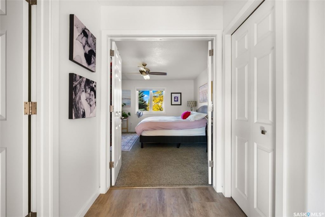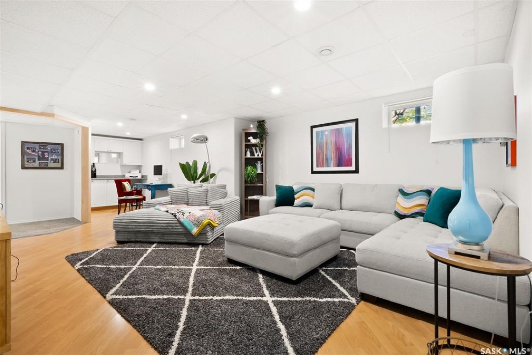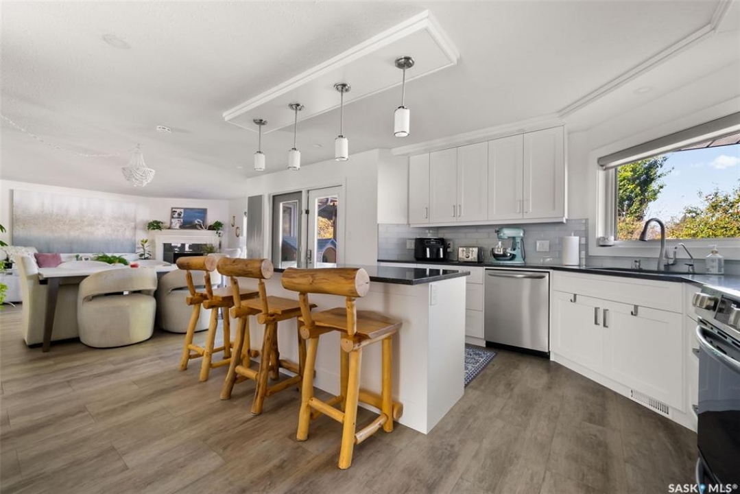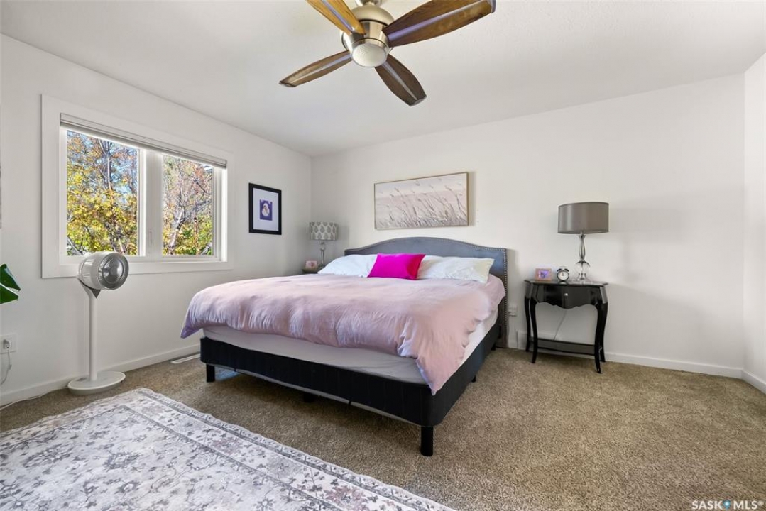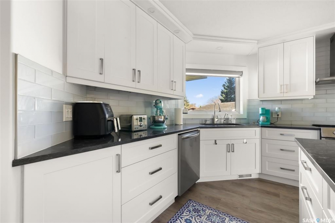 Rare quiet bay location with beautiful valley hill views! Nestled on a huge fully fenced lot, this extensively updated bungalow offers over 1,700 sq. ft. on the main level plus a fully developed basement, delivering exceptional space, comfort, and modern style in one of the valley's most desirable settings. The bright open-concept main floor features a stunning renovated kitchen with custom white cabinetry, dark quartz countertops, a large island, and new stainless-steel appliances. The inviting living room is centered around a cozy gas fireplace and flows seamlessly to a large composite deck with hot tub, the perfect place to relax or entertain while taking in the peaceful valley surroundings. A spacious family room provides even more room to gather and unwind. The main floor offers a large primary bedroom with walk-in closet, two additional bedrooms, and both a four-piece and three-piece bathroom. Downstairs, the fully finished basement expands your living space with two more bedrooms, a large family room, office area, bathroom, laundry, and abundant storage, making it ideal for families, guests, or work-from-home flexibility. A roomy mudroom connects to the heated double attached garage with oversized bays (13x28 and 13x24), while an additional double detached garage provides exceptional space for vehicles, toys, a workshop, or extra storage. Outside, enjoy the beautifully landscaped yard featuring PVC fencing, underground sprinklers, and plenty of room to play or entertain. Recent updates include windows, doors, quartz countertops, flooring, paint, lighting, appliances, water heater, water softener, fencing, and composite decking, making this home truly move-in ready. Homes with this much space, parking, and a premium quiet bay location with valley views rarely come available. Book your private showing today!
