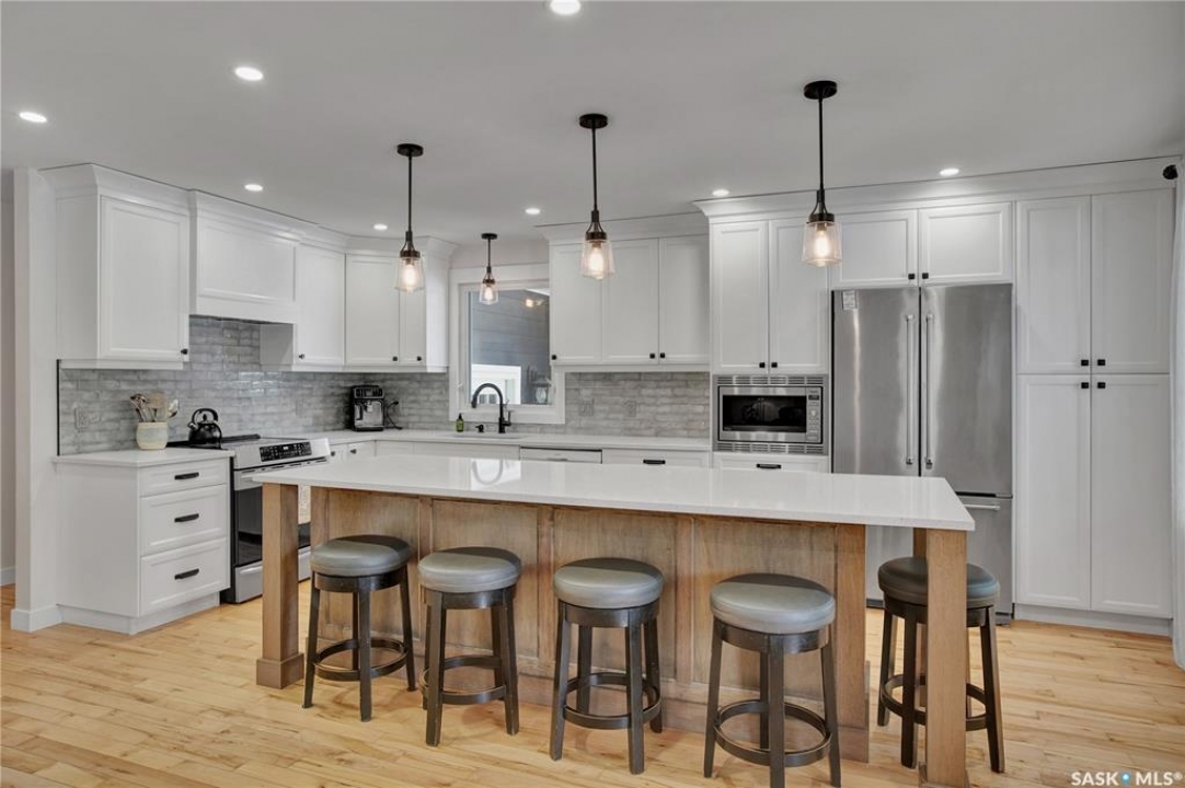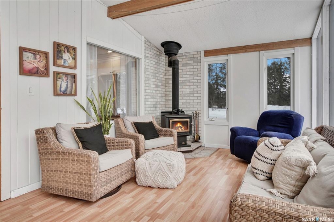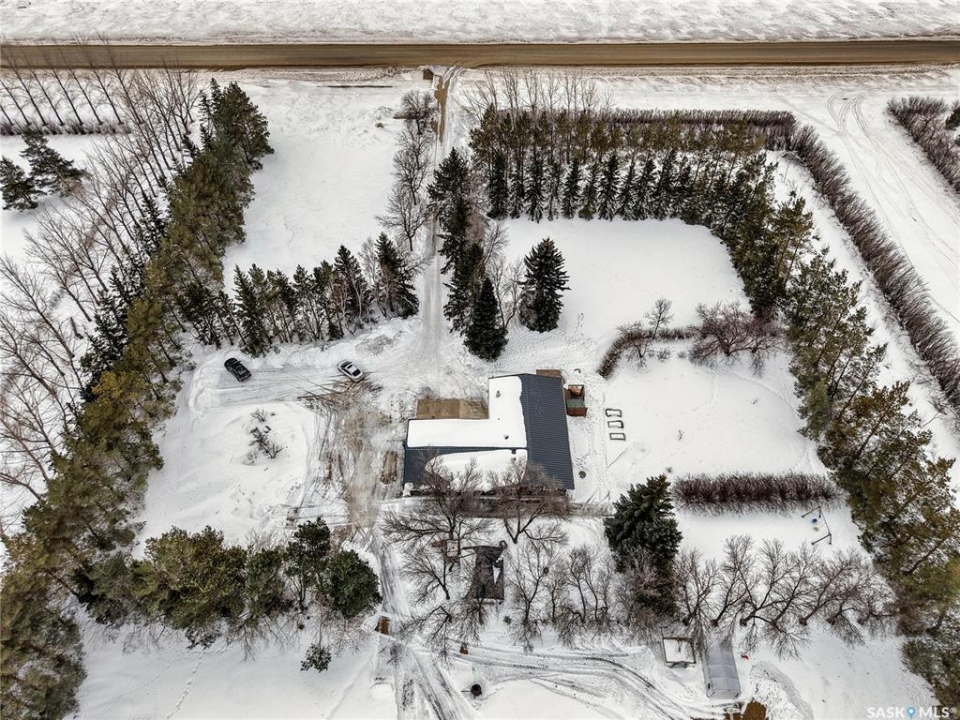 It's not often you find an acreage with all 4 of the must have “wants”: an excellent location, a completely renovated home, and services like natural gas, city water and good internet service. But this property checks all four boxes. Located just 1.5 km east of Osler toward the river, this 26.95-acre property offers a peaceful escape from the hustle and bustle. As you arrive, a scenic, tree-lined driveway welcomes you in, while the mature shelterbelt surrounding the home provides both privacy and protection from prairie winds. Inside, you're greeted by a spacious mudroom with built-in cabinetry and direct access to the oversized 25 x 27 heated garage, perfect for keeping everyday life organized. In 2021, the main floor was completely renovated, featuring a brand-new custom kitchen with stone countertops, plenty of storage, and generous island seating, making it an ideal space for gathering with family and friends. One of the true highlights of the home is the front sunroom, where you can soak in the warmth of the southern exposure all winter long. In the evening, step outside to the hot tub and enjoy the northern lights overhead. With three bedrooms on the main floor and a fourth in the basement, there's plenty of space for a growing family or visiting guests. There is vast pasture land surrounding the property great for horses, leaving the yard site private, manageable, and beautifully contained. Recent updates include the furnace, water heater, tin roof, windows, flooring, and carpets, making this home truly move-in ready.