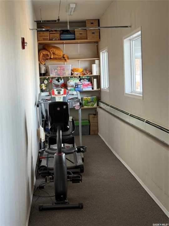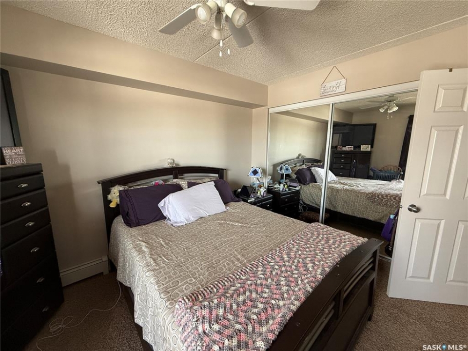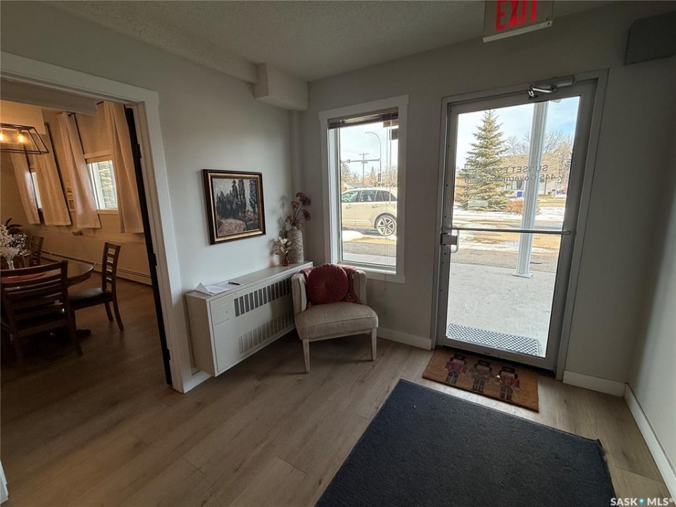 Fantastic 2 bedroom, 1 bathroom condo located on the second floor with desirable west-facing exposure! This bright and inviting unit offers a spacious open-concept layout with a cozy living room, room for a dining table, and a functional kitchen featuring plenty of cabinet space. One of the standout features is the spacious in-suite laundry room with a spot for a freezer and additional storage, plus multiple storage closets throughout the unit, giving you exceptional room to stay organized. Step outside to the generous west-facing balcony, the perfect spot to relax and enjoy the evening sun, complete with its own storage closet. The building offers secure access with an intercom system, elevator service, and one assigned parking stall in the heated main-floor garage. You'll also enjoy the beautifully updated lobby and common room, ideal for hosting visitors or family gatherings. This well-established building is known for its strong sense of community and many long-term residents, reflecting true pride of ownership. Moderate condo fees include heat and water, and there is ample visitor parking available in the exterior lot. A fantastic opportunity for comfortable, low-maintenance living in a welcoming and well-cared-for building!