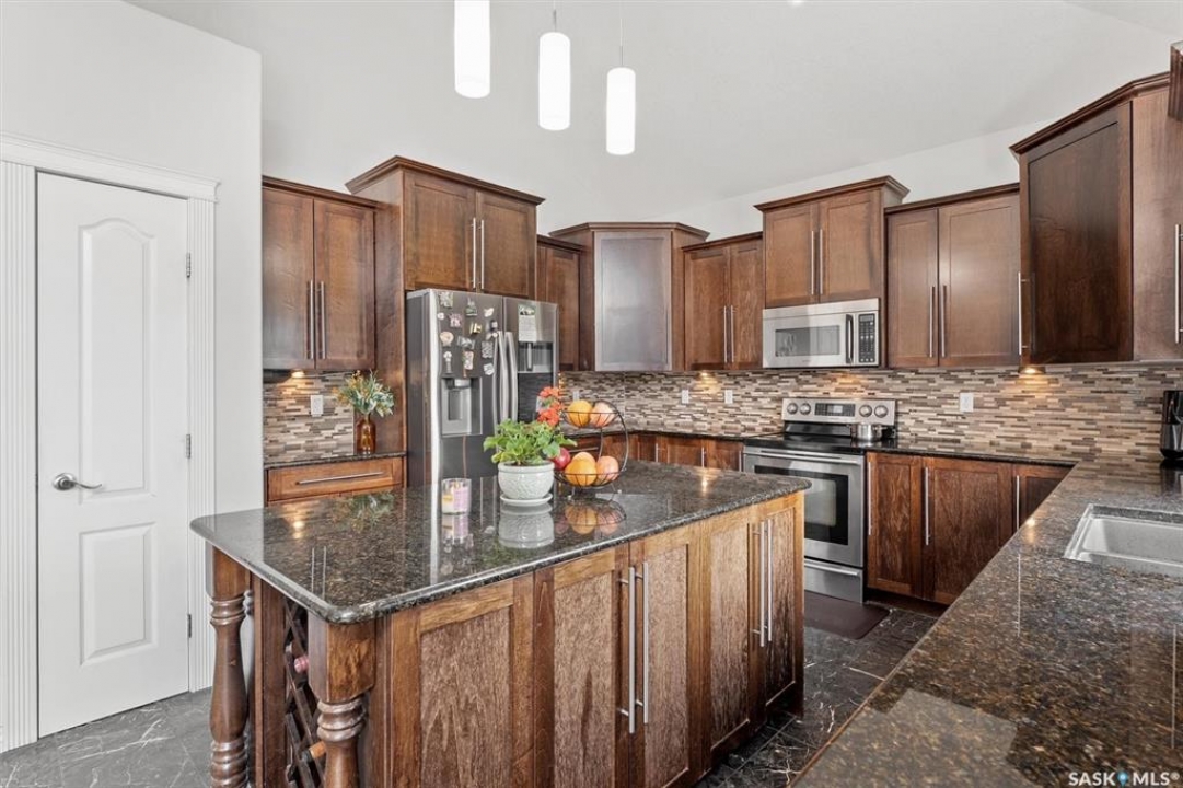 open house: Saturday (Mar.28) 1:00-3:00pm & Sunday (Mar.29) 1:00-3:00pm fully developed custom built bungalow in Willowgrove community. Close to school and community plaza. owner change a new modern refrigerator in 2023, and a new garage door in 2025. The house featured with an open concept and heated kitchen tile flooring with vaulted ceiling, exotic hardwood. Granite counter top and soft close drawers in the large kitchen, and the building in wine rack in the island. comfortable and large living room with patio door can access to the beautiful private deck and yard. The 10' tray ceilings of the master bedroom features with a double-sink 5 piece ensuite bathroom, heated mirror and walk in closet. 2 other good size bedrooms share a 4-piece bathroom. The laundry room also stays in the main floor. The energy-save ICF block basement features with a large family/recreation room, a good size bedroom, a modern 3-piece bathroom, 2 dens (one is used for workshop, the other one is for gym). Other feature: central air condition, heated and insulted garage. Only 2 blocks to the school, close to many other amenities. Welcome to show this move-in status beautiful house!