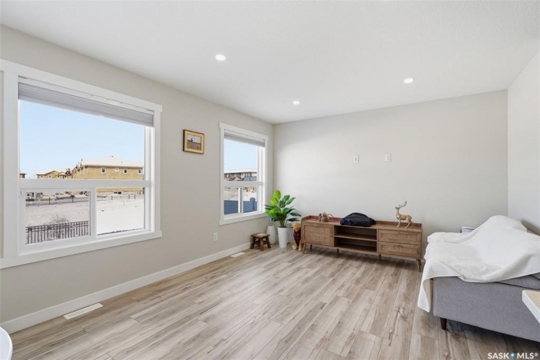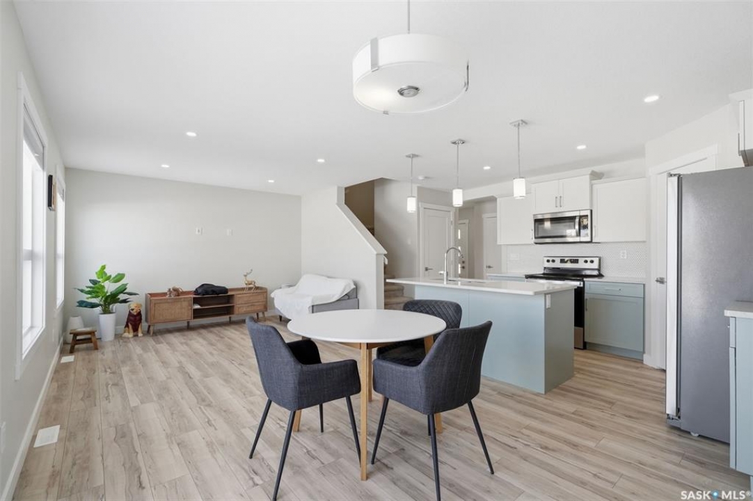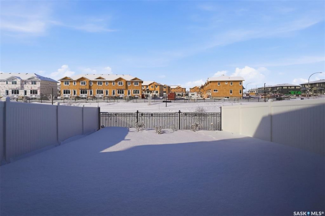 Welcome to 410 Myles Heidt Manor, a stunning semi-detached home in the sought-after Aspen Ridge community, beautifully backing onto the peaceful green space and walking paths of Kisiskaciwan Park. This impressive LAWRENCE model offers 1,484 sq. ft. of thoughtfully designed living space and shows in like-new condition, making it a true functional masterpiece in this price range. The bright and inviting main floor features oversized southwest-facing windows overlooking the yard, filling the home with natural light, along with a spacious living room ideal for entertaining, a well-planned kitchen with quartz countertops, stainless steel appliances with an exterior-vented range hood, and a convenient walk-through pantry. A 2-piece powder room completes the main level. Upstairs you will find three spacious bedrooms, including a large primary suite with a walk-in closet and private ensuite, two full bathrooms, a cozy bonus/flex room, and a second-floor laundry room with extra storage. The home also features a separate entrance with suite potential, adding excellent future flexibility. Outside, enjoy a fully landscaped front, back, and side yard, a 10×10 rear deck, double concrete driveway, and a front double attached garage, all with no condo fees. The location is exceptional, offering quick access to the north industrial area via the Chief Mistawasis Bridge and close proximity to many amenities including restaurants, grocery and convenience stores, fitness facilities, the SaskTel Soccer Centre, schools, the Meewasin North-East Swale, the Forestry Farm & Zoo, scenic river bike trails, the Sutherland Dog Park, and the University of Saskatchewan. With its outstanding design, premium features, and unbeatable setting, this home truly stands out