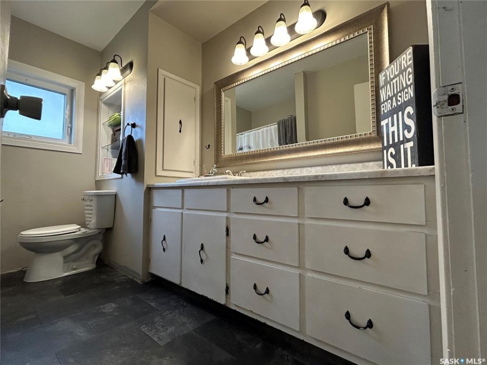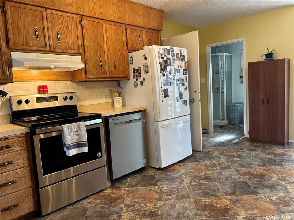 Welcome to this spacious 5-bedroom, 3-bathroom home located in the desirable Hillside area of Estevan. Upon entering the front door, you are welcomed by a bright living room with windows on two sides, allowing plenty of natural light to fill the space. The large kitchen offers a pull-out island, abundant cupboard and countertop space, and a separate dining area with double doors that lead out to the backyard—perfect for family living. This level features three bedrooms, a full four-piece bathroom, an additional three-piece bathroom, and a large back entry that serves as a convenient drop zone for coats, backpacks, and shoes. The basement provides even more living space with two additional bedrooms, another full bathroom, and a laundry area conveniently located at the bottom of the stairs. Outside, the property includes a single garage, parking available from the back alley, and a double concrete driveway, offering plenty of space for vehicles.