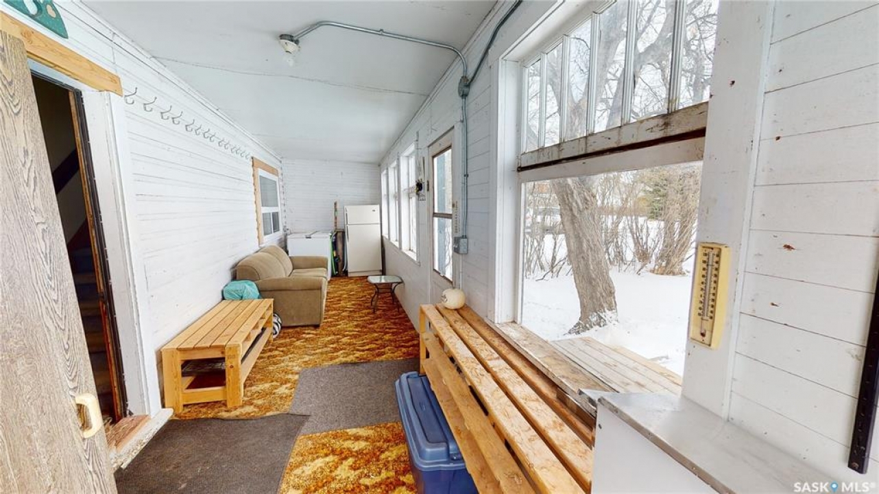 4 BEDROOMS, 2 BATHS, FIREPLACE, DOUBLE LOT, GARAGE. Discover the warmth and charm of this four-bedroom, 1.5 bath Character Home situated on two lots with front and back garages. Step into the inviting wraparound enclosed veranda as you enter into the house. A corner staircase leads you to the 2nd level with 3 bedrooms and a full 4pc bathroom accessible directly from two of the bedrooms. Unwind in the cozy living room complete with a wood-burning fireplace and access to the 4th Floor Bedroom on the Main Level. Proceed through the living room into the dining room and kitchen with windows facing the back yard & deck plus a back door from the kitchen leading right into the fully fenced part of the yard. The kitchen also accesses the conveniently located Laundry Room plus the floor access to the cellar that includes the Gas Furnace and other Utilities. Outside, the yard offers endless possibilities with a treated wood back deck, trees for shade, back garage & shed plus a concrete patio - perfect for a Fire Pit or other backyard activity. The North side of the property is shaded by mature trees, while a greenspace and community playground sit just across the street adding to the home's appeal and central location to the town's amenities include Hospital, K-12 School and Downtown. From the Street front there is plenty of parking on the gravel driveway, along the front fence and in front of the 16 x 24 Garage built in 1995. This home comes complete with a Fridge, Stove, Washer, Dryer, Wall Air Conditioner, Water Softener and Sump Pump. Singles Updated in 2015. Experience it all firsthand with the enclosed 3D Virtual Tour of the property's interior or contact a Realtor for a private viewing!