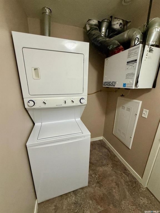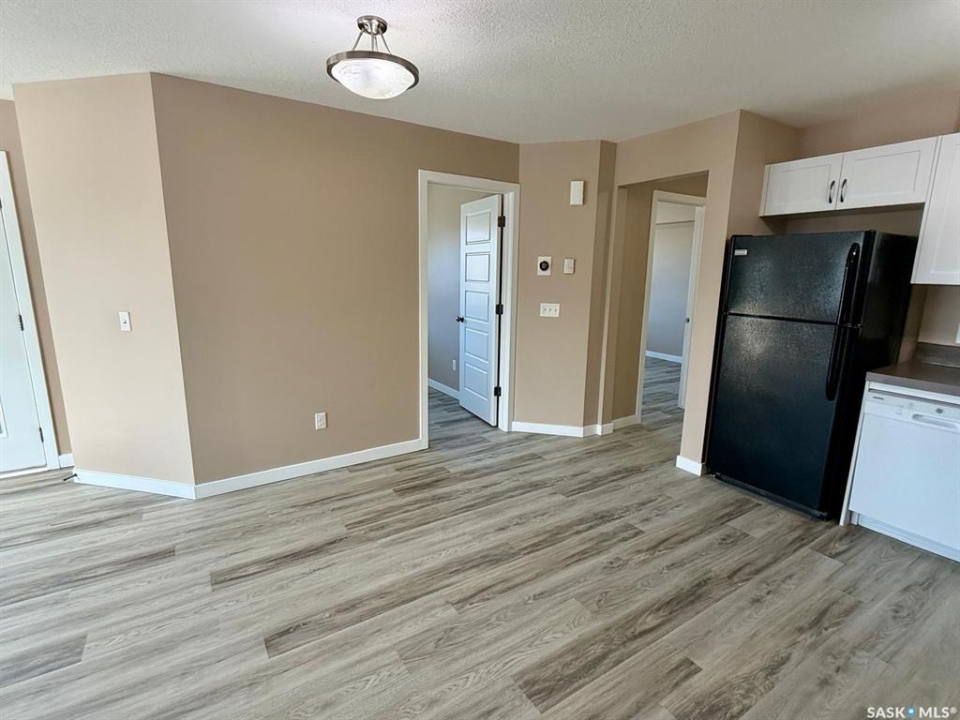 Welcome to #93-5642 Gordon Road in Regina's desirable Harbour Landing neighbourhood. This well-maintained upper-level condominium offers a bright and functional layout with 2 bedrooms, 1 bathroom, and 797 sq ft of comfortable living space. The open-concept main living area features durable vinyl plank flooring throughout the living room, dining space, and kitchen, creating a clean and modern feel. The kitchen is well appointed with ample cabinetry, plenty of counter space, and includes appliances. Large windows allow for an abundance of natural light, giving the entire home a warm and inviting atmosphere. Both bedrooms are nicely sized and positioned near the 4-piece bathroom. A convenient in-suite laundry area adds everyday practicality and additional storage. Step outside onto the private balcony, perfect for relaxing or enjoying your morning coffee. The unit also includes one exclusive parking stall (#119) and visitor parking is available for guests. Located in the well-managed Life on Gordon condominium complex, this home is close to parks, walking paths, shopping, restaurants, schools, and many south Regina amenities. Condo fees include common area maintenance, exterior building maintenance, garbage, lawn care, snow removal, sewer, insurance (common), and reserve fund contributions. This property is an excellent opportunity for first-time buyers, investors, or those looking for low-maintenance living in Harbour Landing.