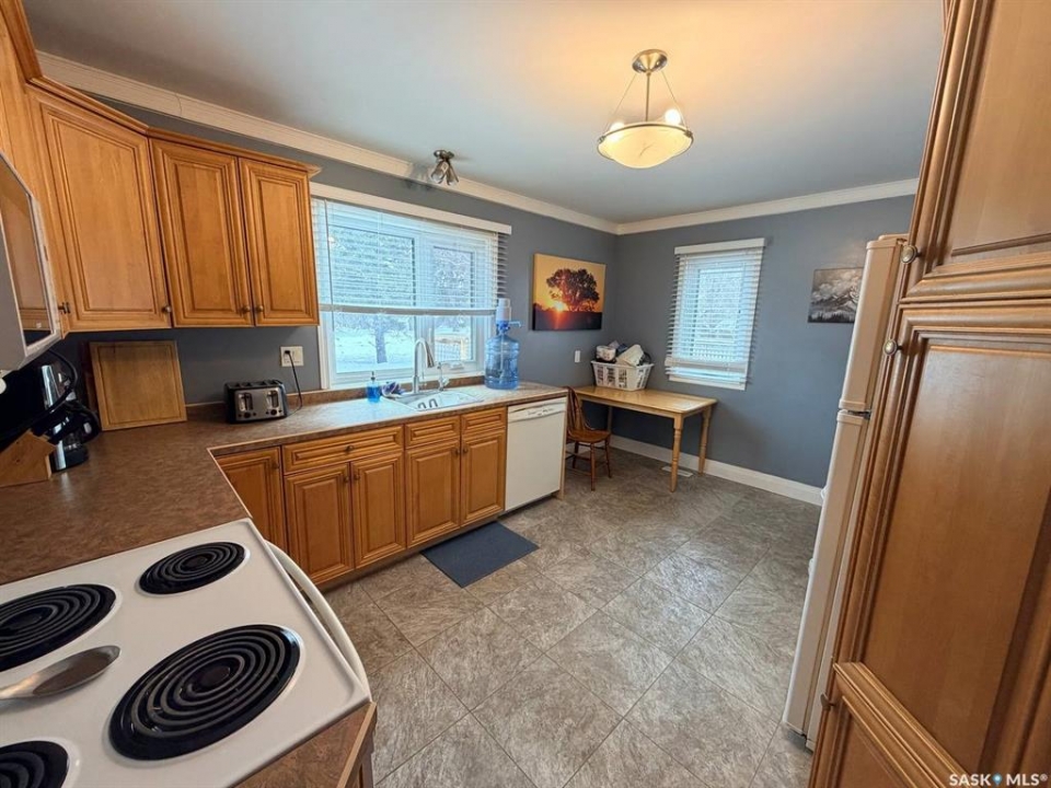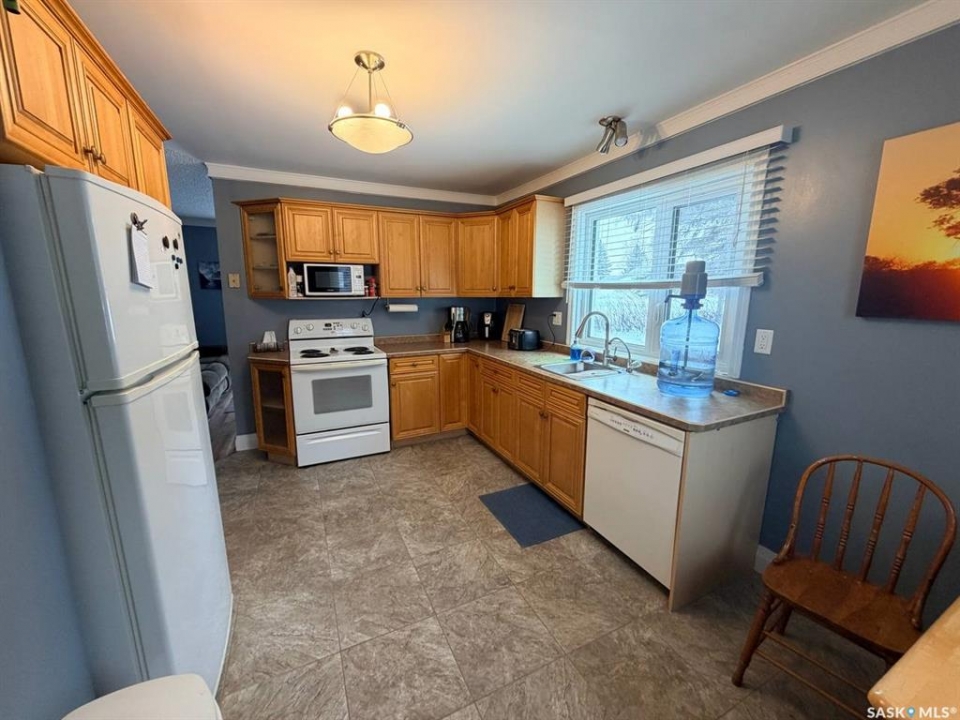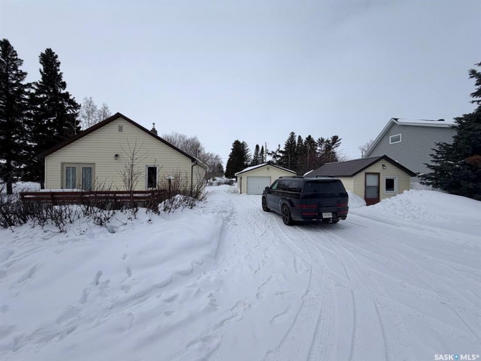 Welcome to 302 Humboldt Street. Tucked into the peaceful village of Jansen, SK, this 724 sq. ft. home sits on an expansive triple lot (120' x 115'), offering a rare combination of privacy, space, and small-town charm. Recent upgrades throughout make it move-in ready. Inside, you'll find newer flooring across both levels, a well-appointed kitchen with updated cabinetry, and a bright main-floor living room with patio doors opening onto the deck. A spacious 3-piece bathroom and expansive bedroom complete the main floor. Downstairs adds a second bedroom, a freshly renovated laundry room (2021), and dedicated storage and utility areas. Other major upgrades include triple-pane windows (2019), a newer furnace (2014), and a metal roof (2020) which was added to both the house and the guest house. Outside, the property truly comes into its own. An insulated, powered 19x23 detached garage serves equally well as a workshop or extra parking. A separate guest house or private office adds flexibility for visitors or remote work. Round it out with a deck, patio, and garden area. Positioned near the edge of town, this property delivers the quiet of rural living without sacrificing convenience. A well-maintained, thoughtfully upgraded property. Contact us today for more info or to book your viewing.