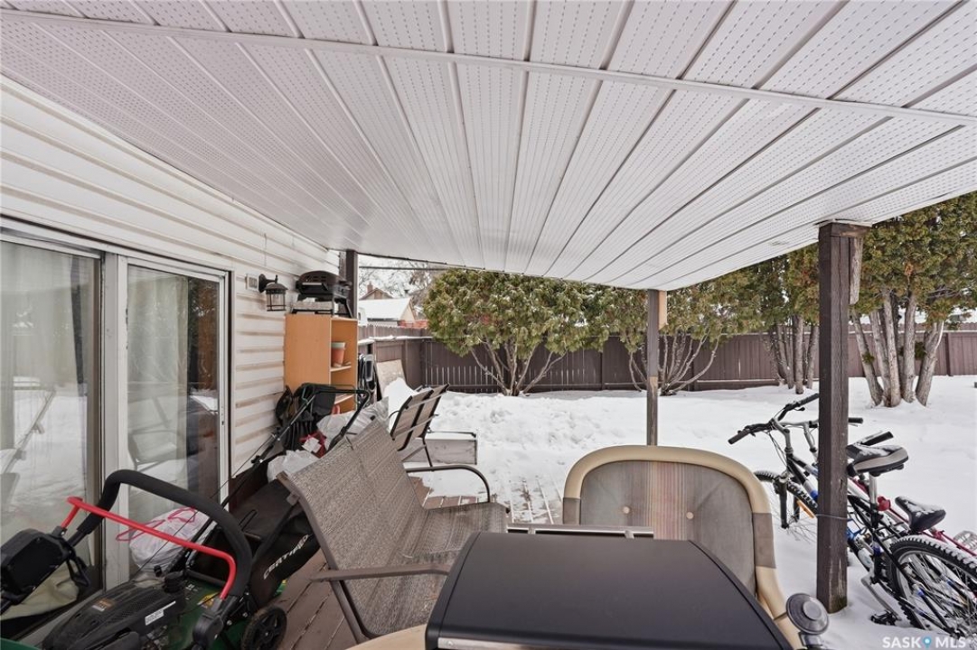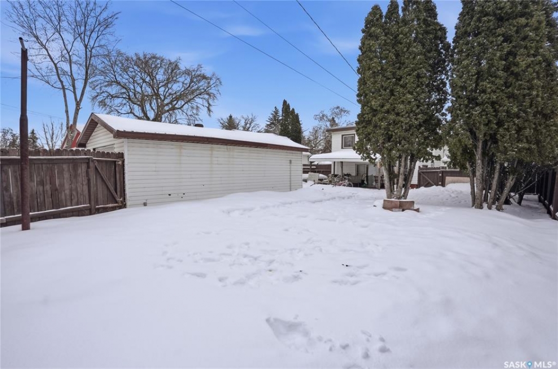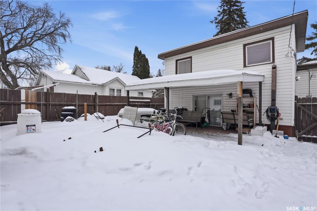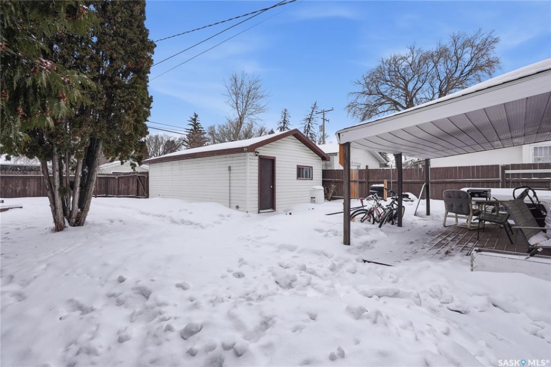 Introducing 100 Cruise Street in Forest Grove. This home offers a unique and versatile layout with generous living spaces, 3 bedrooms, and 2 bathrooms. The attached garage has been thoughtfully converted into a spacious family room with direct access to the backyard. Enjoy the private outdoor space featuring mature trees, a deck, covered patio area, and an oversized single detached garage with alley access on a 50 x 120 corner lot. The property is R2 zoned, offering potential flexibility for future use. Whether you're a first-time buyer, investor, or looking for a home in a convenient location, this property offers great potential. Just minutes from the University of Saskatchewan, Preston Crossing, parks, schools, and major bus routes.