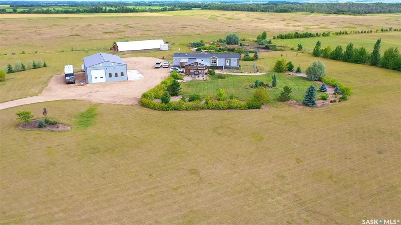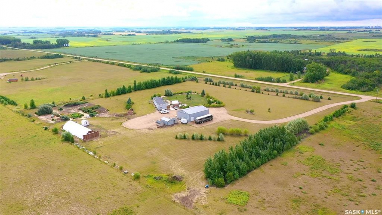 Terrific opportunity for your family with this acreage just situated 13KM from the City along Mehan Rd. This 1600 sq ft bungalow which is constructed on top of screw piles features three bedrooms along with a 5-piece primary bath ensuite. Open concept design with sit-up island along with a natural gas fireplace in your living room area. The home sits on screw piles in the crawl space. Central Air along with RO system, however the well water is plentiful and high quality as it sits in the aquifer 52 ft down. The yard is meticulous and holds various outbuildings including your amazing 40x60 heated shop. The shop contains four overhead 10x10 doors along with a 14x14 overhead door. Natural gas heat along with a 3-piece bath inside the shop. Lots of room to store the toys, RV, Semi inside. �” plywood walls 8ft up make it easy to mount anything to the wall and set it up the way you would like along with an ICF footing. 16x24 garage with wood floor also on the property along with a 30x85 tarped Quonset with wood end walls. Brand new Winkler canvas tarp just installed and contains power in both these buildings. Greenhouse also on the property equipped with water and power also. Multiple 8x12 and 8x16 storage sheds also on site to store the garden tools and various extras. Large garden area along with three sides fenced of the 9.3-acre property. Front large deck along with a covered gazebo area and beautiful patio outdoor firepit area to enjoy. Don't miss this pristine property located a short drive back to the city. You will not be disappointed!