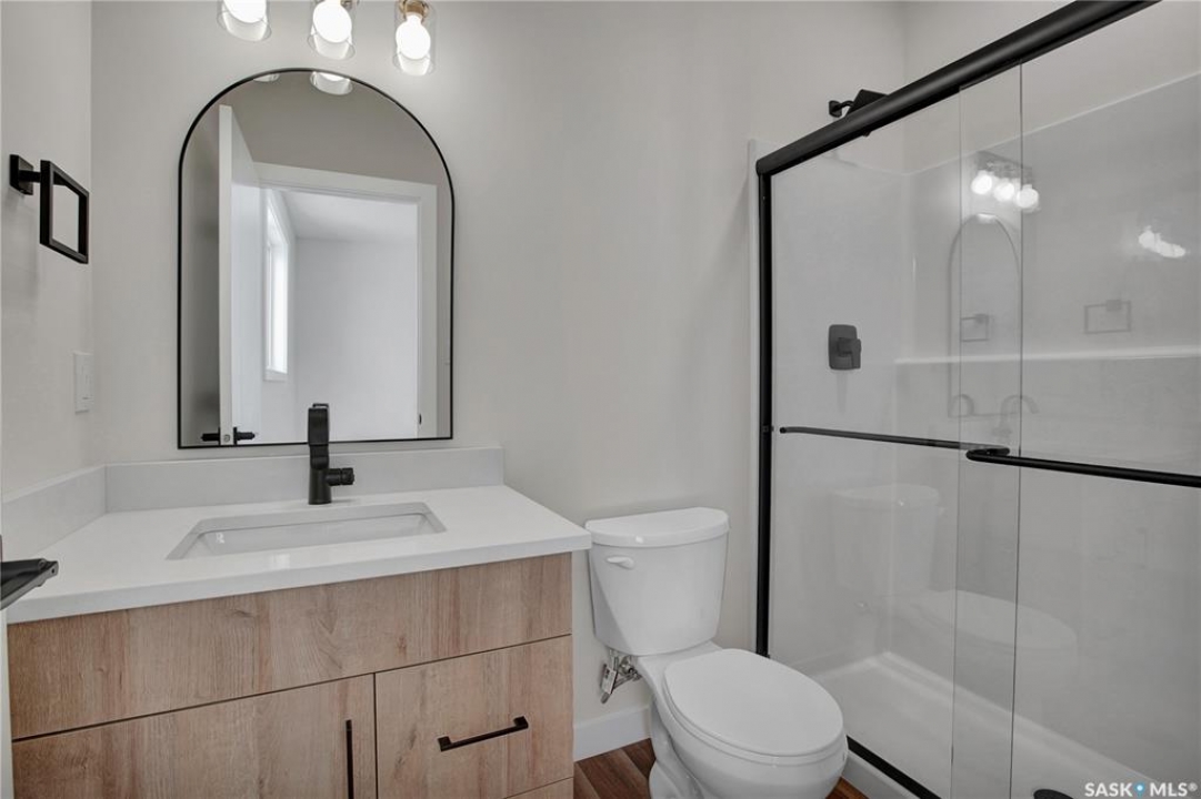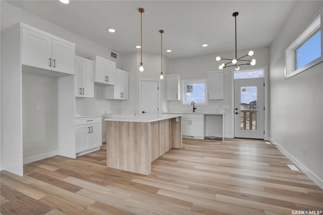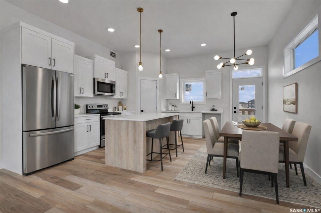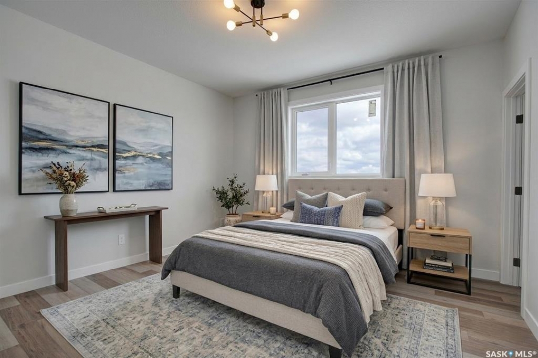 Welcome to 220 Veterans Dr Warman SK. This new west facing home, open-concept bi-level boasting 1275 sq/ft of living space on the main. This home is located in the new subdivision in Warman the Traditions near many amenities, such as schools, parks & shopping. The main floor boasts spacious living/dining/kitchen with 10' ceilings where you will be emerged with plenty of natural light thanks to the large windows in this home. The main level features vinyl plank flooring thru out the home. The gorgeous kitchen boasts, corner pantry custom shelving, high end, soft-close cabinets & drawers. The Primary bedrooms features a large walk-in closet & a 3 piece en-suite. There is also a 4 piece bathroom and two additional large bedrooms on the main floor. The basement has 9' ceilings, has excellent layout for future large family room with an additional bathroom and 2 bedrooms. Direct access from a large foyer to double attached garage (22x24). The garage is fully insulated and boarded with side man door to yard. *The measurements are retrieved from the blueprint. Some photos are virtually staged and noted as staged