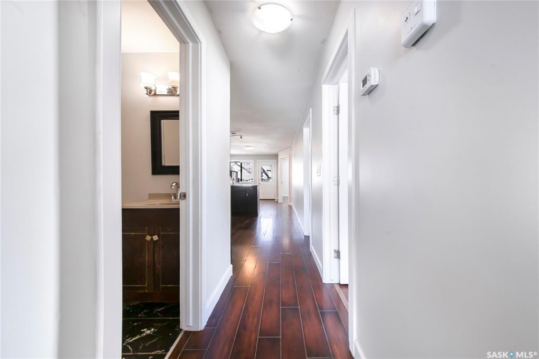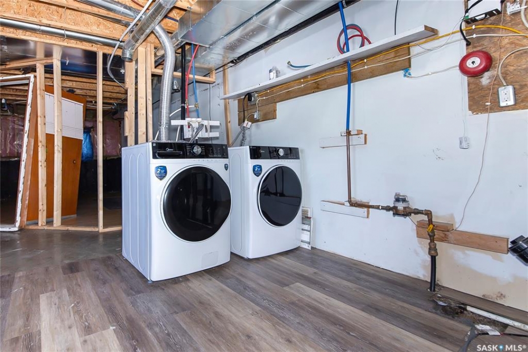 Excellent opportunity for first-time buyers, families, or investors seeking affordable living! Located in the welcoming town of Asquith, approximately 35 minutes west of Saskatoon along Highway 14, this corner-unit bilevel style semi-detached home offers comfortable and affordable living in a great commuter community. The main floor features 3 bedrooms, including a primary bedroom with a private 3-piece ensuite. The living room, kitchen, and dining area are finished with laminate flooring, while the main 4-piece bathroom features tile flooring. Garden doors off the dining area lead to a rear deck, perfect for relaxing or entertaining. The basement level includes the laundry area, with the remainder of the space open for future development, offering plenty of potential to customize. Enjoy the added privacy and extra natural light of a corner unit, along with the charm of small-town living just a short commute from Saskatoon.