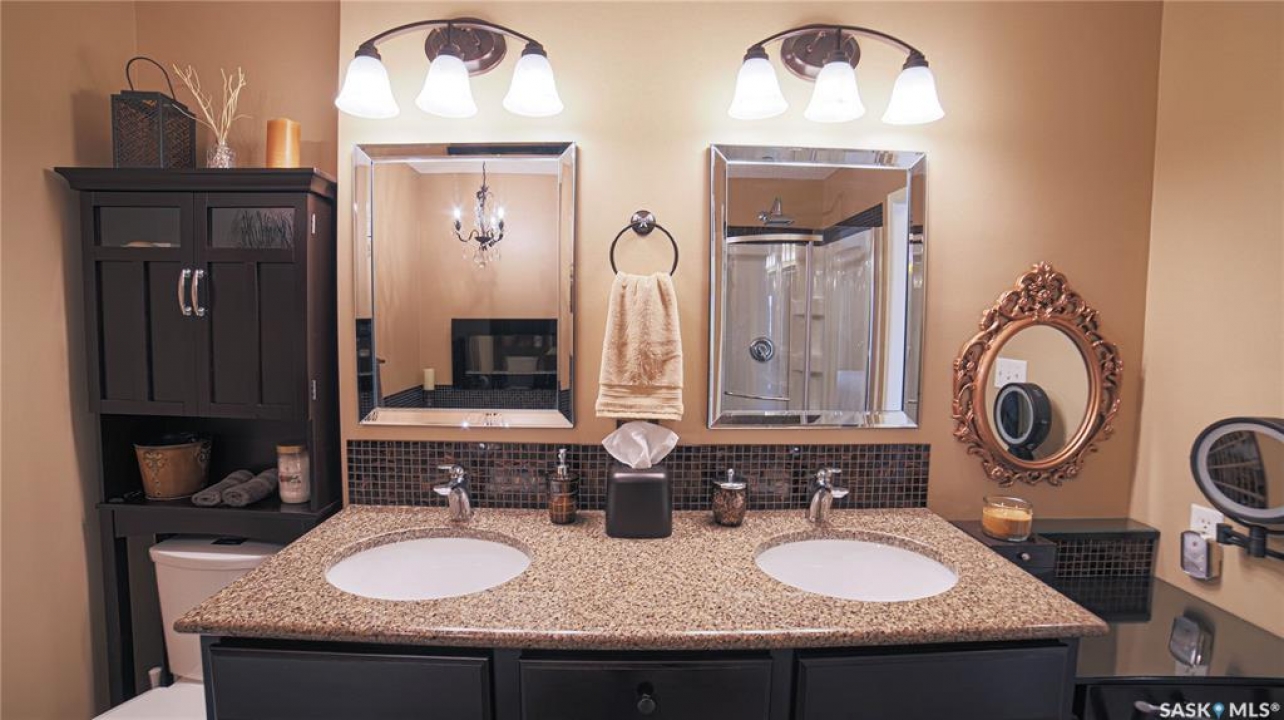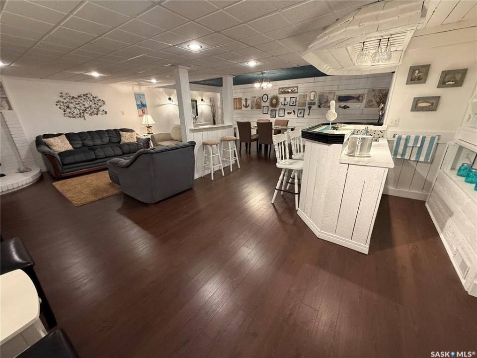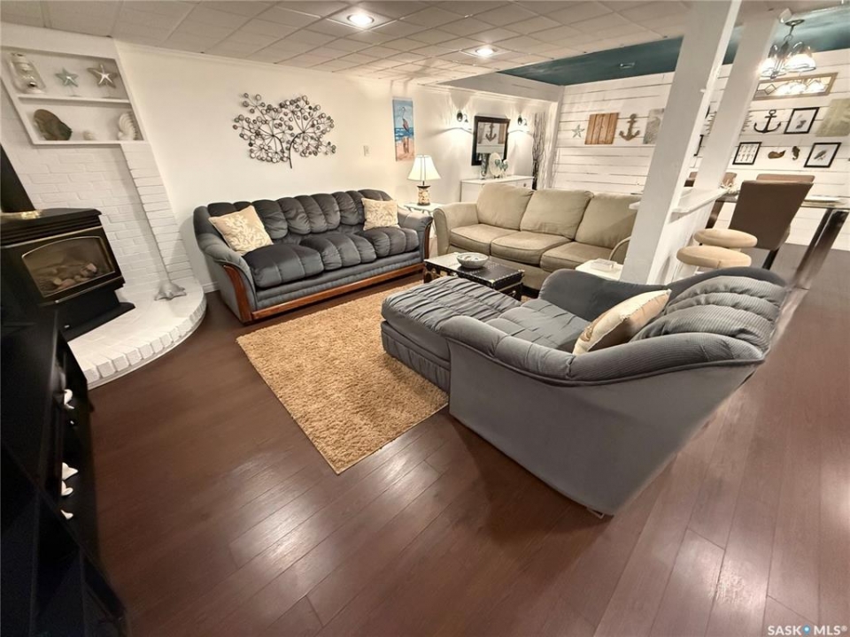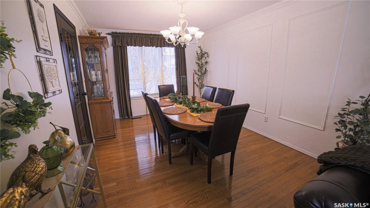 This exceptional home is a rare find in one of Estevan's most desirable neighbourhoods. Offering over 2,000 sq. ft. of living space above grade, this beautifully maintained property stands apart from the ordinary with its thoughtful layout and immaculate condition inside and out. Step into the spacious front foyer where you're immediately welcomed by soaring vaulted ceilings in the bright front living room, creating an impressive first impression. The living room flows seamlessly into the large formal dining area, perfect for entertaining. The eat-in kitchen is ideally situated between the dining room and a cozy secondary living space, providing the perfect spot to relax with family. From here, patio doors lead to the incredible backyard featuring a covered deck, mature trees, and lush foliage that creates exceptional privacy throughout the summer months. A convenient two-piece powder room and direct access to the attached double garage complete the main floor. Upstairs you'll find three generous bedrooms plus a versatile bonus room that would make an ideal playroom, office, or hobby space. The spacious primary suite features a walk-in closet and a stunning five-piece ensuite complete with a heated whirlpool tub. A second full bathroom and conveniently located laundry complete the upper level. The fully developed basement is an entertainer's dream, offering a large gathering space perfect for a dining area or pool table, a wet bar, comfortable family room with gas stove, and an additional two-piece bathroom. It's large enough for hosting gatherings while still providing a cozy space for family movie nights. Meticulously maintained from top to bottom, this one-of-a-kind home offers space, comfort, and exceptional care in every detail.