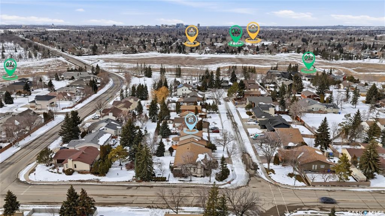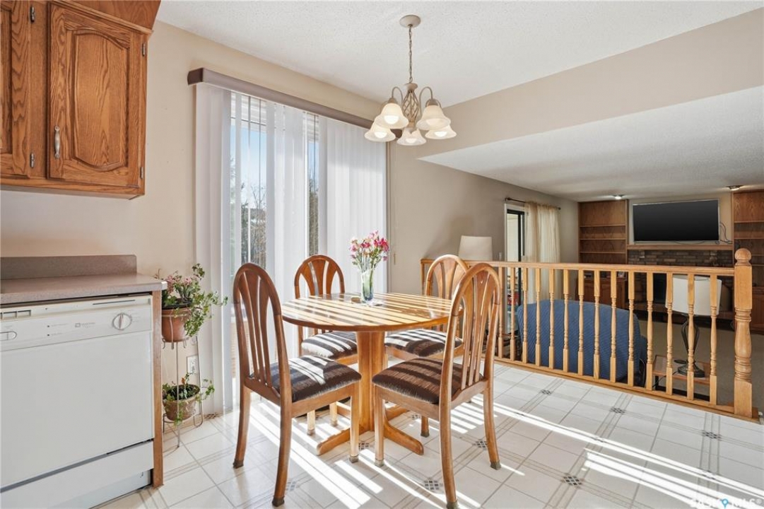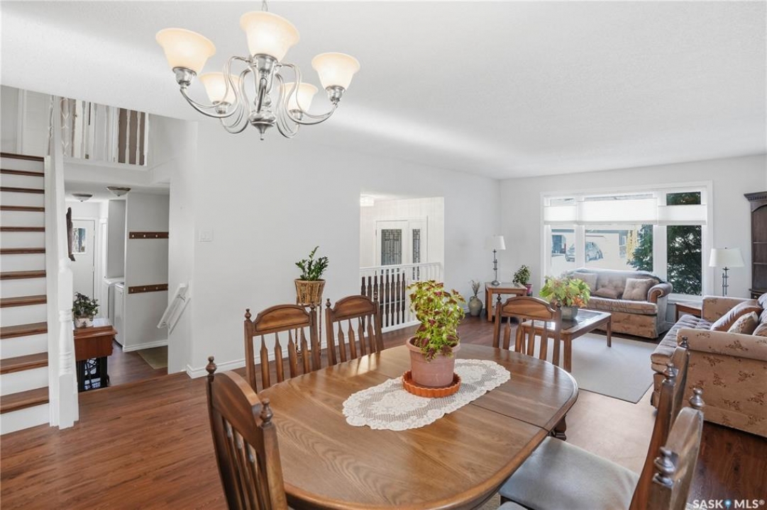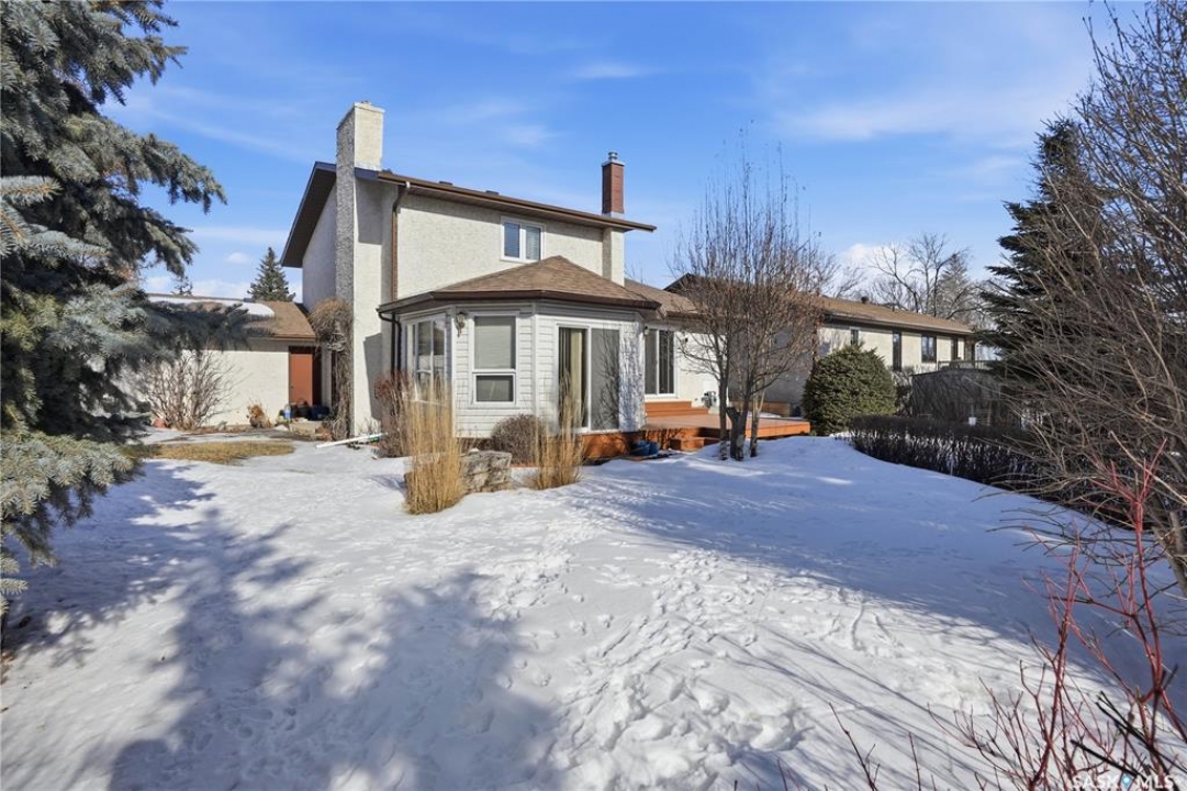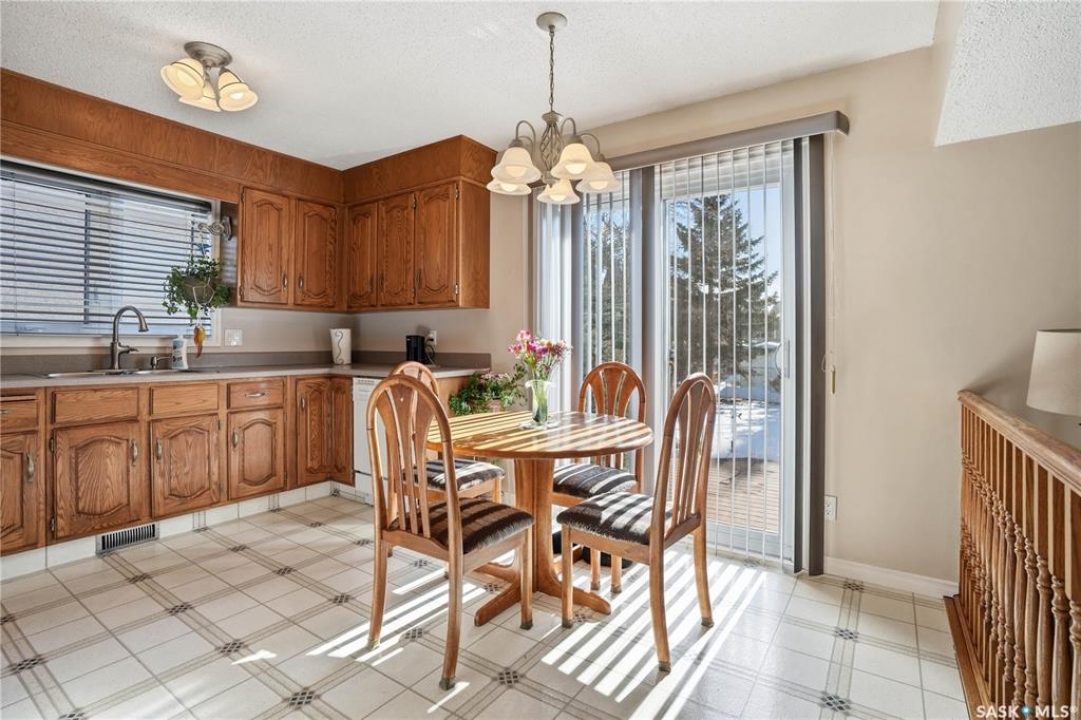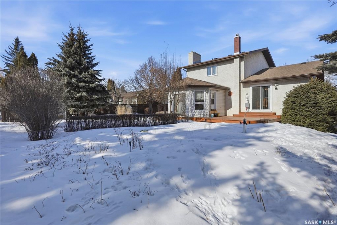 You'll find this home in the well-established University Park East neighbourhood near Westminster Park and W.S. Hawryluk school, with convenient access to Regina's east end amenities and the Ring Road to all points of the city. This 2-storey split is an original owner home that has been cared for and maintained through the years including windows, floors, doors, and a hi-efficient furnace. The main floor features a bright, open-concept dining and living room, perfect for hosting a crowd. The sunken family room features a built-in wall unit and fireplace, with patio doors leading to a bright sunroom, built on piles. The spacious eat-in kitchen offers an abundance of cabinet and counter space, with south facing patio doors to the deck. A 2-piece bath and convenient mud/laundry area complete the back entry. Upstairs, the primary bedroom features a walk-in closet and 3-piece ensuite, accompanied by two additional good-sized bedrooms and a 4-piece bath. The fully finished lower level provides excellent versatility with a recreation room, bedroom, den, workshop or craft room, and a large storage/utility room. This home has outstanding curb appeal with near 70-foot frontage, you'll love the 32'x22' triple heated garage and the space for RV parking. The fully landscaped backyard features a 2-tier deck, 2 sheds, partial fencing, and direct access to a walkway that leads to nearby Westminster Park and Pilot Butte trail system. Value added features include central A/C, central vac, an underground sprinkler system in the back, and xeriscaping in the front. This home is move-in ready and a rare find - call your agent to schedule your showing today.