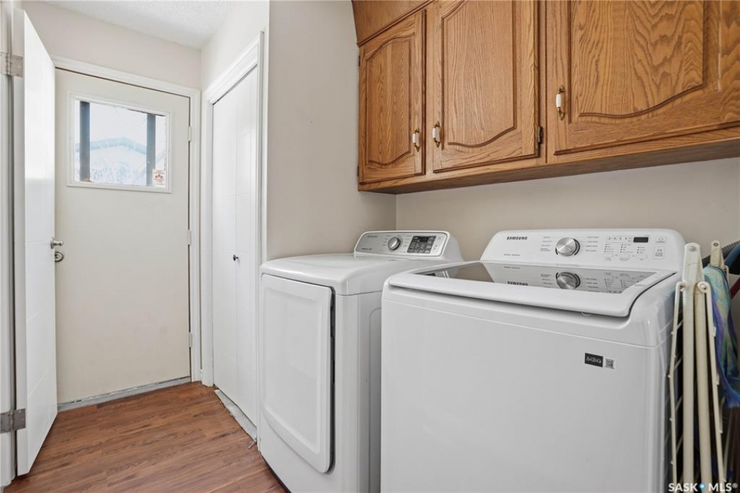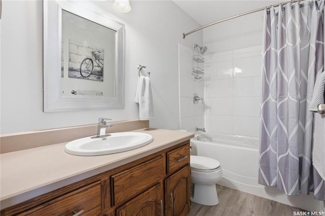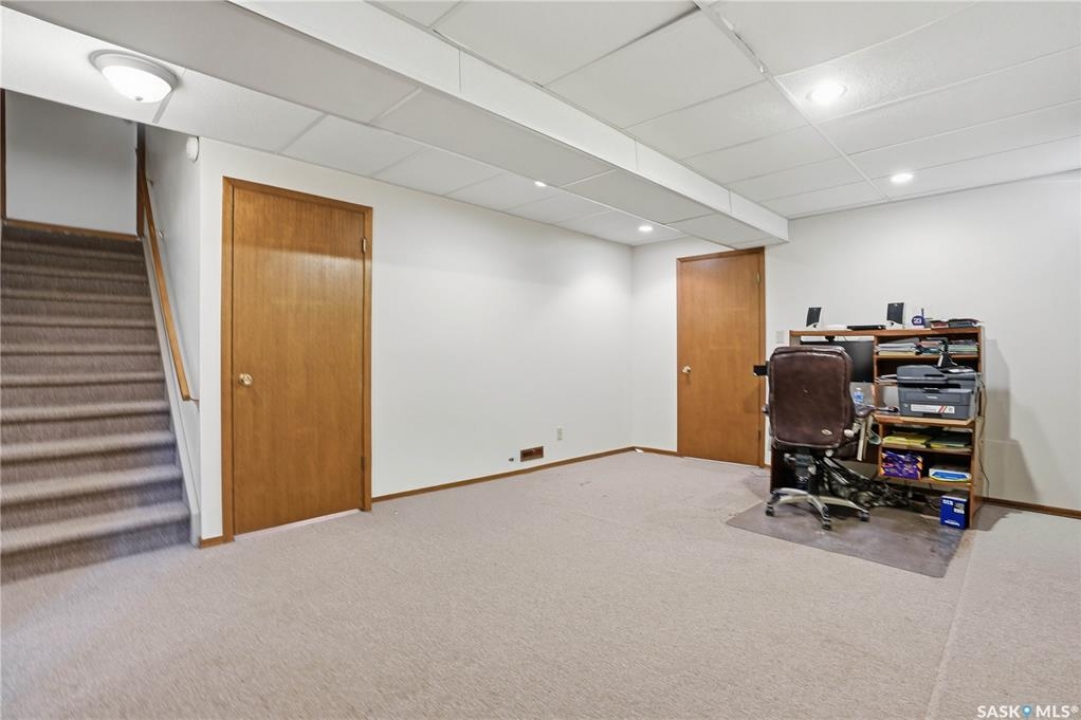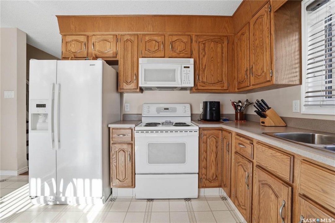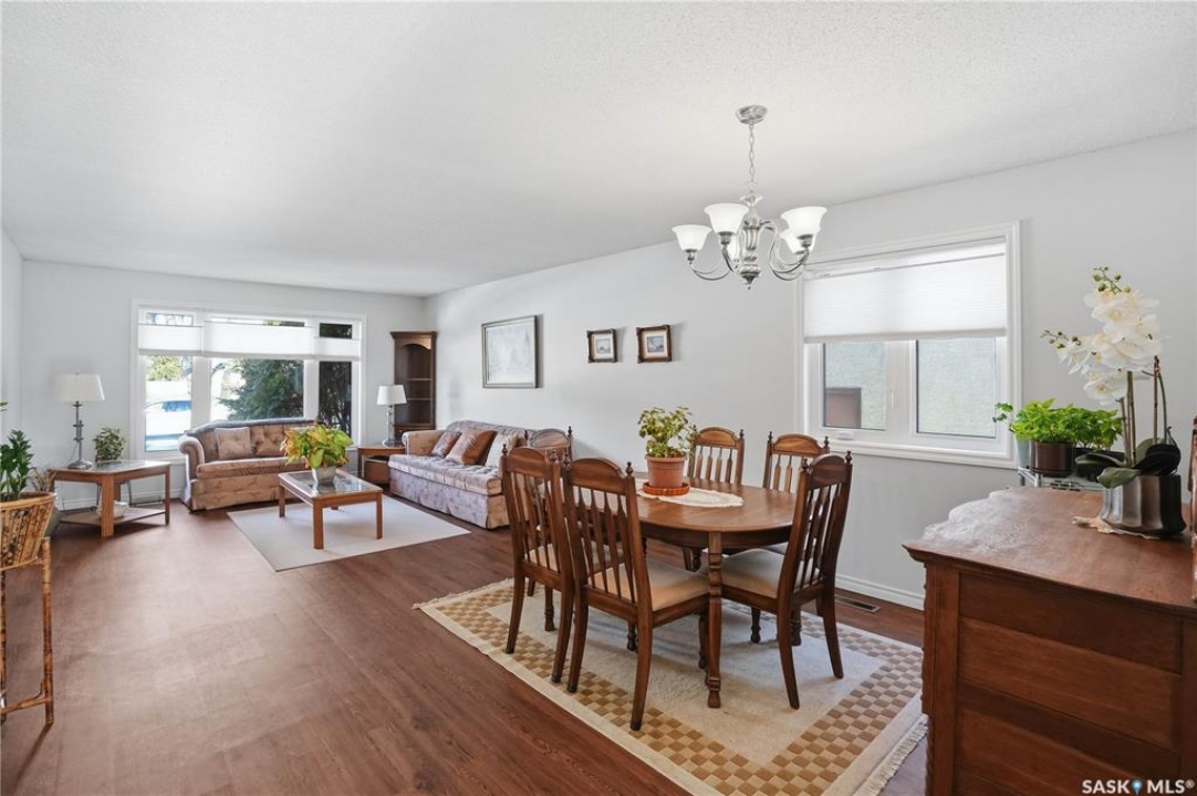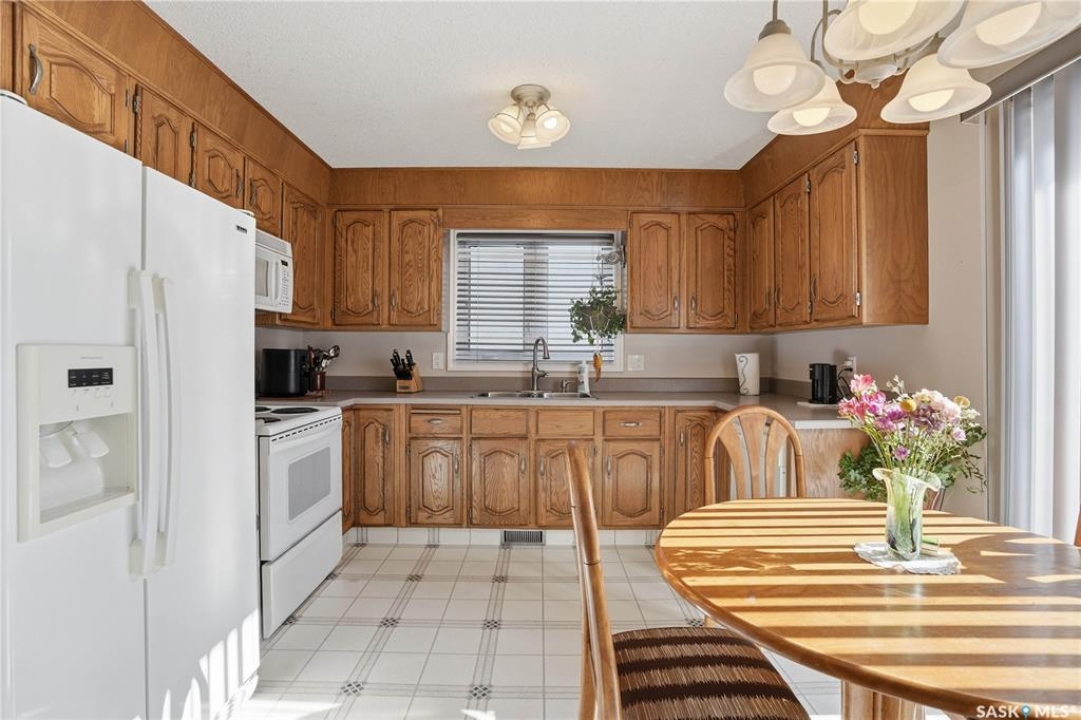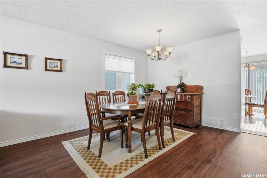 You'll find this home in the well-established University Park East neighbourhood near Westminster Park and W.S. Hawryluk school, with convenient access to Regina's east end amenities and the Ring Road to all points of the city. This 2-storey split is an original owner home that has been cared for and maintained through the years including windows, floors, doors, and a hi-efficient furnace. The main floor features a bright, open-concept dining and living room, perfect for hosting a crowd. The sunken family room features a built-in wall unit and fireplace, with patio doors leading to a bright sunroom, built on piles. The spacious eat-in kitchen offers an abundance of cabinet and counter space, with south facing patio doors to the deck. A 2-piece bath and convenient mud/laundry area complete the back entry. Upstairs, the primary bedroom features a walk-in closet and 3-piece ensuite, accompanied by two additional good-sized bedrooms and a 4-piece bath. The fully finished lower level provides excellent versatility with a recreation room, bedroom, den, workshop or craft room, and a large storage/utility room. This home has outstanding curb appeal with near 70-foot frontage, you'll love the 32'x22' triple heated garage and the space for RV parking. The fully landscaped backyard features a 2-tier deck, 2 sheds, partial fencing, and direct access to a walkway that leads to nearby Westminster Park and Pilot Butte trail system. Value added features include central A/C, central vac, an underground sprinkler system in the back, and xeriscaping in the front. This home is move-in ready and a rare find - call your agent to schedule your showing today.