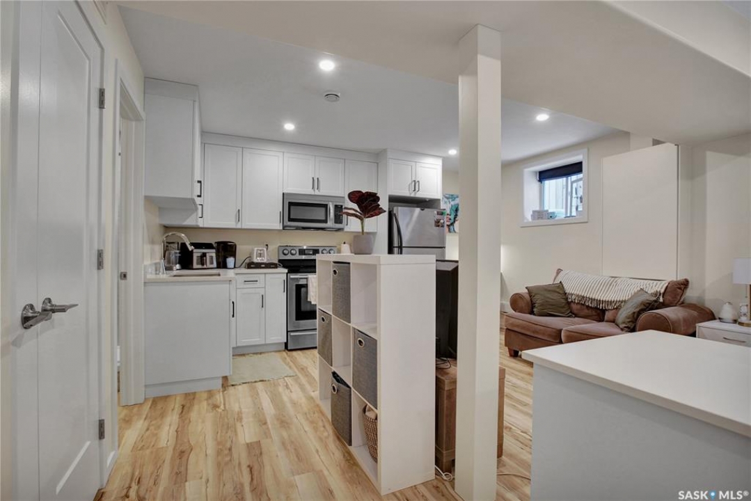 Charming & adorable best describe 321 Secord Way! This completely developed Brighton starter home has an awesome newer permitted suite (A great mortgage helper! )This is a wonderful opportunity to get into the market and live in a great area within Brighton. It is very close to Mc Ormond drive and the commercial area, with shopping, restaurants, gym, theatre and health services.The main floor features a spacious foyer and living room, functional kitchen with amble cabinets ,island &quartz countertops &stainless steel appliances. This level also has a dining room, 2 piece bathroom and access to the back yard with an attached deck over looking the fenced yard. Upstairs you will find 3 nice sized bedrooms. The Primary bedroom has a walk in closet and a 4 piece bathroom. You will be impressed with this newer, permitted and trendy suite has a full kitchen, laundry /storage room and its own electrical panel. The garage is 22' by 22", boarded and insulated. The front has a veranda area ( room for a bistro table & chairs )and the back yard has a lovely deck to enjoy outdoor leisure time! Plan to view this home this week end with your favourite agent and submit your offer on Monday afternoon!
