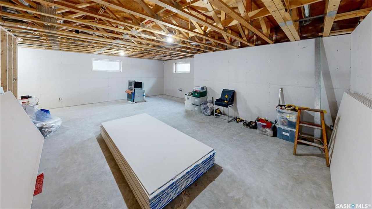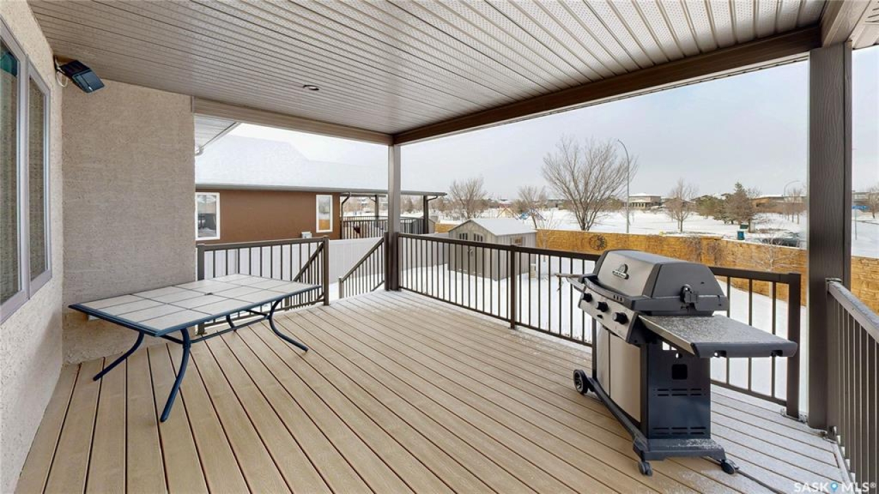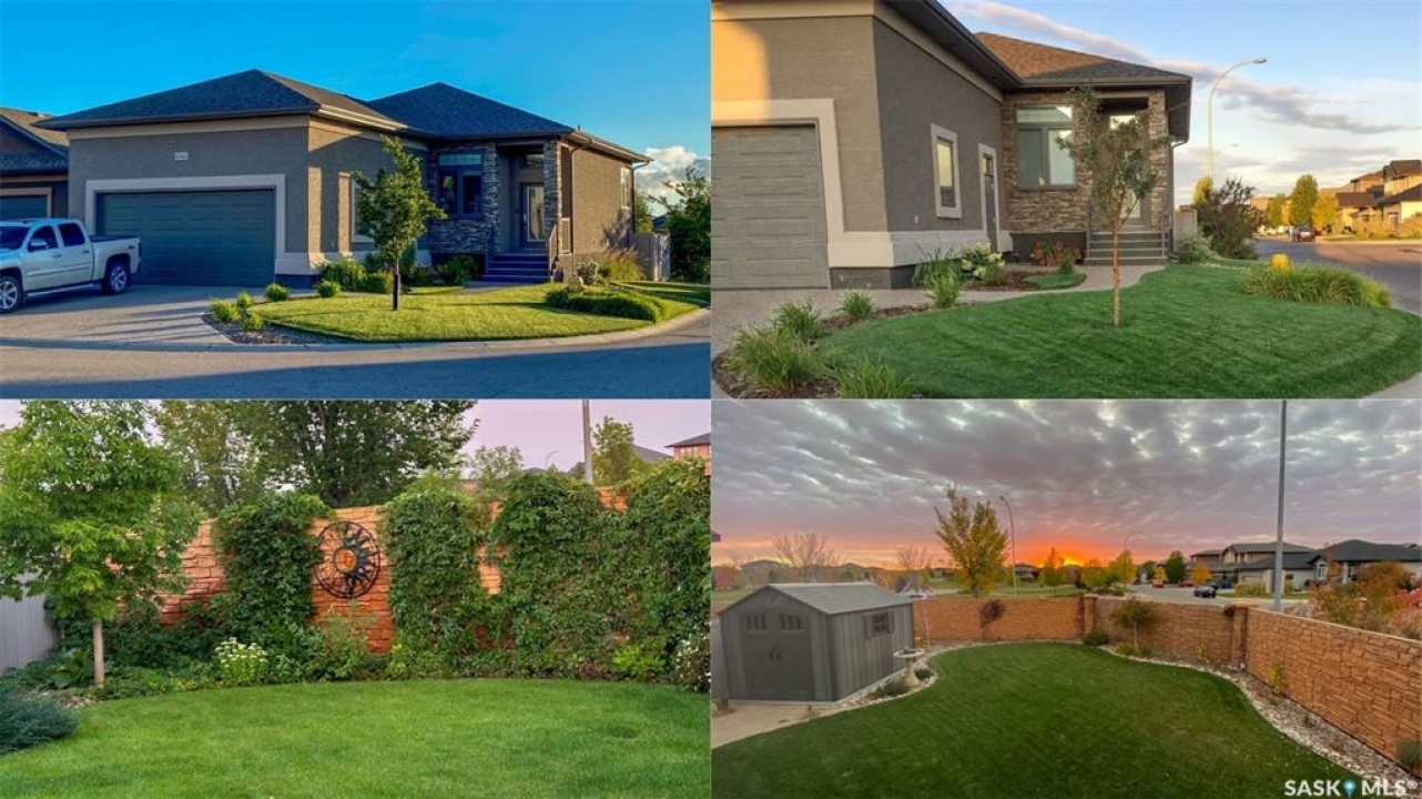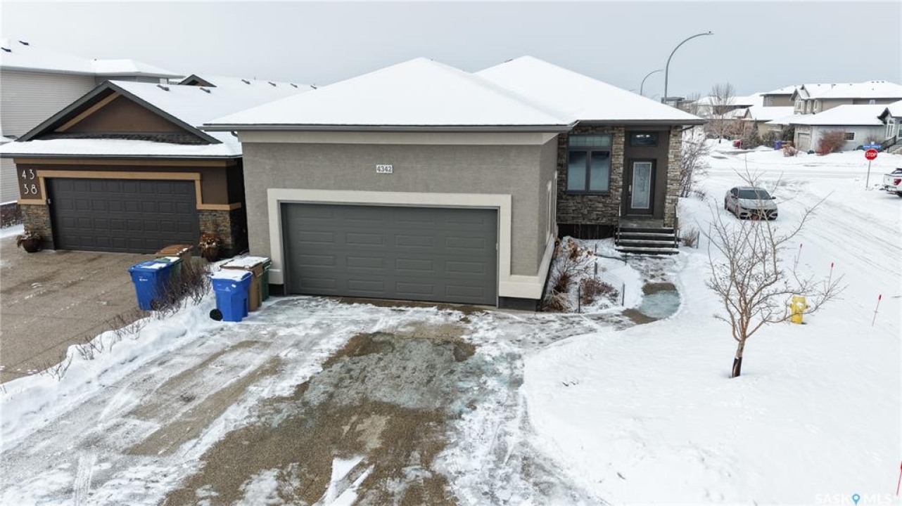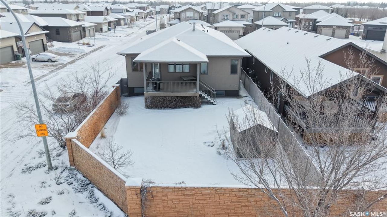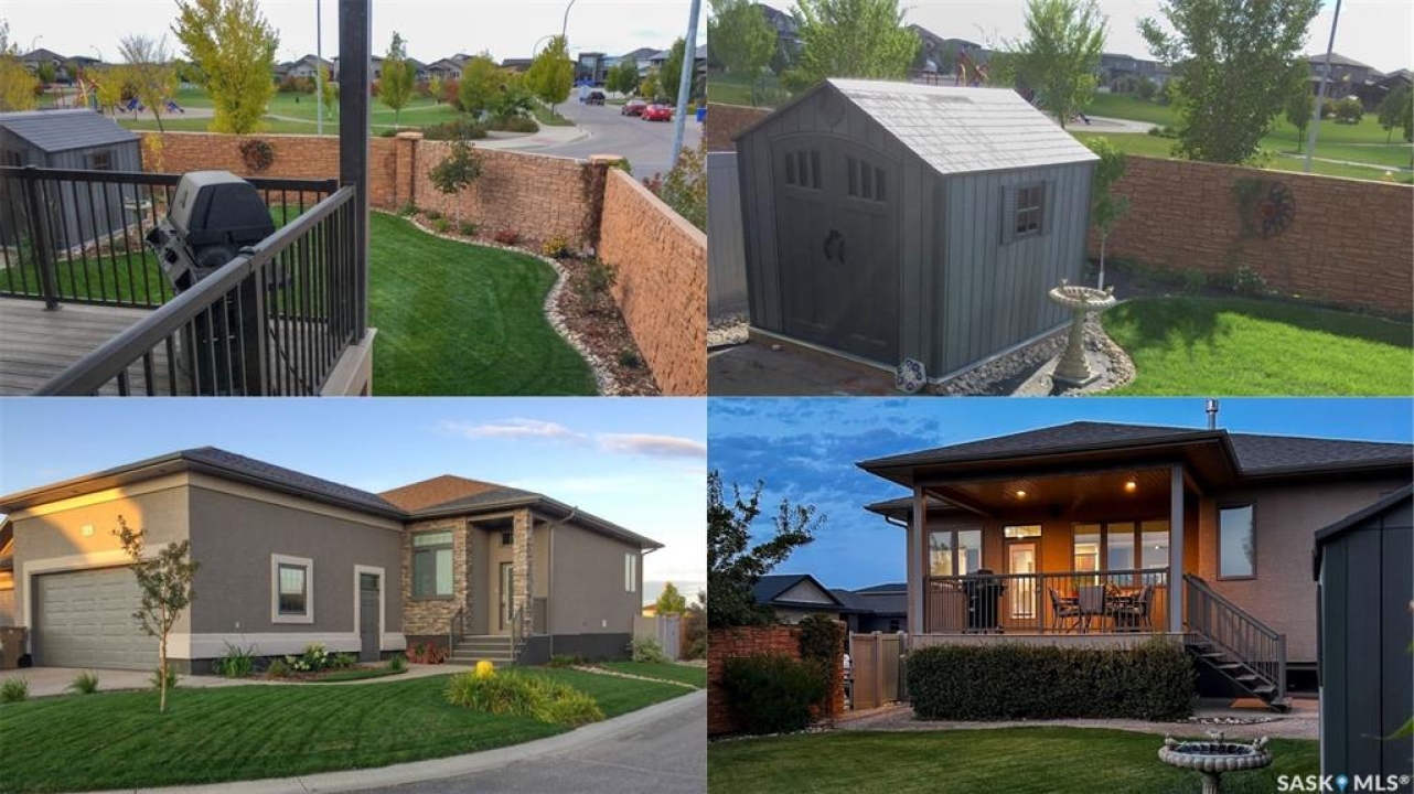 This 1,381 sq ft bungalow is ideally positioned on a quiet, low-traffic bay with a park directly behind—something the current owners have especially appreciated as it provides a safe setting for kids to play. The home was custom-built in 2013 by Ripplinger and offers 3 bedrooms and 2 bathrooms on the main level, along with an additional bedroom and bathroom partially developed downstairs. The front yard is professionally landscaped with underground sprinklers. There's a 24 x 26 attached garage which is heated and insulated, featuring 14 ft ceilings (great for anyone considering a car lift), a 220 volt plug-in, and a full drain pit connected to the sewer. The fully fenced backyard is also professionally landscaped and features a stone wall, underground sprinklers, a covered deck, natural gas BBQ hookup, exposed aggregate patio, and an included storage shed. Inside, the living room features laminate flooring and 9 ft ceilings that continue throughout the main level. There are LED pot lights, a built-in speaker system (also connected to the primary bedroom and deck), and a natural gas fireplace. The open layout flows into the dining area and kitchen, complete with soft-close drawers, corner pantry, glass tile backsplash, granite countertops, an island with bar seating, and included stainless steel appliances. The main floor continues with a bedroom, followed by the laundry room with included washer and dryer, another bedroom, and a 4-piece bathroom with ceramic tile heated flooring. The primary suite features a walk-in closet and a 4-piece ensuite, also with ceramic tile heated flooring. Downstairs, the partially finished basement offers excellent potential for future development, including a large rec room, framed bedroom, additional den or storage area, and bathroom. There is also roughed-in plumbing for a future bar area if desired. The mechanical room includes a 200 amp electrical panel, owned water softener, gas water heater and high efficiency furnace.